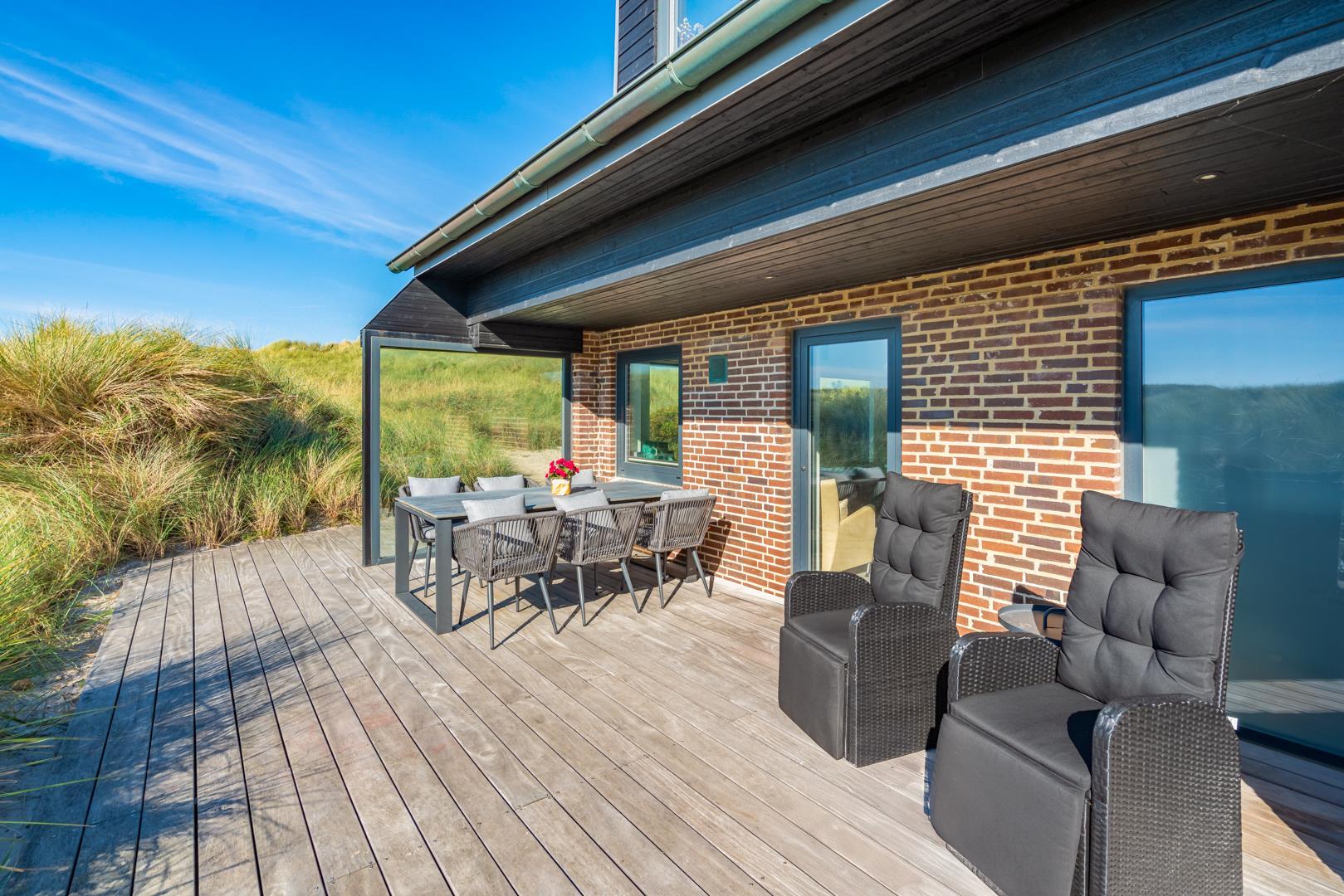 Hele huset er udstyret med WiFi og et lydsystem. Der foreligger i-Pad i huset med div. hus informationer på tysk, dansk og engelsk. Samtlige værelser har smart-tv, mens den omkringliggende terrasse med komfortable havemøbler og liggestole tilbyder favoritsteder når som helst på dagen.