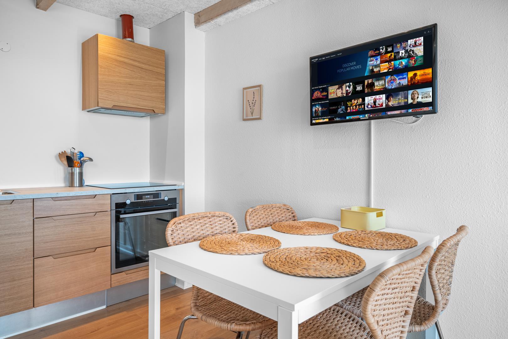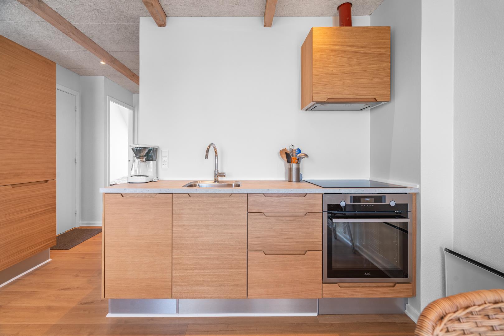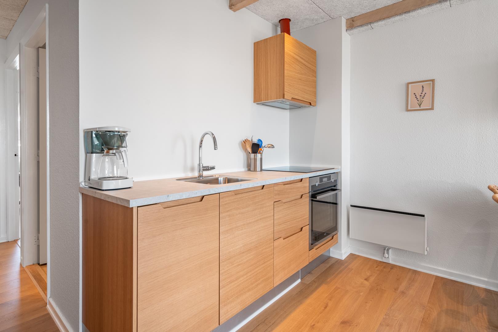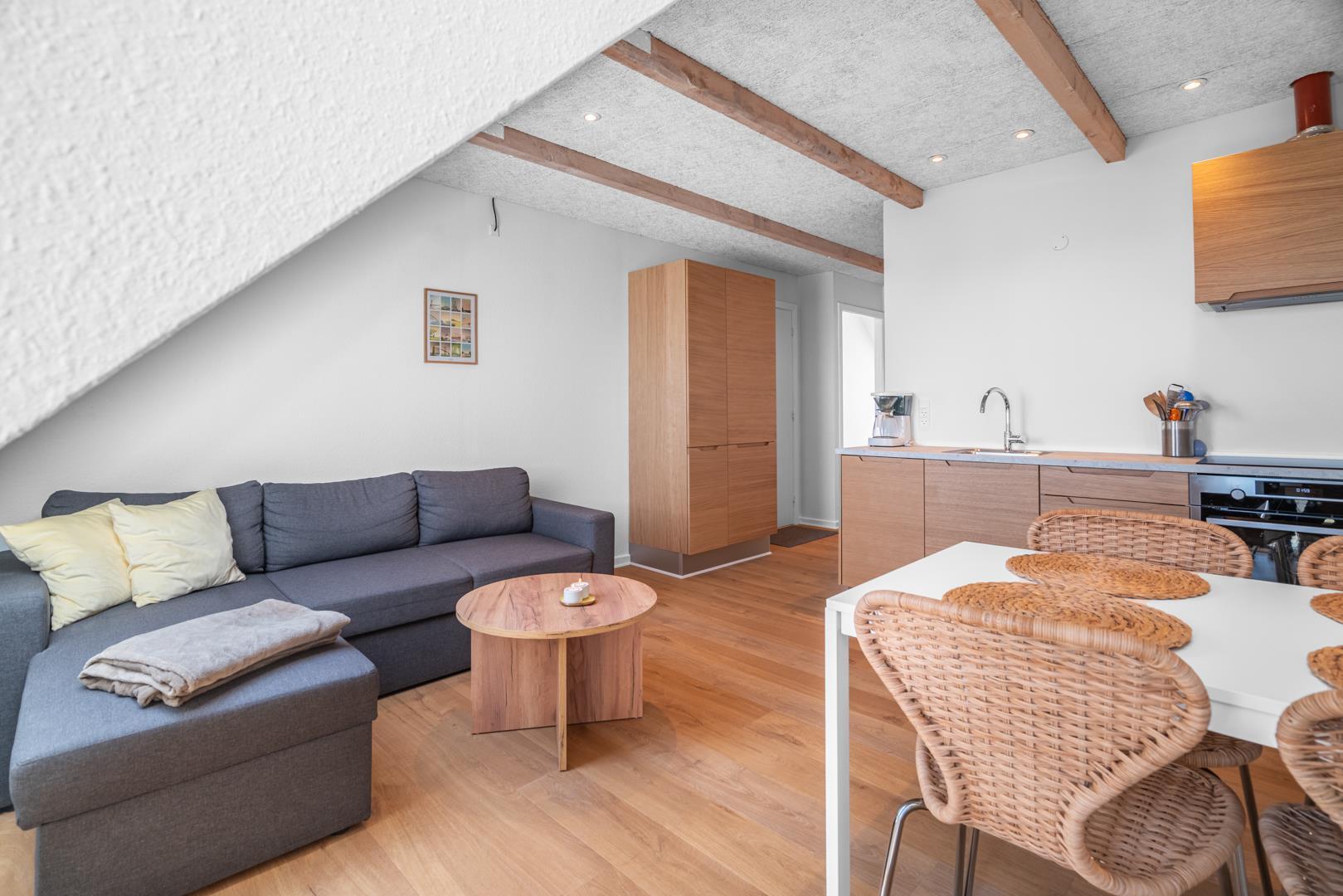 Lejligheden er personligt og hyggeligt indrettet med fokus på komfort. Stuen er udstyret med gode, komfortable møbler og indbyder til afslapning efter en aktiv dag ved stranden eller i naturen. Derudover byder lejligheden på to soveværelser samt et funktionelt badeværelse.