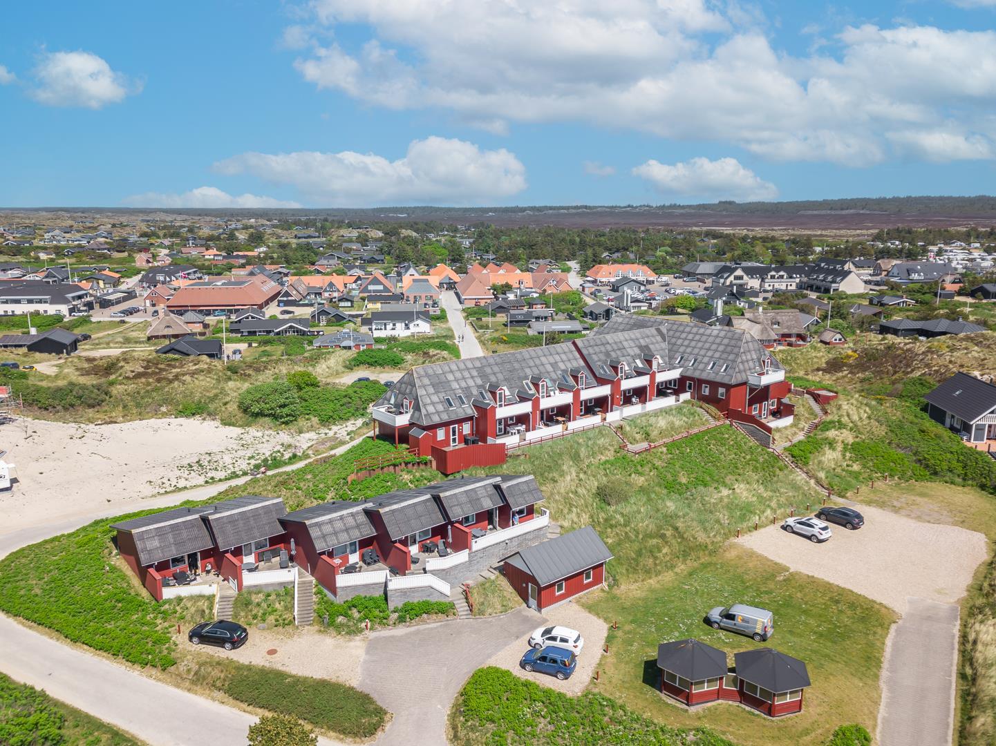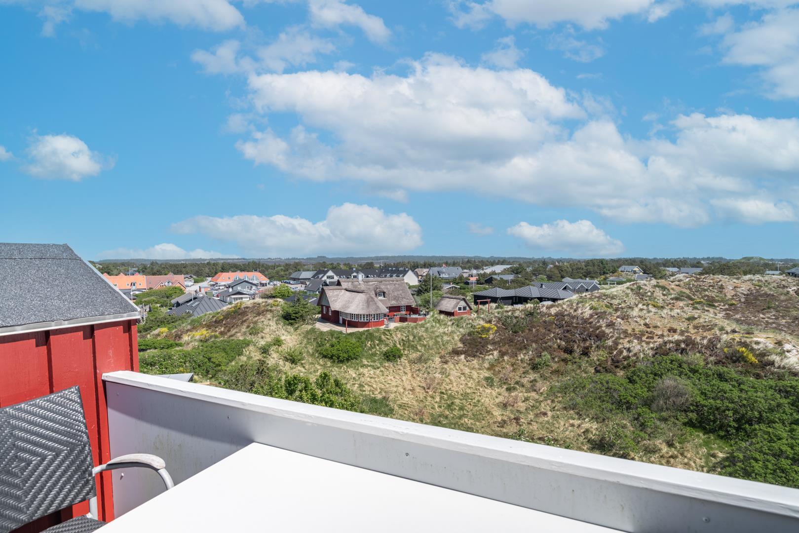Her bor du højt i klitterne med en imponerende udsigt over hedelandskab og den omkringliggende natur, som virkelig skal opleves. Udsigten skaber en følelse af ro og åbenhed, uanset årstid.