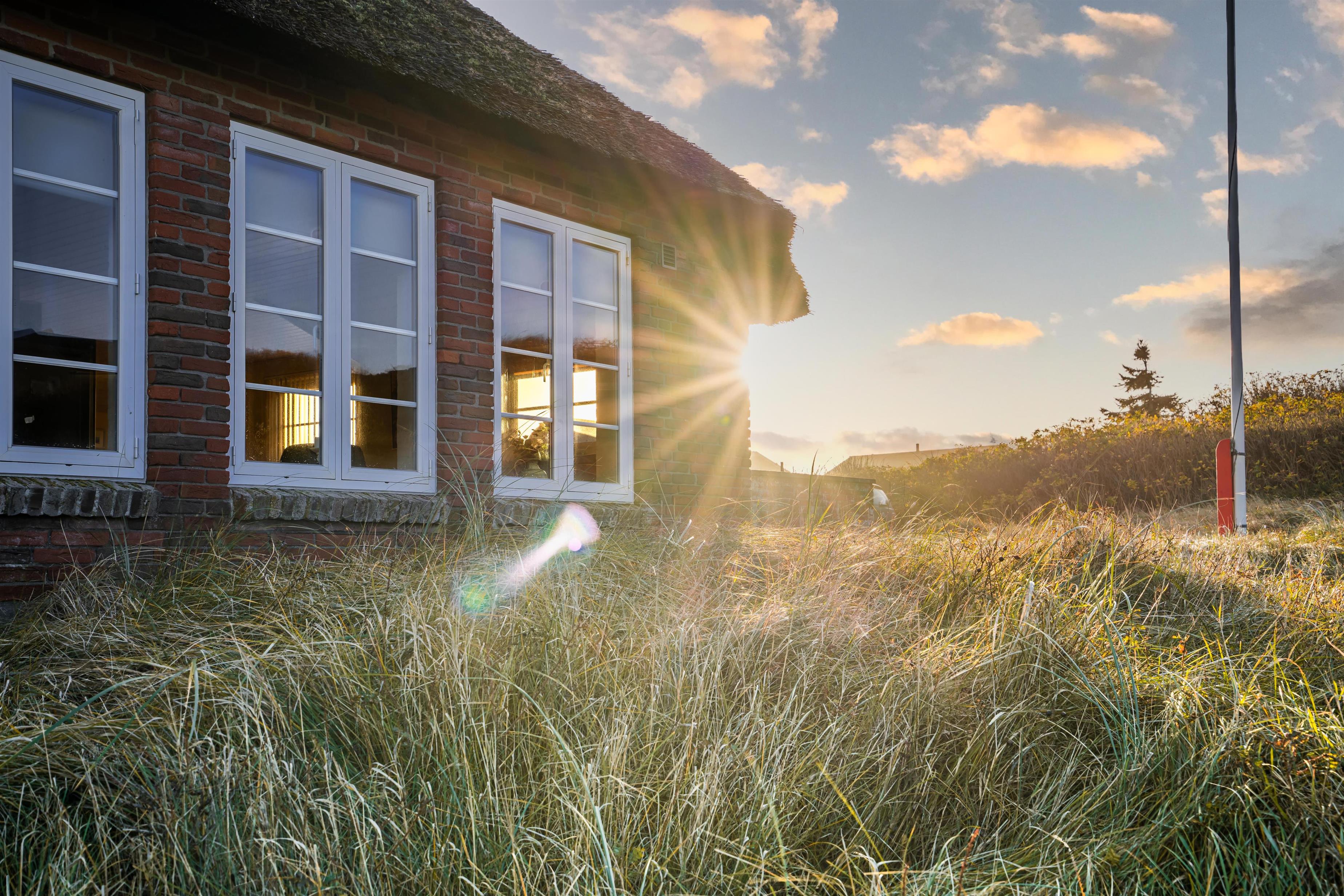 Rummeligt og velholdt feriehus med stråtag tæt på Vesterhavet og byens faciliteter i Henne Strand.