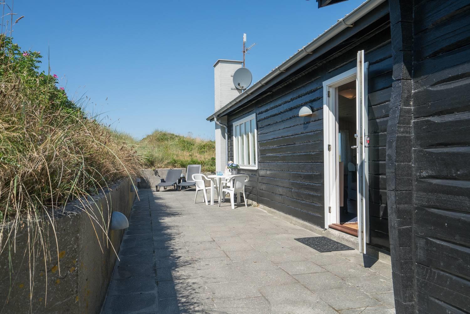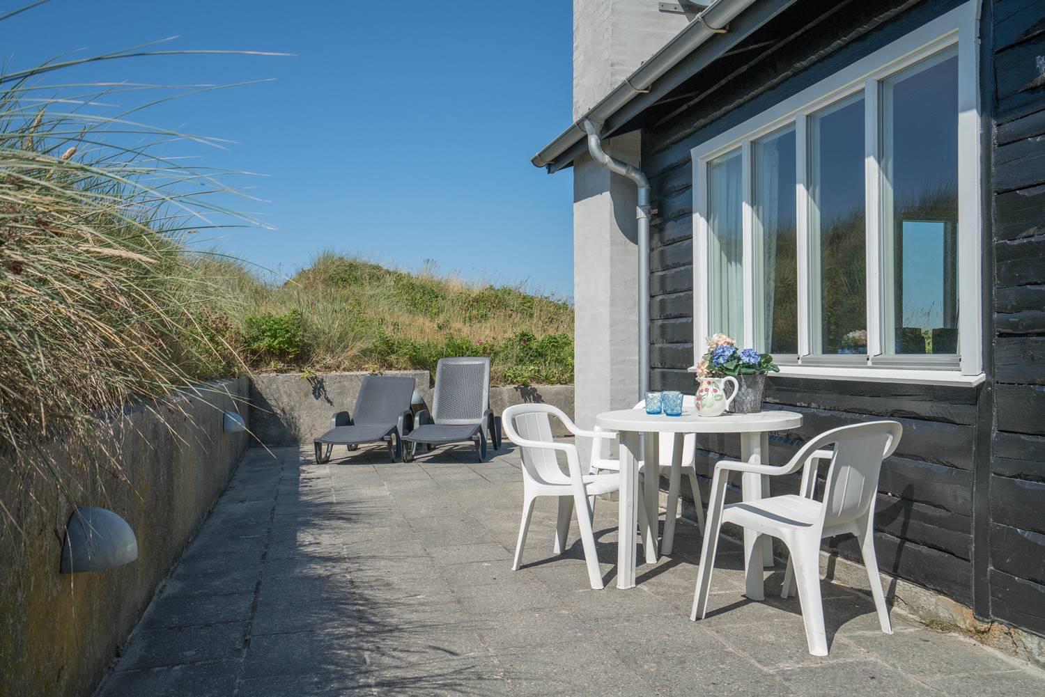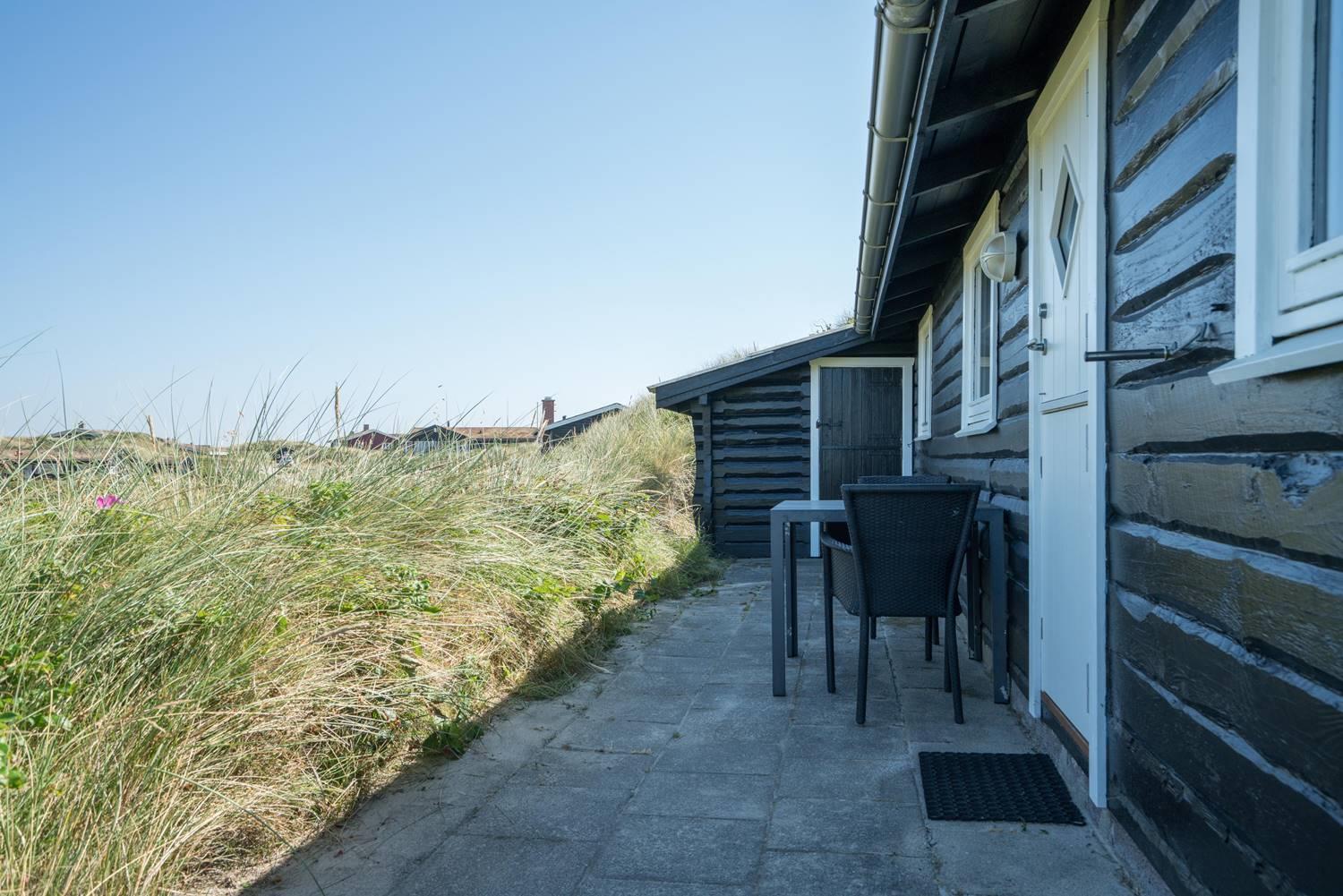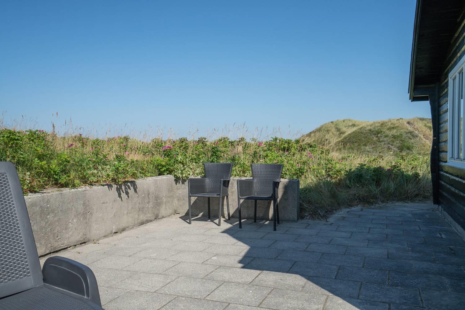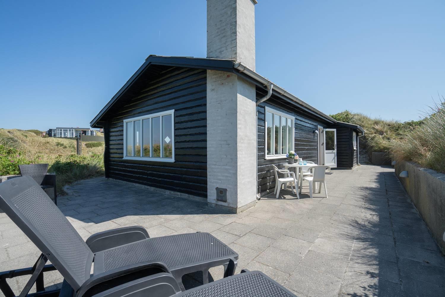Kun få hundrede meter fra Vesterhavet, på en pragtfuld og total ugeneret klitgrund, ligger dette dejlige feriehus. Køkkenet ligger i åben forbindelse med stuen med brændeovn, og hvorfra den flotte udsigt over storslået klitlandskab kan nydes. Feriehusets soverum er alle rummelige. Fra feriehusets badeværelse er der direkte adgang til sauna.