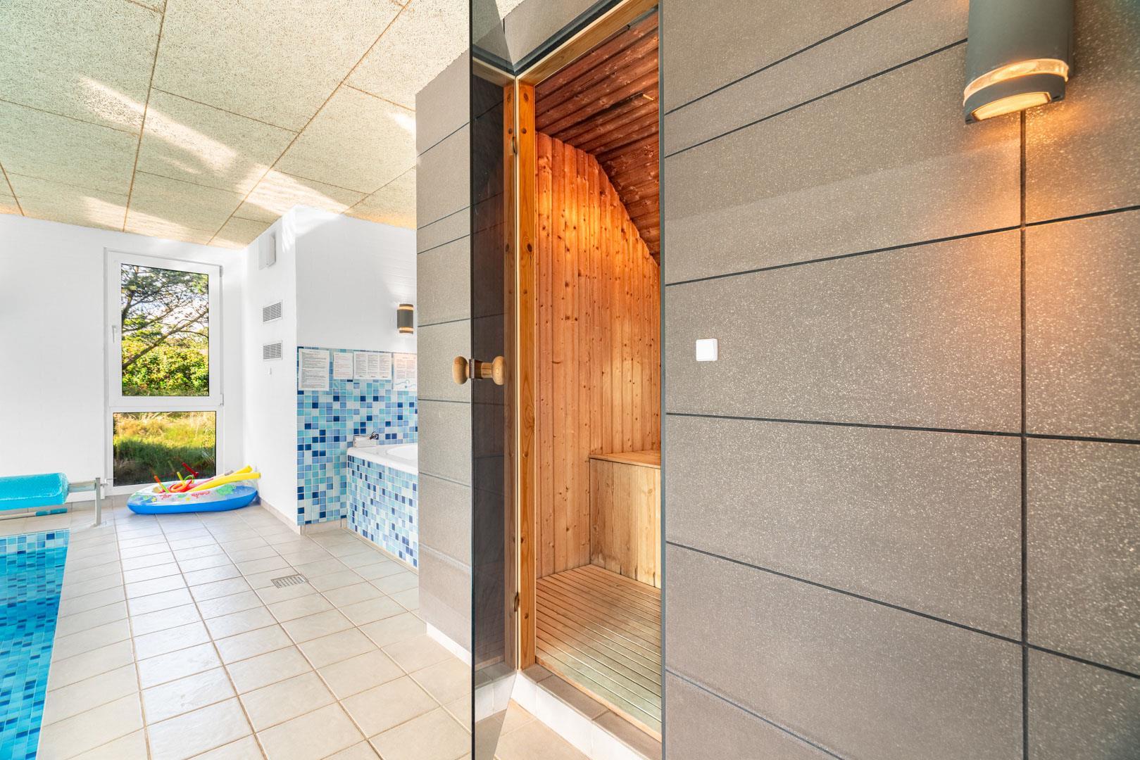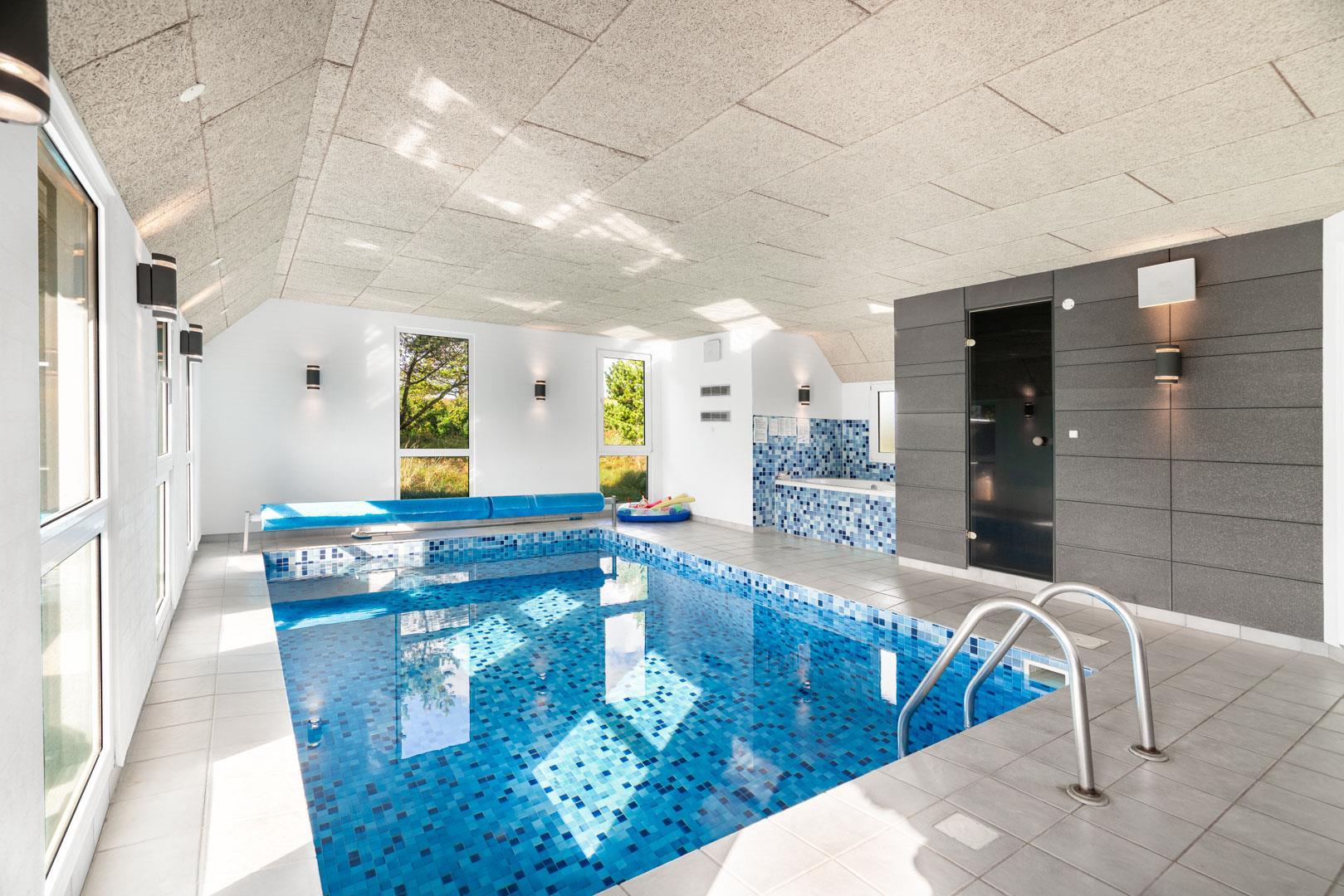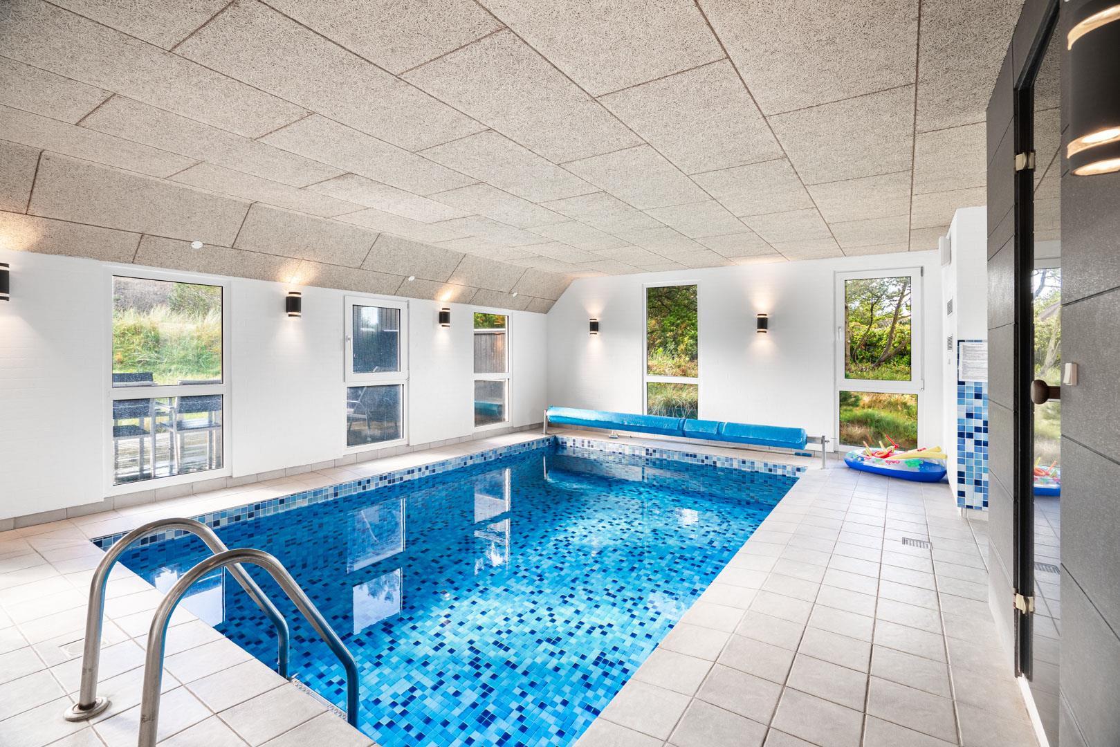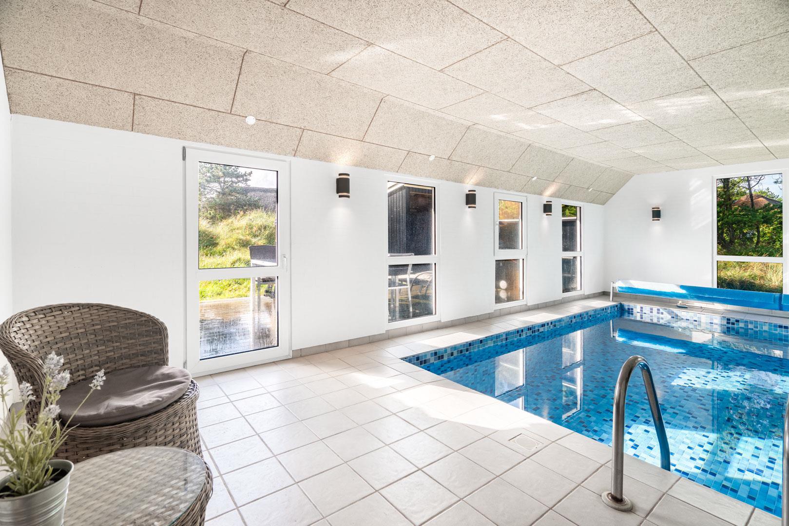 Oplev luksus og afslapning i dette fantastiske poolhus i Henne Strand. Tag din familie eller venner med på en uforglemmelig ferie og nyd den imponerende poolafdeling, der er hjertet af dette skønne sommerhus. Et sommerhus med garanti for underholdning til både store og små. Foruden den lækre pool finder du også en sauna, der tilføjer en ekstra dimension af velvære til poolafdelingen. Det mest fantastiske er, at du kan nyde din kaffe eller vin fra stuen samtidig med, at du holder øje med at børnene leger trygt i poolen. Det skaber både tryghed og ro for børn og voksne! På de kølige dage, er brændeovnen i stuen med til at skabe en hyggelig atmosfære og giver dig en ægte sommerhusfølelse.