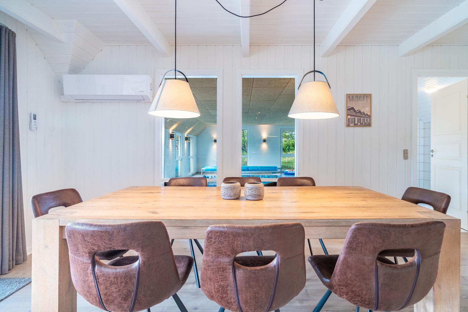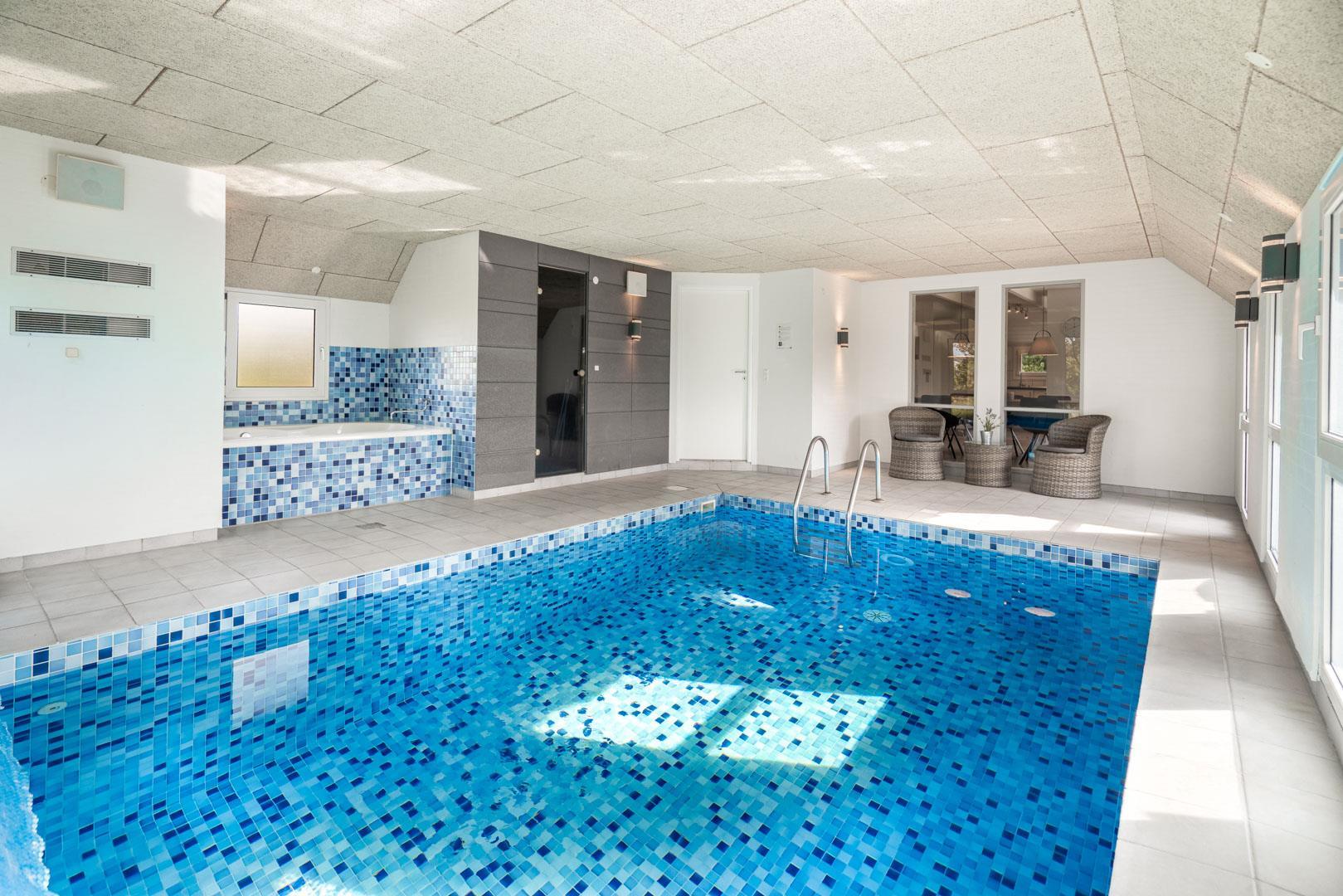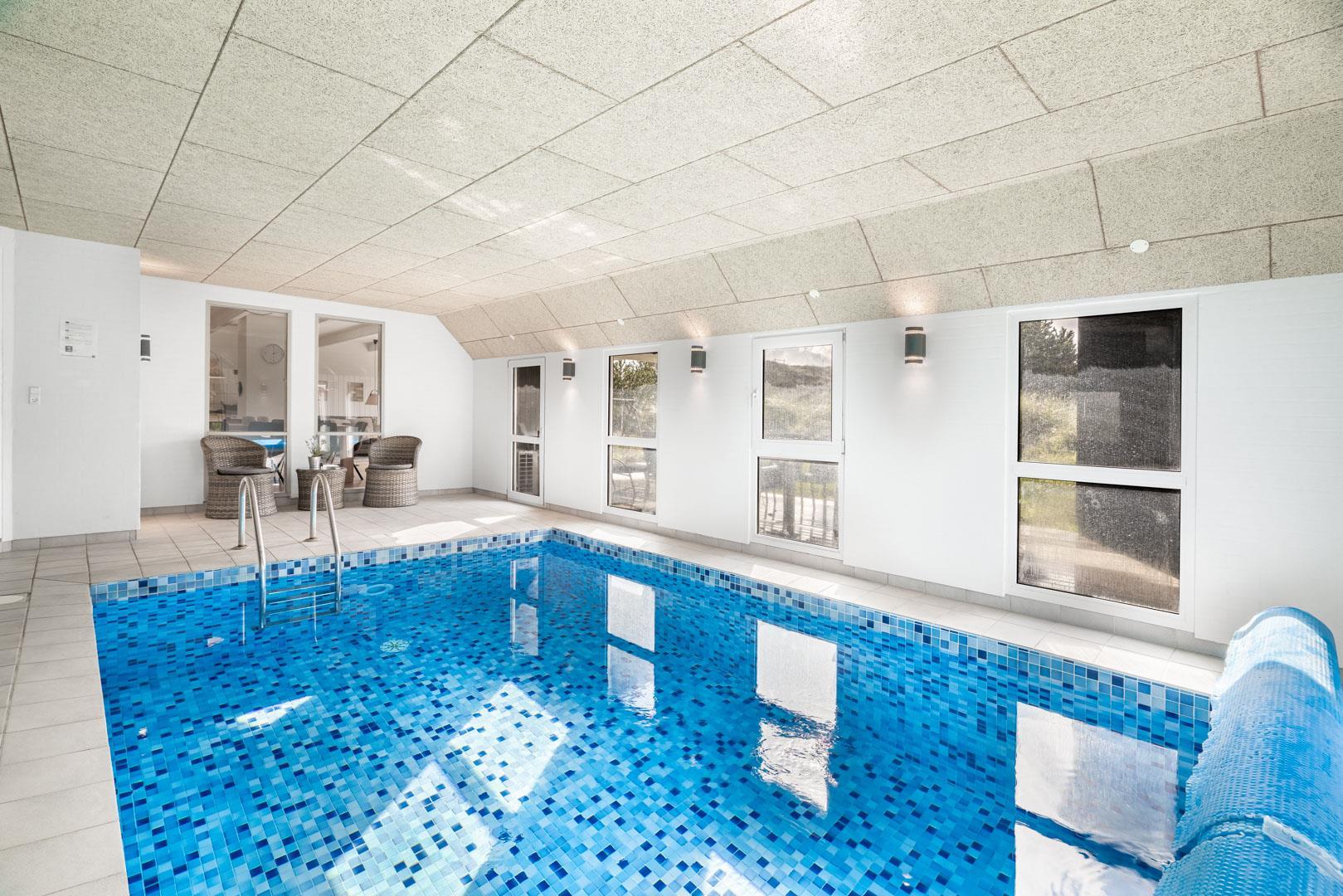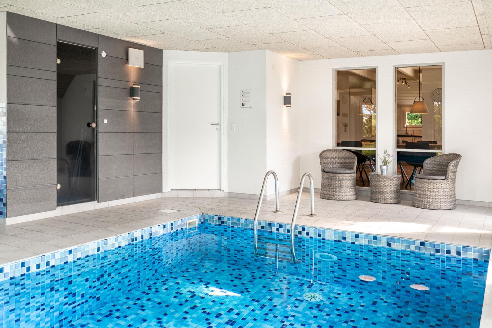 Oplev luksus og afslapning i dette fantastiske poolhus i Henne Strand. Tag din familie eller venner med på en uforglemmelig ferie og nyd den imponerende poolafdeling, der er hjertet af dette skønne sommerhus. Et sommerhus med garanti for underholdning til både store og små. Foruden den lækre pool finder du også en sauna, der tilføjer en ekstra dimension af velvære til poolafdelingen. Det mest fantastiske er, at du kan nyde din kaffe eller vin fra stuen samtidig med, at du holder øje med at børnene leger trygt i poolen. Det skaber både tryghed og ro for børn og voksne! På de kølige dage, er brændeovnen i stuen med til at skabe en hyggelig atmosfære og giver dig en ægte sommerhusfølelse.