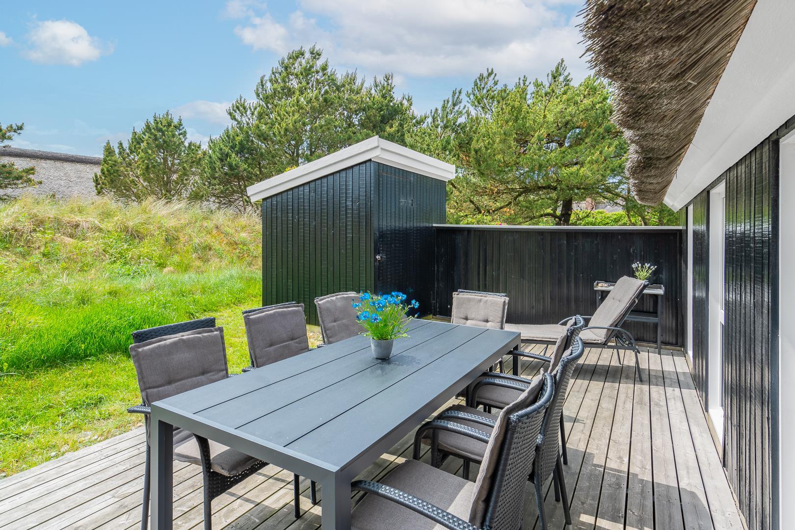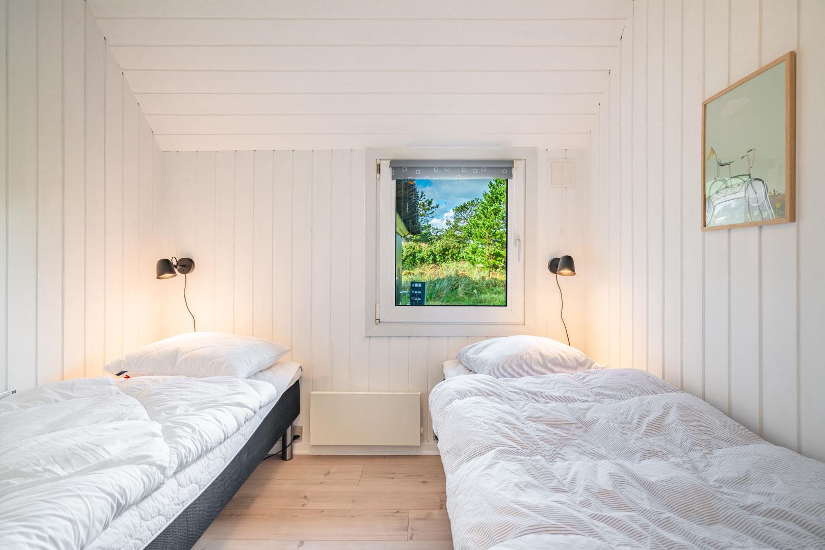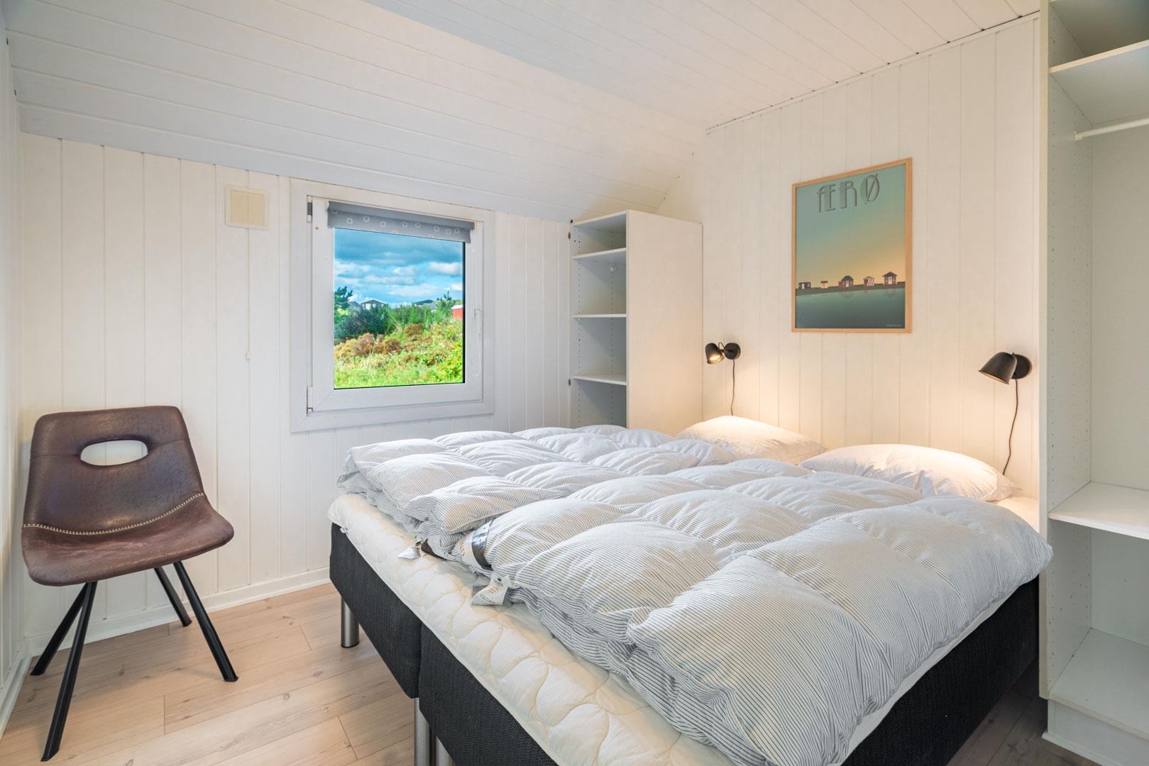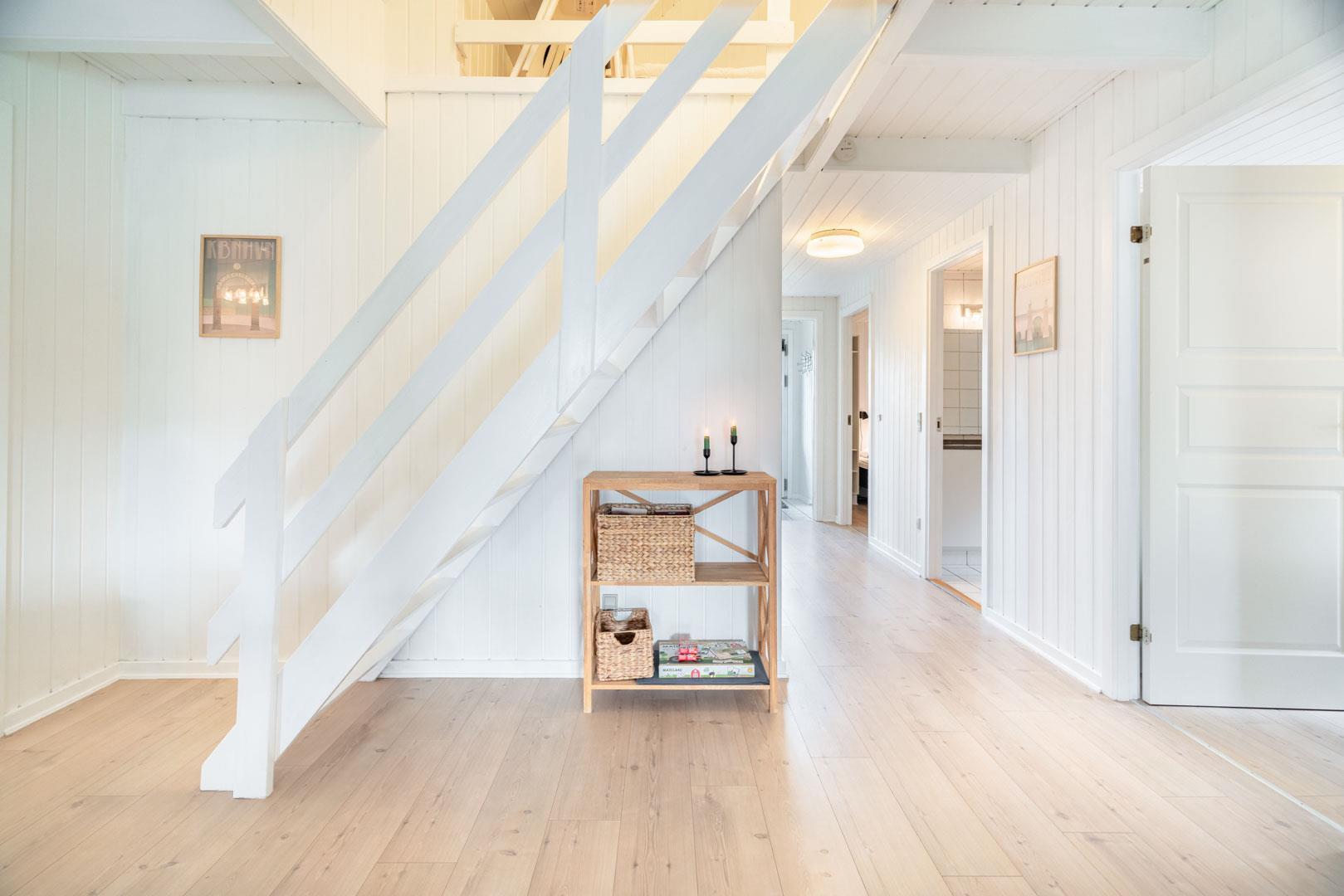 Sommerhuset byder velkommen til 8 personer med 4 soveværelser og 2 fine badeværelser. Desuden er her 2 børnesenge og 2 børnestole samt depot til cykler – alt sammen for at være med til at gøre din ferie endnu bedre.