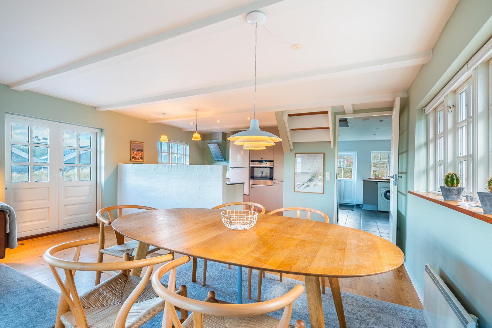 Oplev dette super hyggelige sommerhus i Henne Strand – her kan du ikke undgå at komme i feriestemning. Dette hyggelige feriehus har plads til 6 personer, og byder bl.a. på en dejlig stor stue med spisebord til 6 personer i åben forbindelse med køkkenet. Det betyder, at du kan du være en del af hyggen selvom du står for madlavningen.