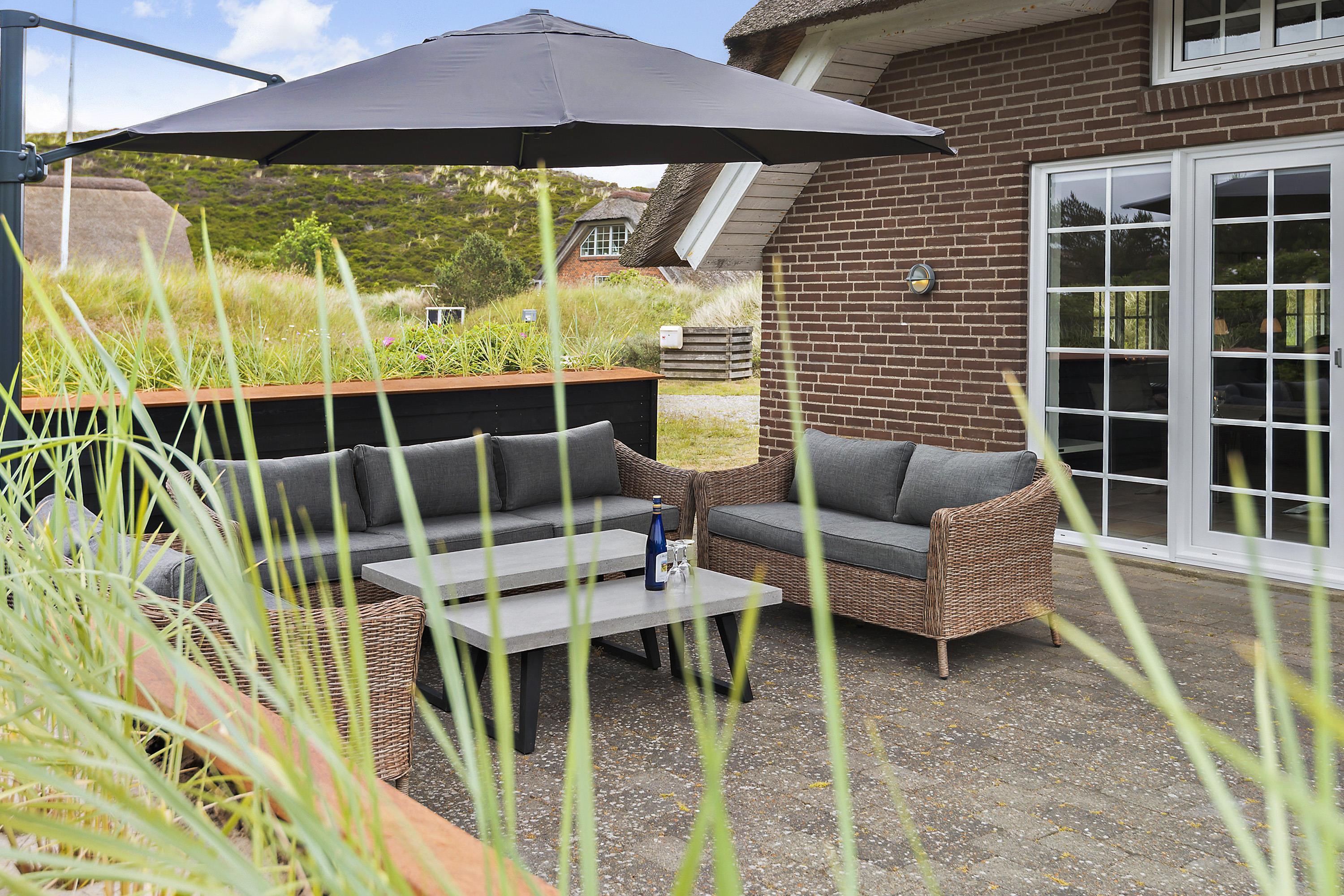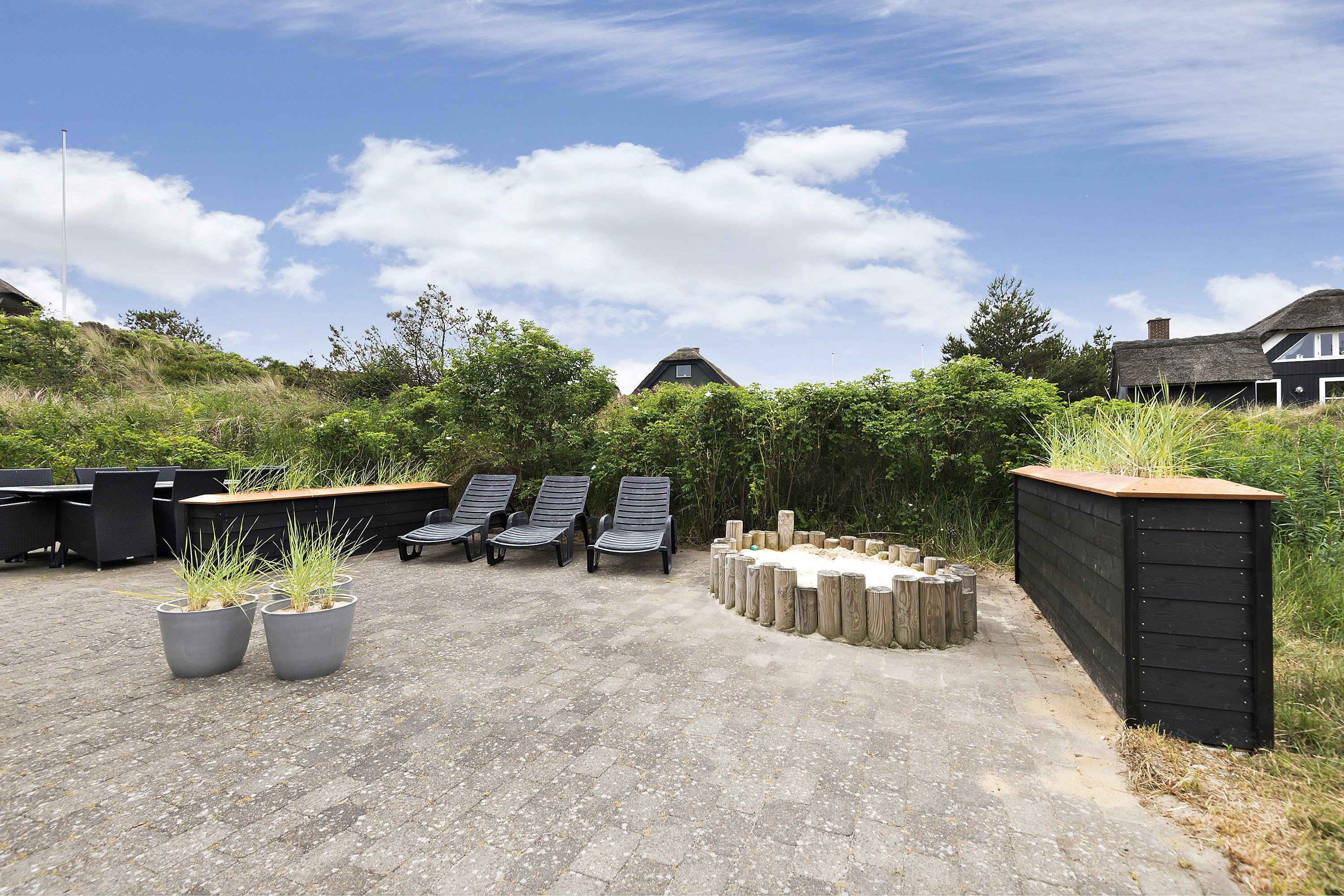En rolig beliggenhed en fantastisk terrasse med loungemøbler og liggestole, venter kun på solhungrende feriegæster. Til de små gæster er her en sandkasse og en gynge. Der er læ for vinden på mindst en af de 3 terrasser.