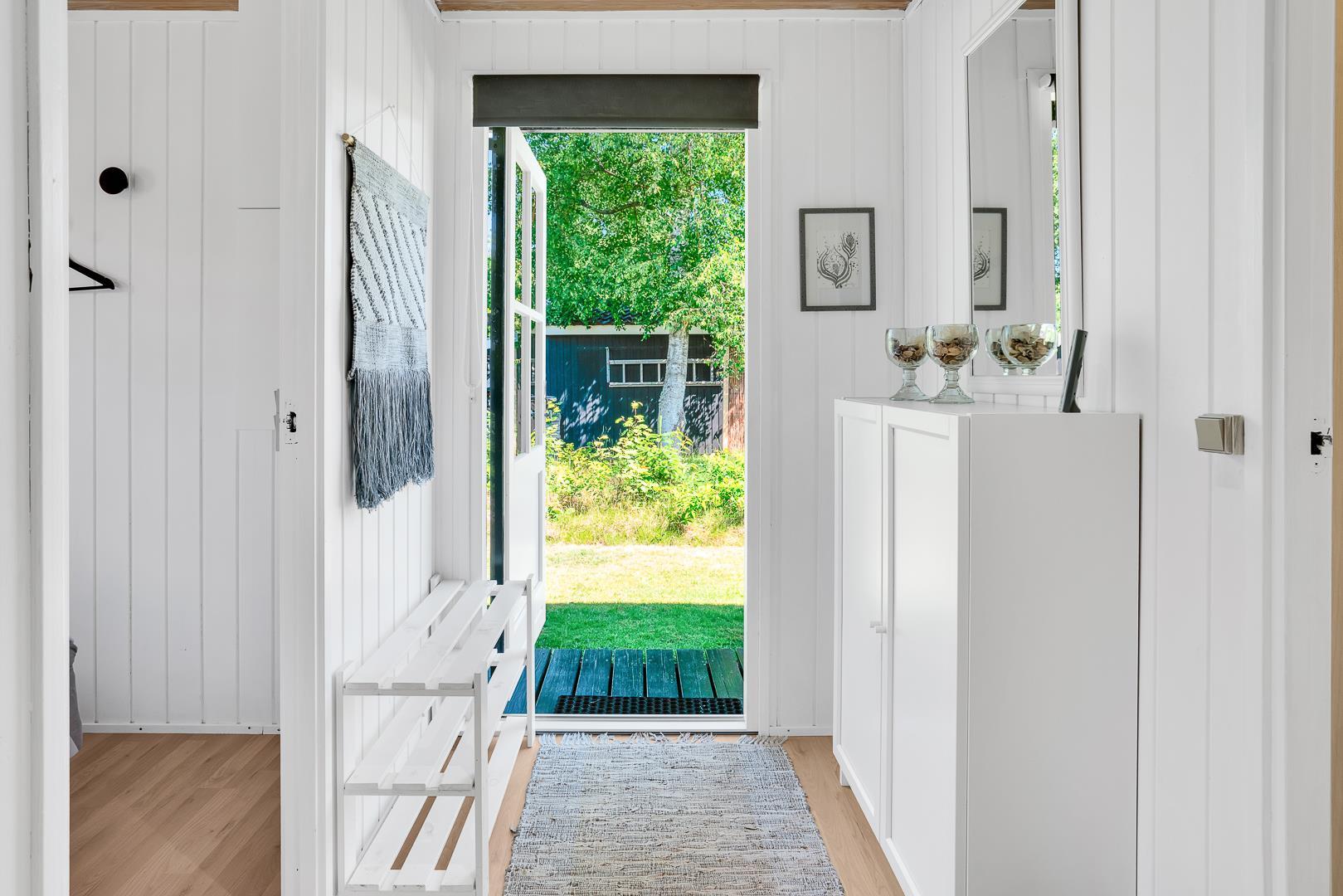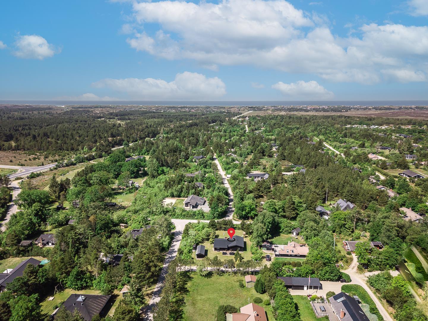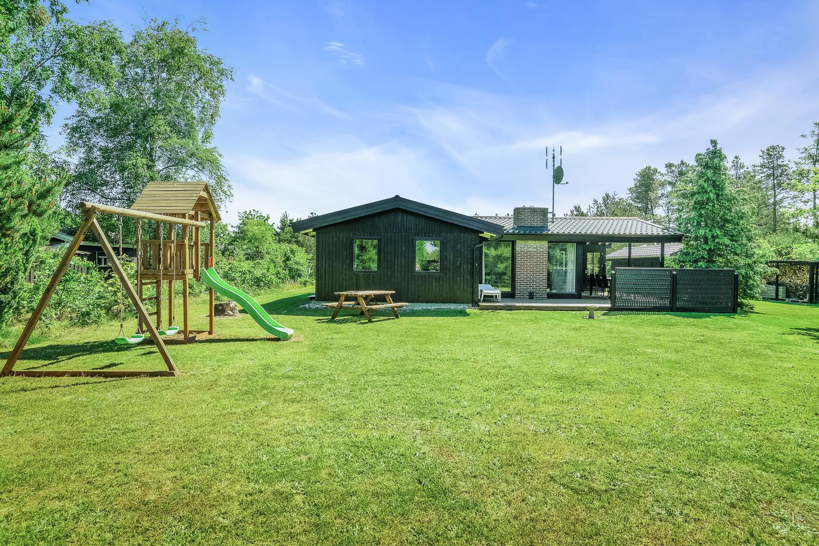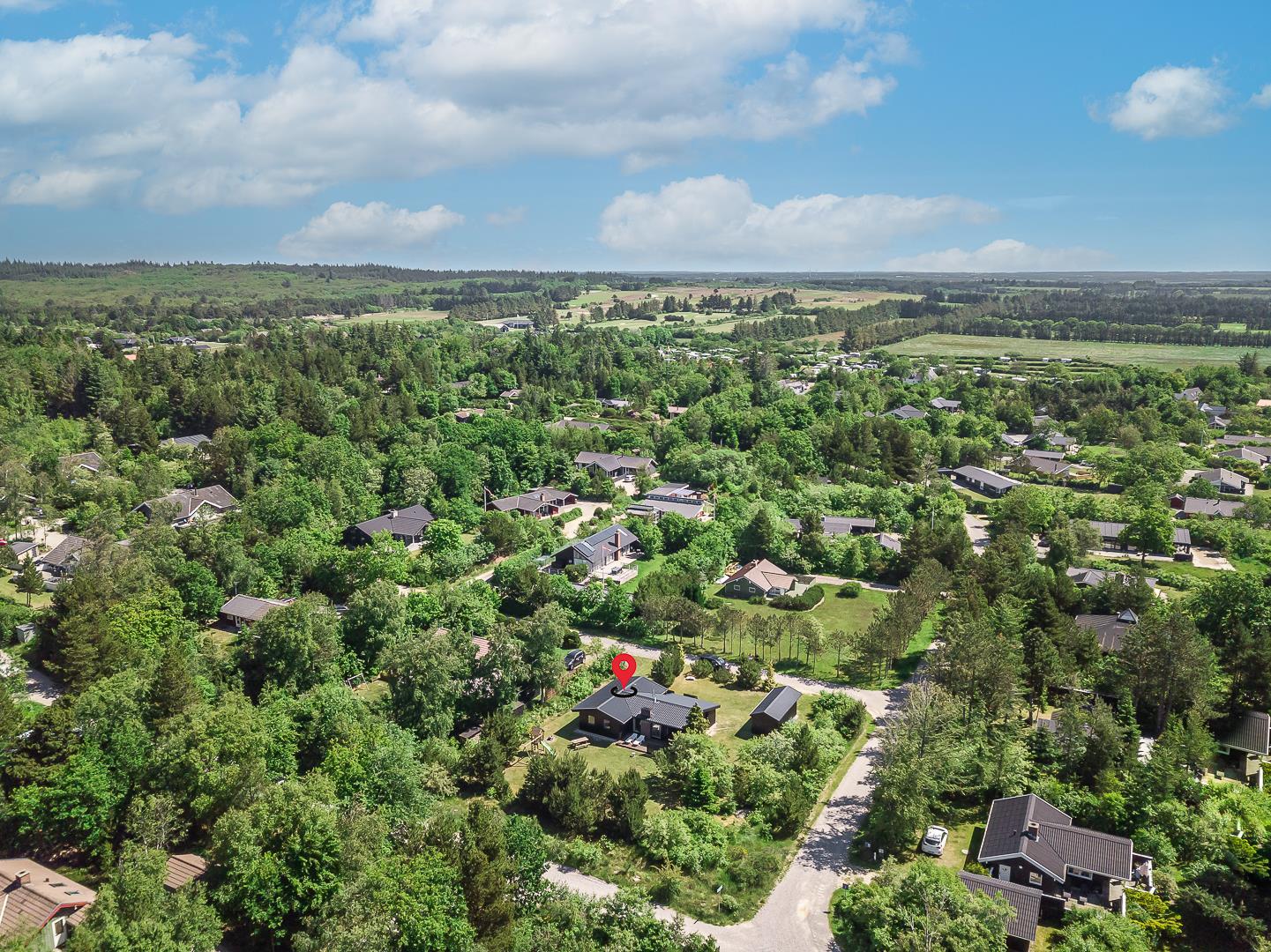 Midt i den skønne natur på en dejlig grund i rolige omgivelser omkranset af træer ligger dette dejlige og velholdte feriehus. Fra den lyse og pænt indrettede stue, som er kombineret med køkkenet, er der adgang til skøn ugeneret delvis overdækket træterrasse. Der er græsplæne omkring huset.