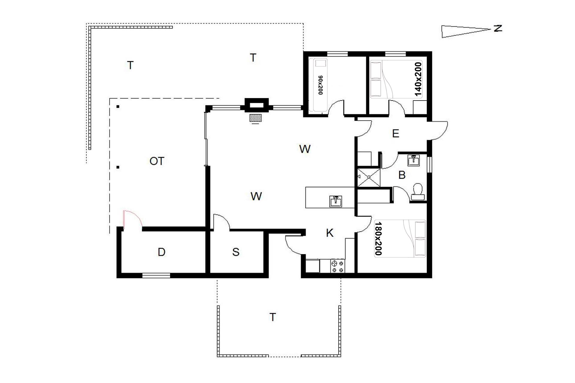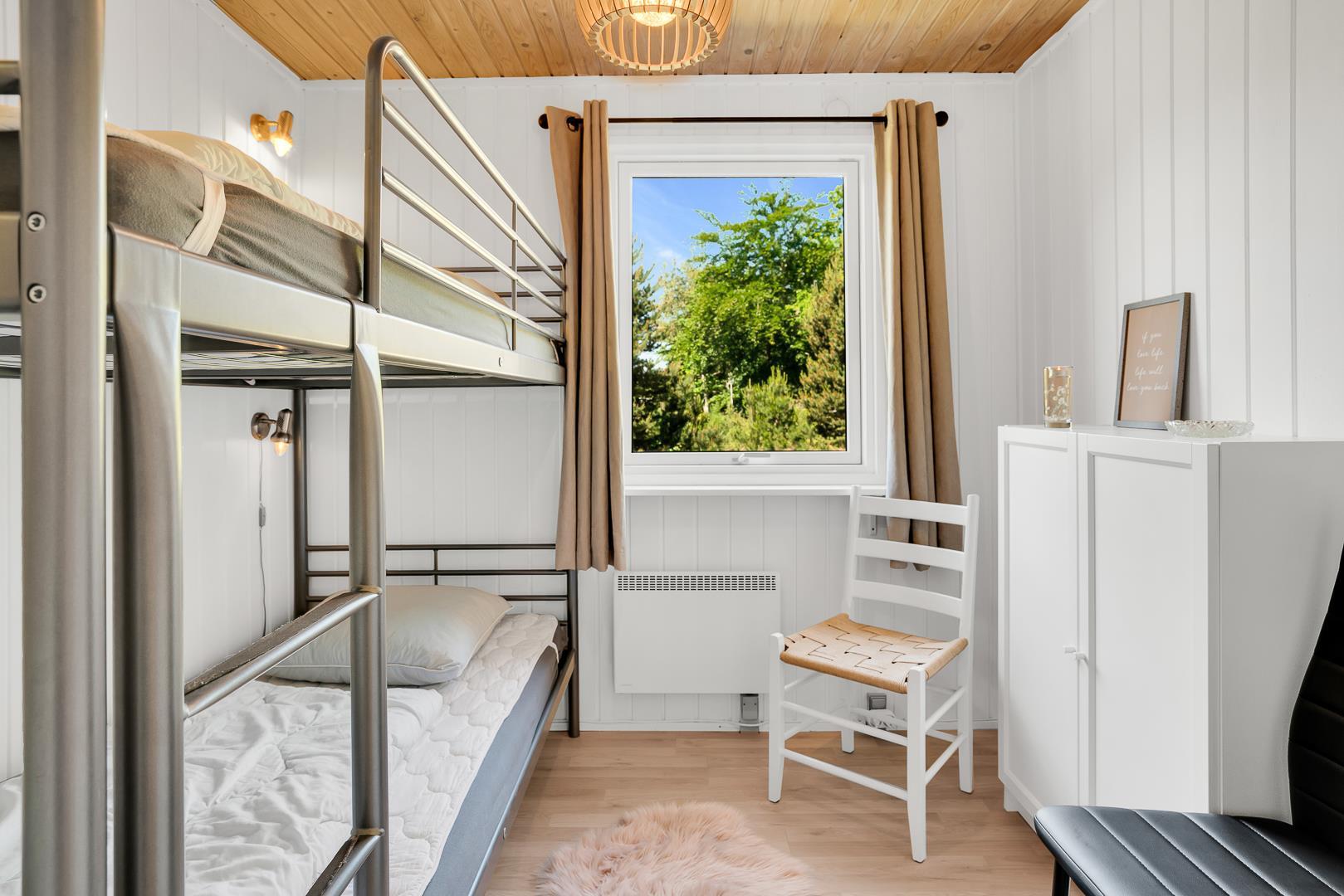 Sengestørrelse: 1 dobbeltseng 180 x 200 cm + 1 dobbeltseng 140 x 200 cm + 1 køjeseng 90 x 200 cm.