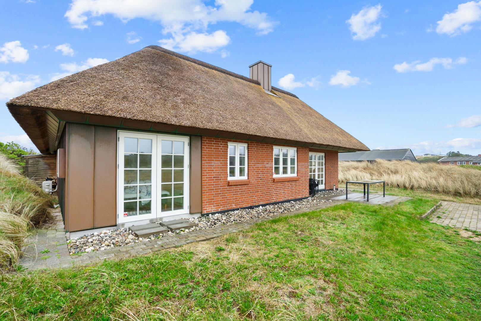 Feriehuset ligger idyllisk indlejret i klitlandskabet ved Henne Strand. Fra grunden kan du nyde en smuk udsigt over naturen – typisk Vesterhav, typisk Danmark.