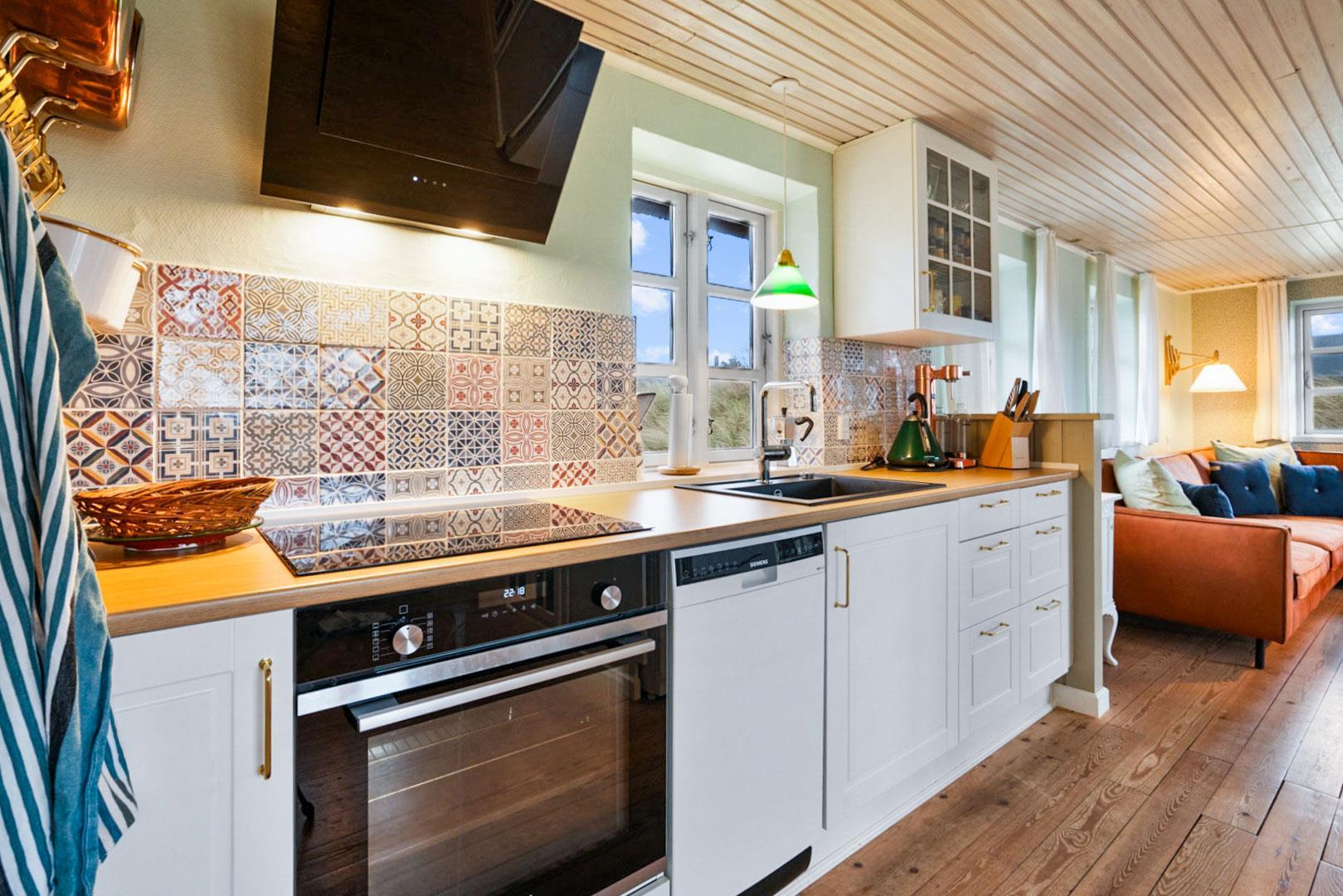 Det åbne køkken er moderne udstyret – inklusive opvaskemaskine, så du får mere tid til afslapning. Særligt komfortabelt: Feriehuset har 2 badeværelser, begge med behagelig gulvvarme, perfekt efter en lang gåtur.