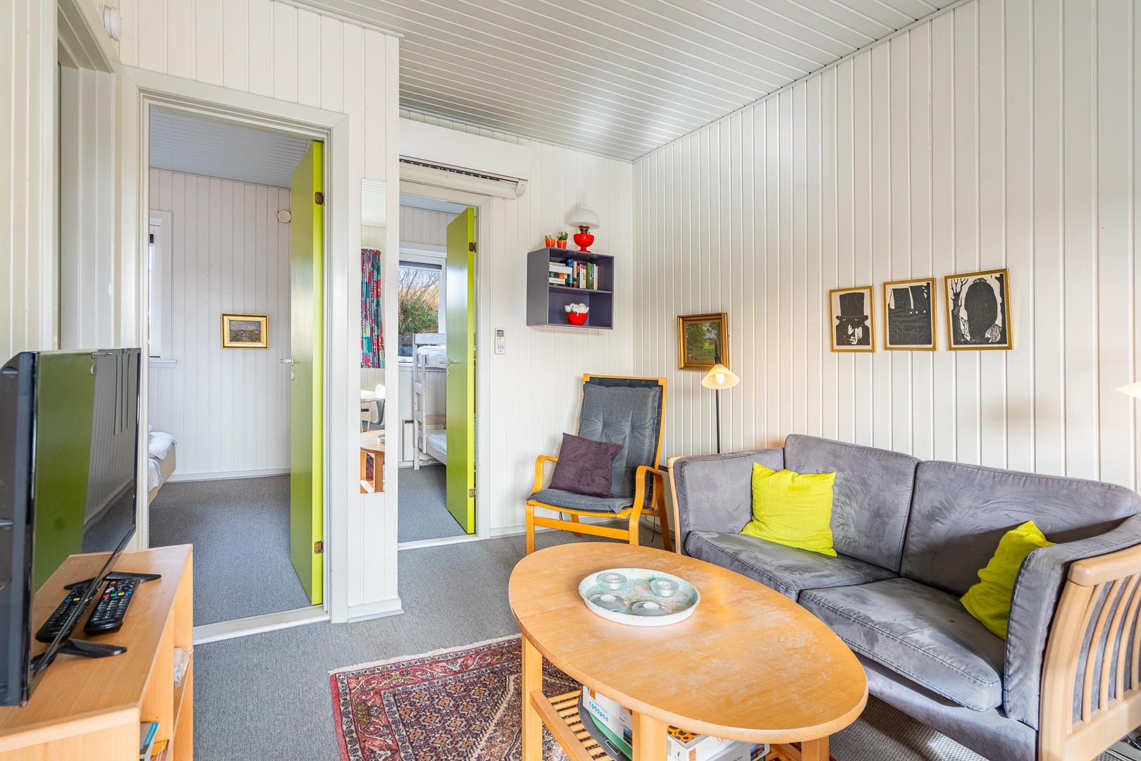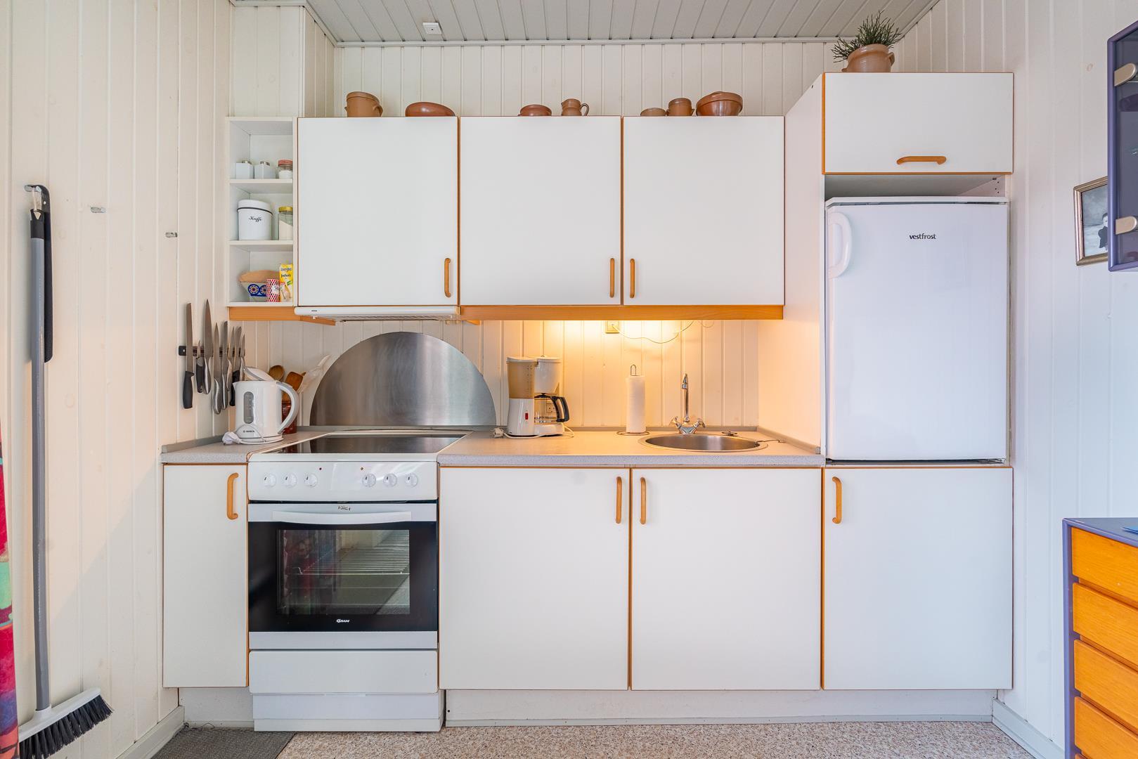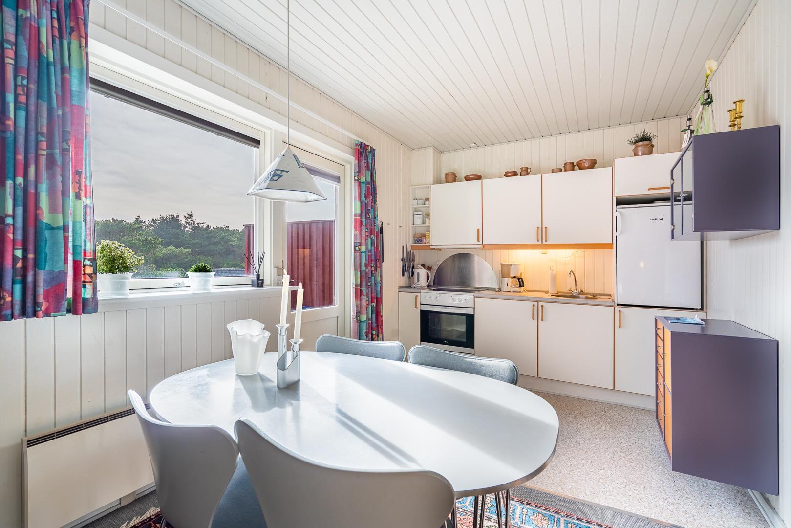 Med varmepumpe får du et behageligt indeklima året rundt, samtidig med et lavere energiforbrug. Derudover er både vaskemaskine og tørretumbler til rådighed – særligt praktisk ved længere ophold eller ferie med børn.