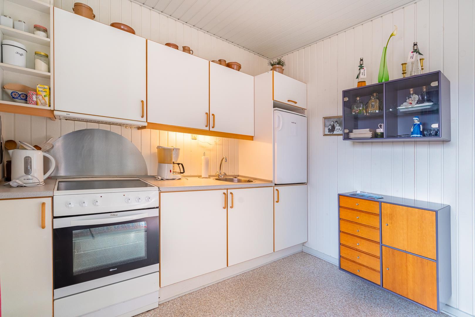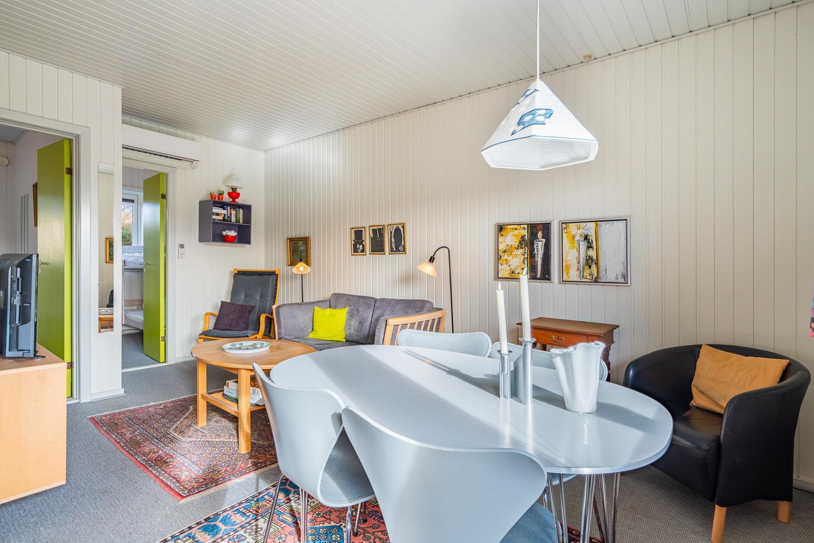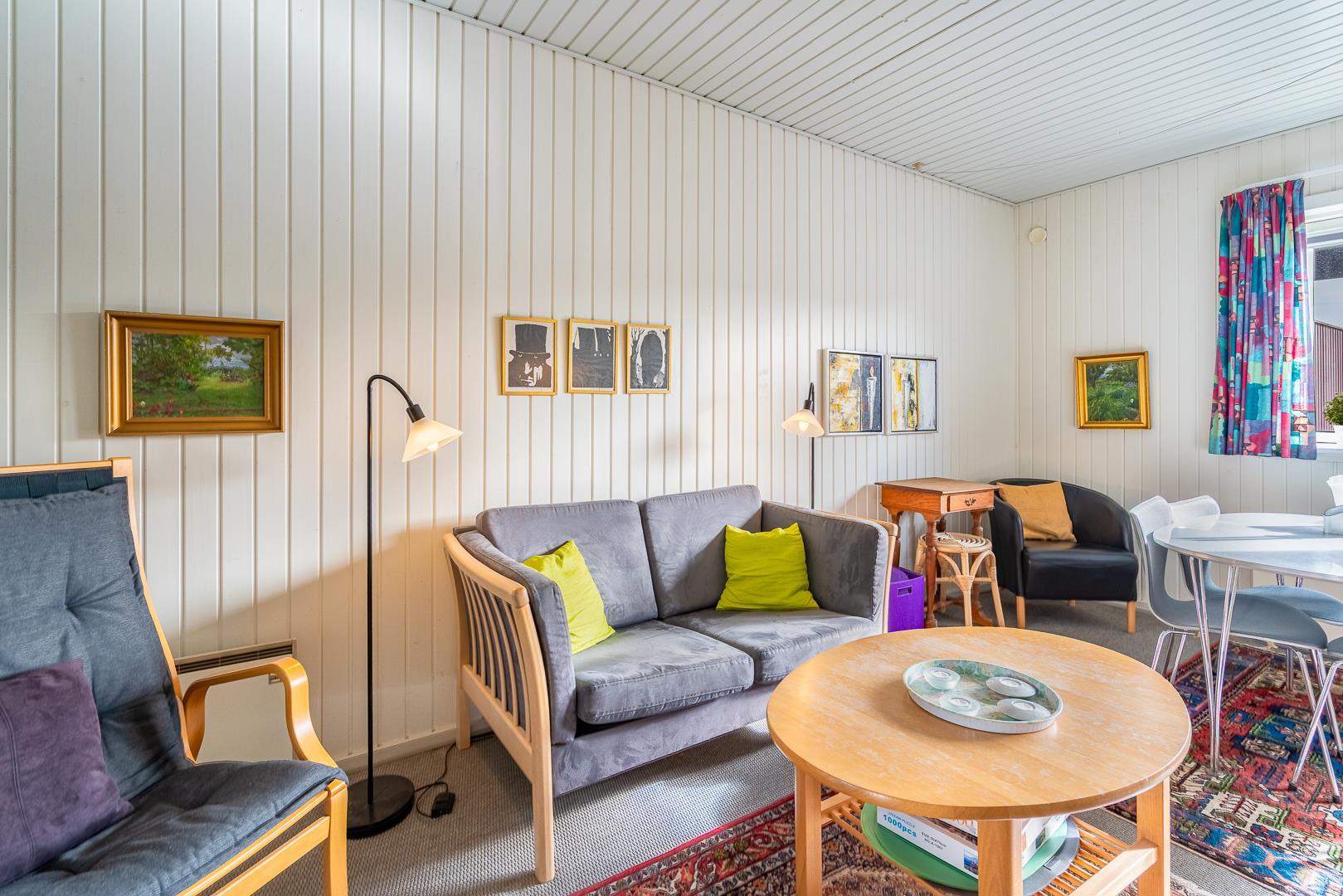 Med varmepumpe får du et behageligt indeklima året rundt, samtidig med et lavere energiforbrug. Derudover er både vaskemaskine og tørretumbler til rådighed – særligt praktisk ved længere ophold eller ferie med børn.