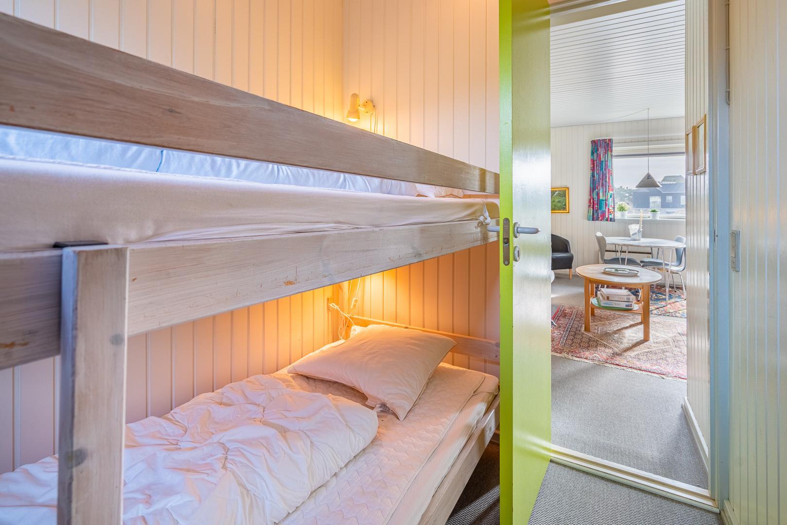 Lejligheden har to soveværelser og plads til op til fire personer – perfekt til både par og små familier. Badeværelset er udstyret med gulvvarme, så du altid har varme fødder, selv på køligere dage.