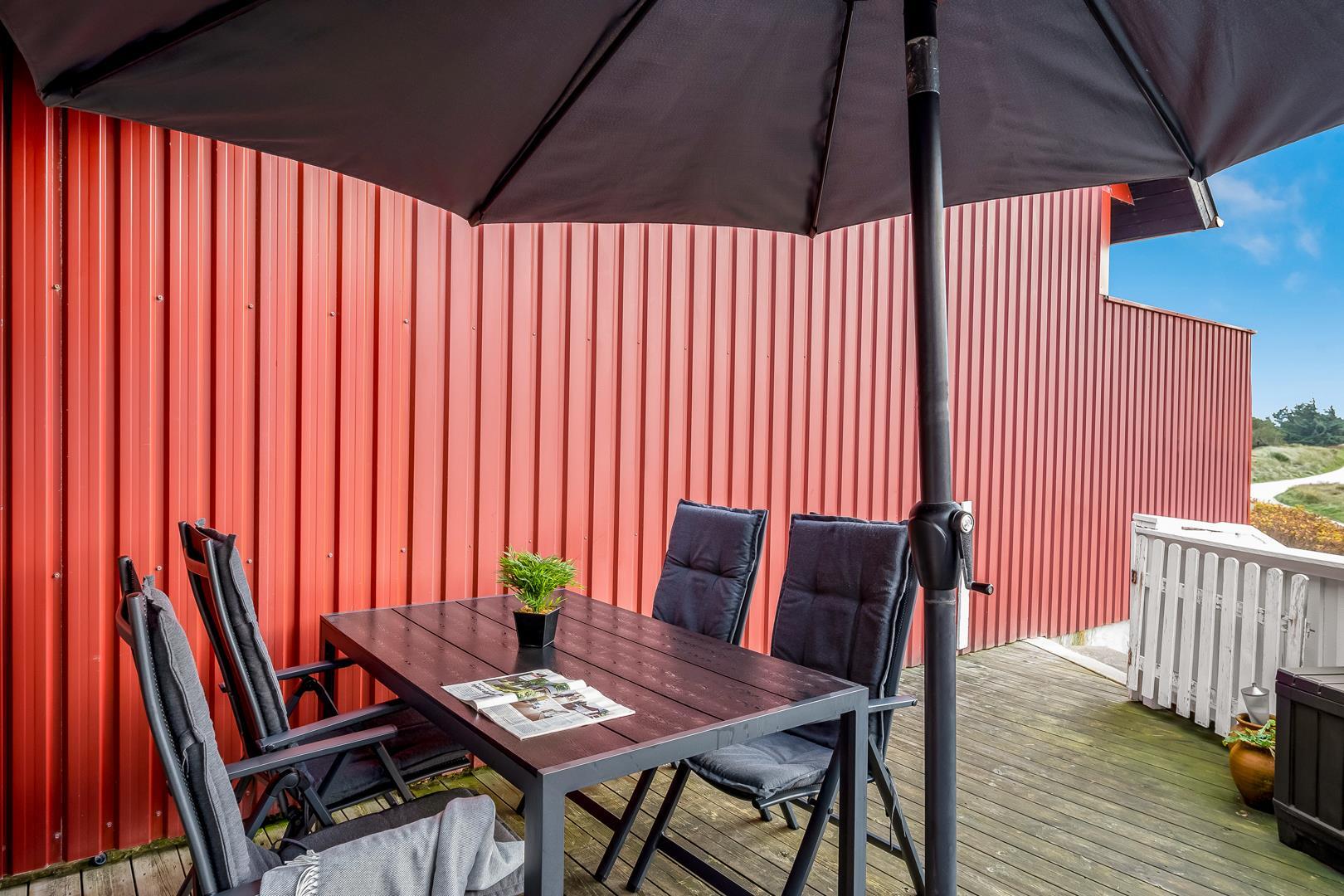Stranden ligger kun 300 meter væk, så du hurtigt kan nå det brede, fine sand og det brusende Vesterhav – perfekt til gåture, solbadning eller en dukkert.