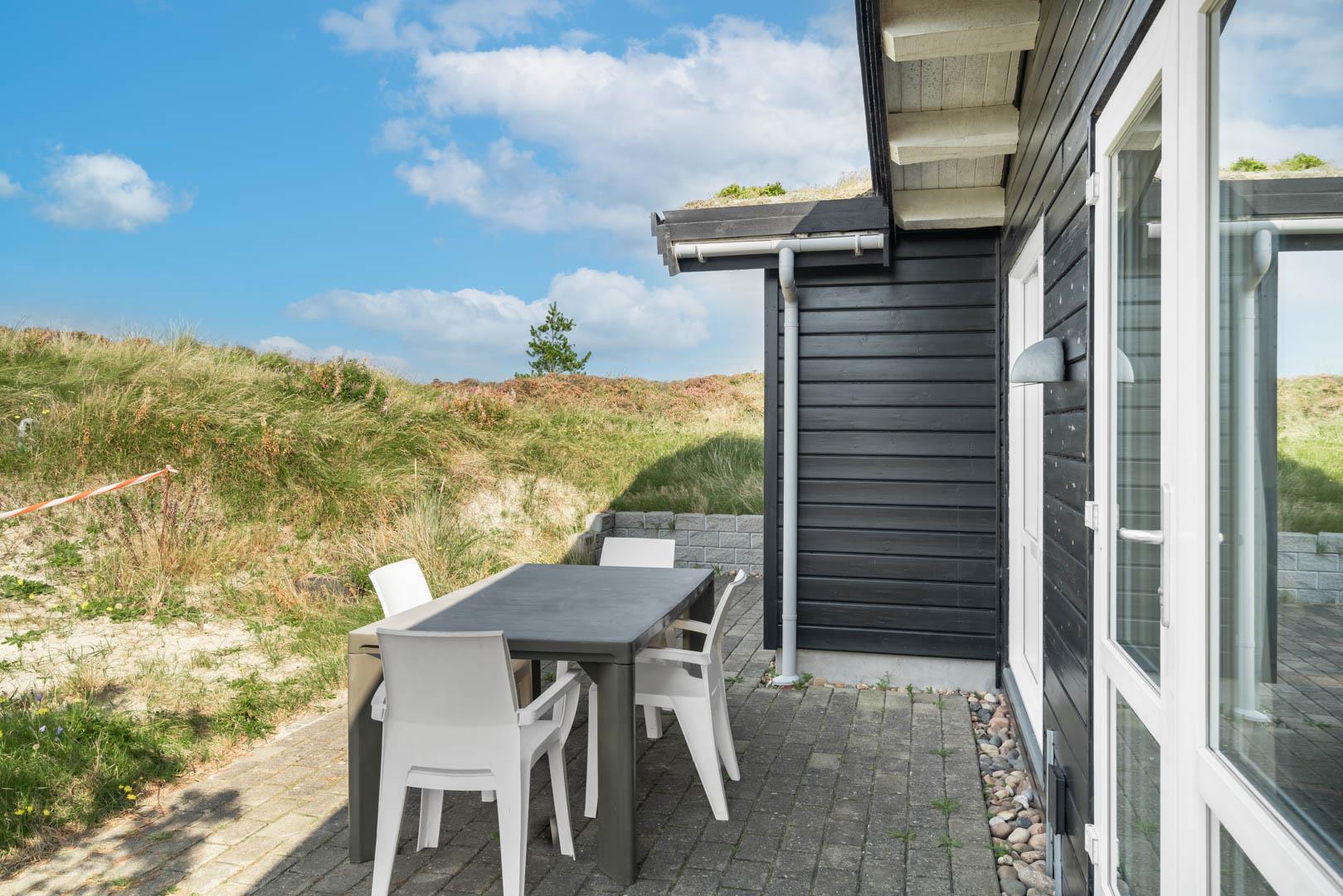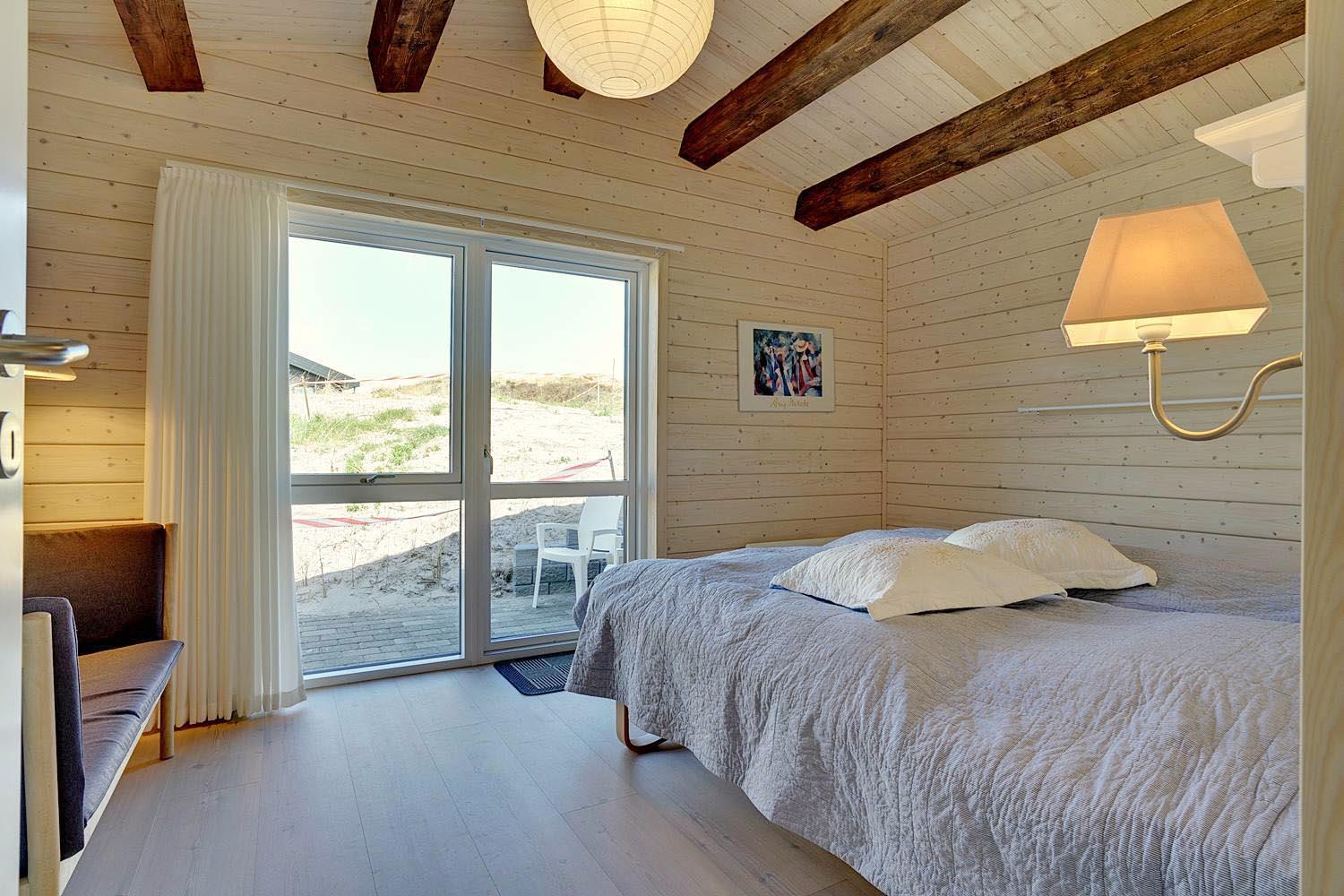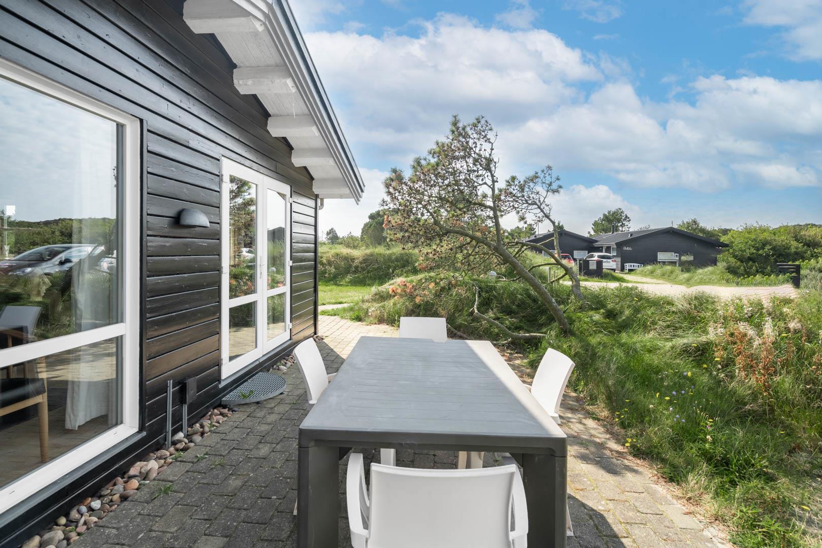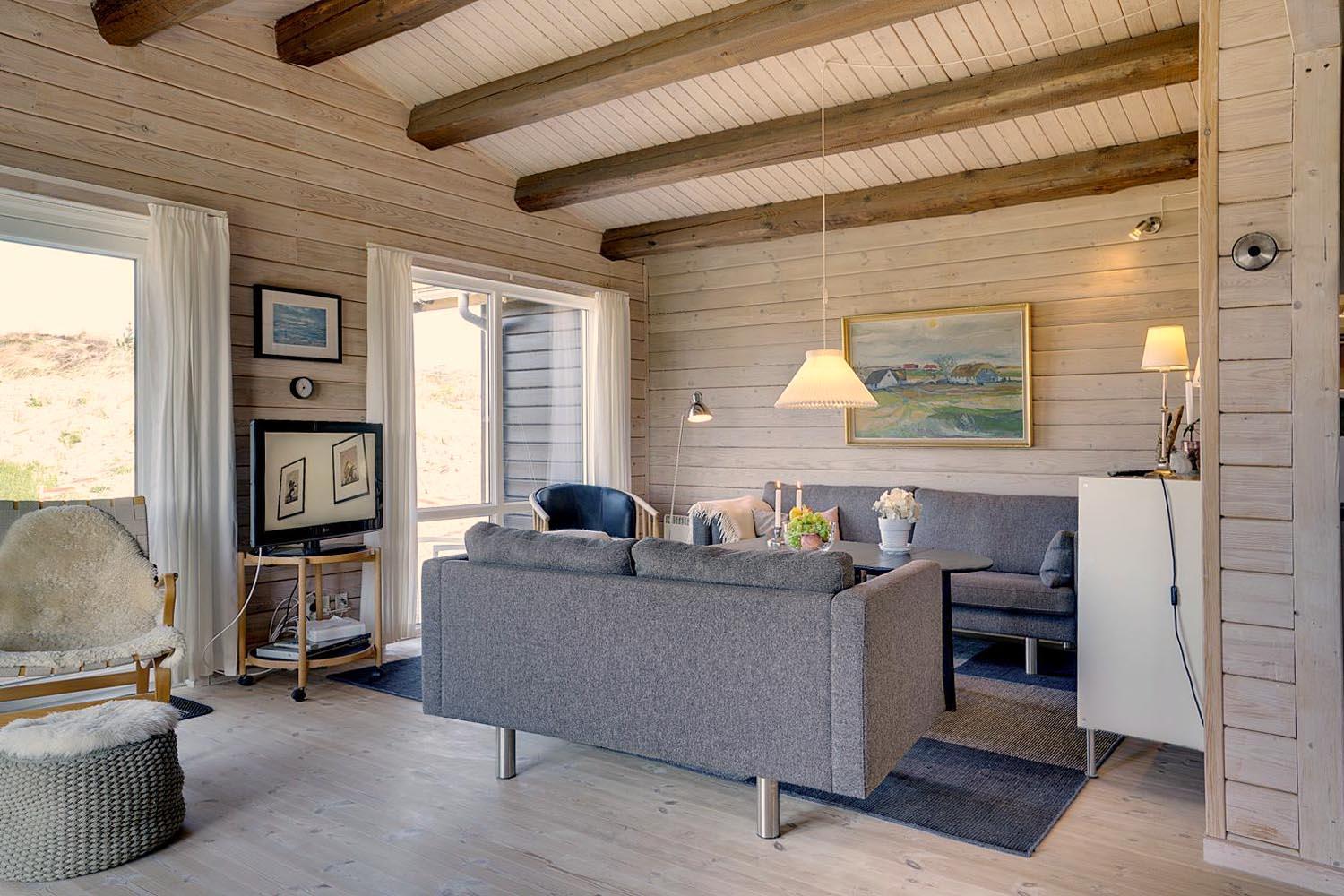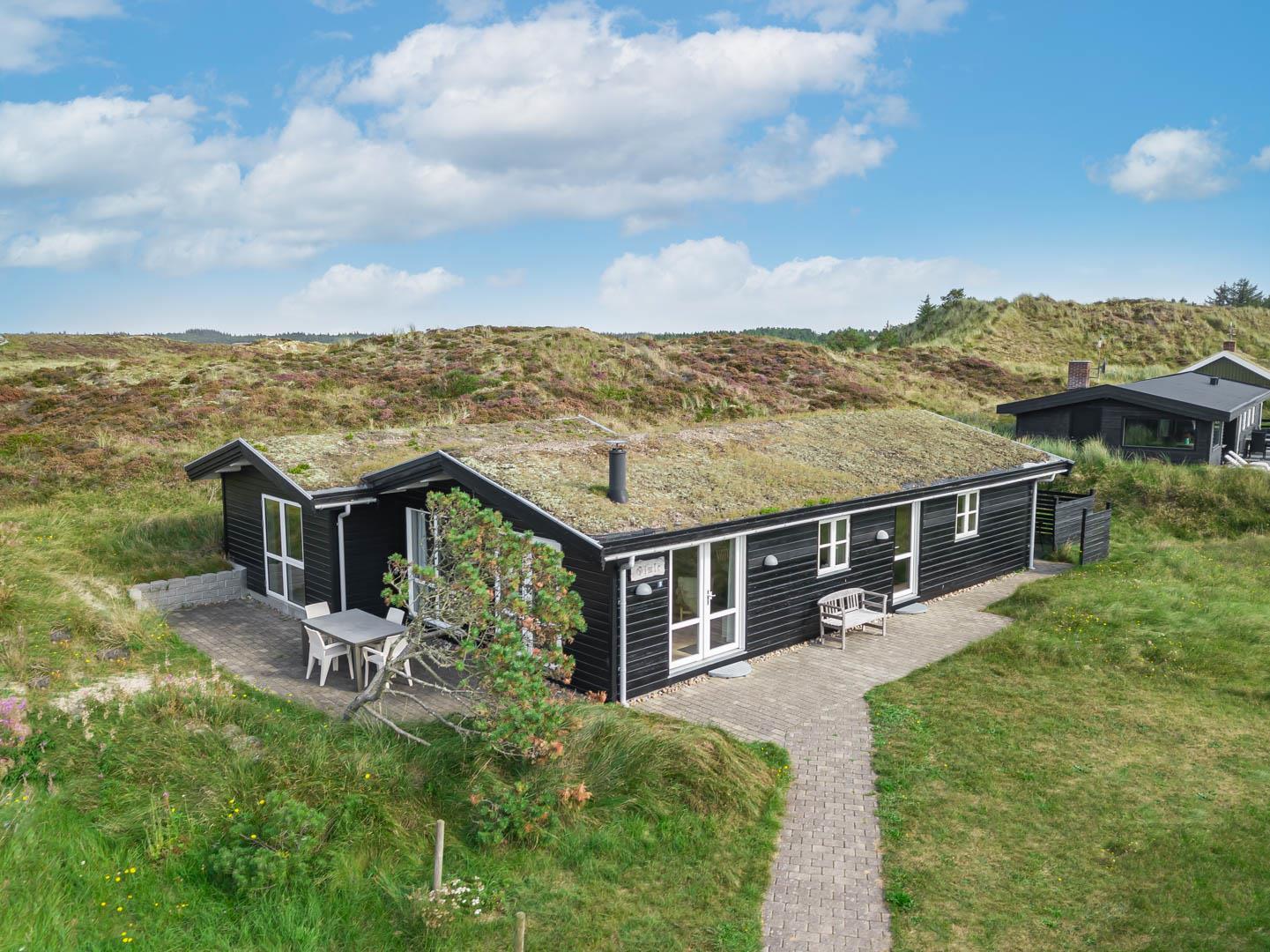 Dette dejlige, lyse, velpassede, total renoveret(2021) bjælkehus ligger på en flot klitgrund i rolige omgivelser. Den hyggelige stue er smagfuld og personlig indrettet og har udgang til dejlige syd og vestvendte terrasser og udsigt over den flotte lyngklædte naturgrund. Køkkenet er i åben forbindelse med stuen, - herfra er der udgang til morgenterrassen og det lyngklædte landskab. De 2 store soveværelser har begge udgang til terrasser. Det ene soveværelse har direkte udgang til overdækket østvendt terrasse. Husets depotrum rummer gode afsætningsmuligheder. I 2021 er huset tilbygget/renoveret - så der fremover er 2 badeværelser og 3 store soverum med dobbeltsenge. Alle senge er dobbeltsenge med boxmadrasser Et rigtigt dejligt feriehus, hvor rammerne er tilstede for en god ferie hele året. IKKE rygerhus.