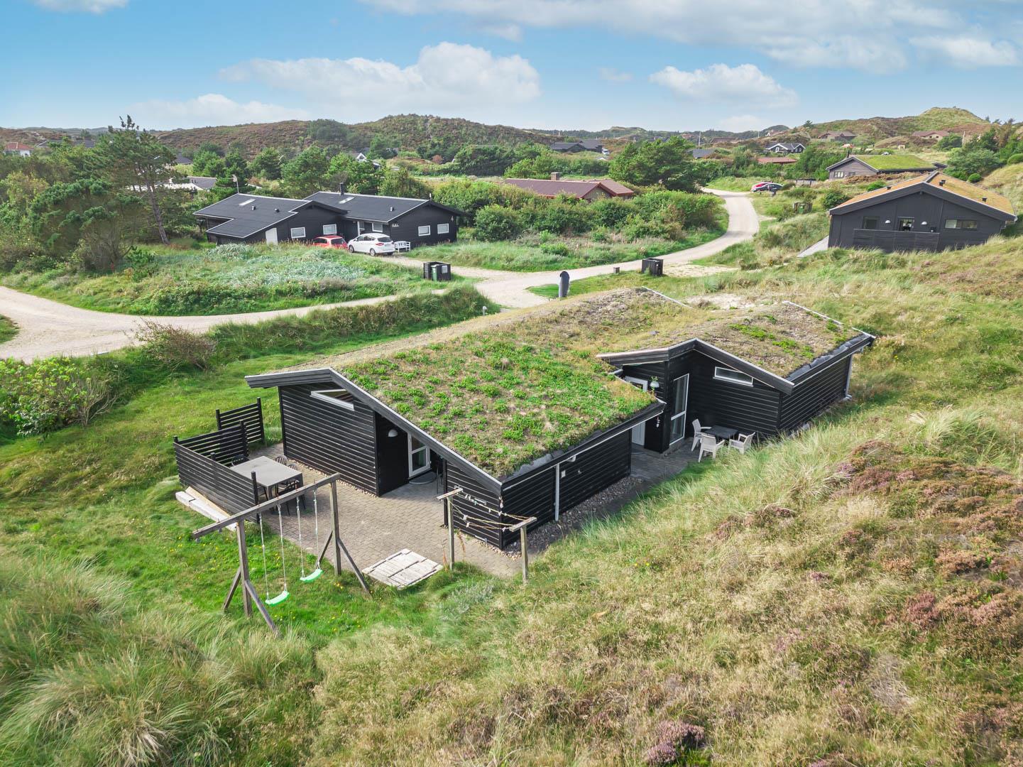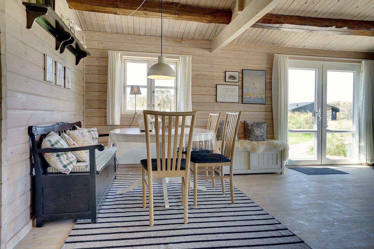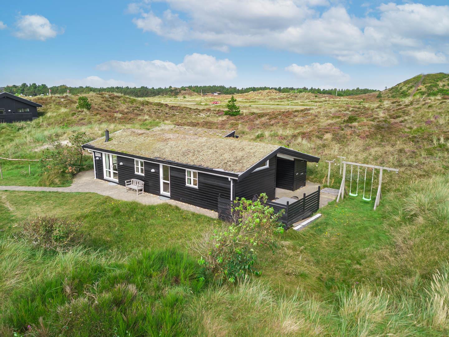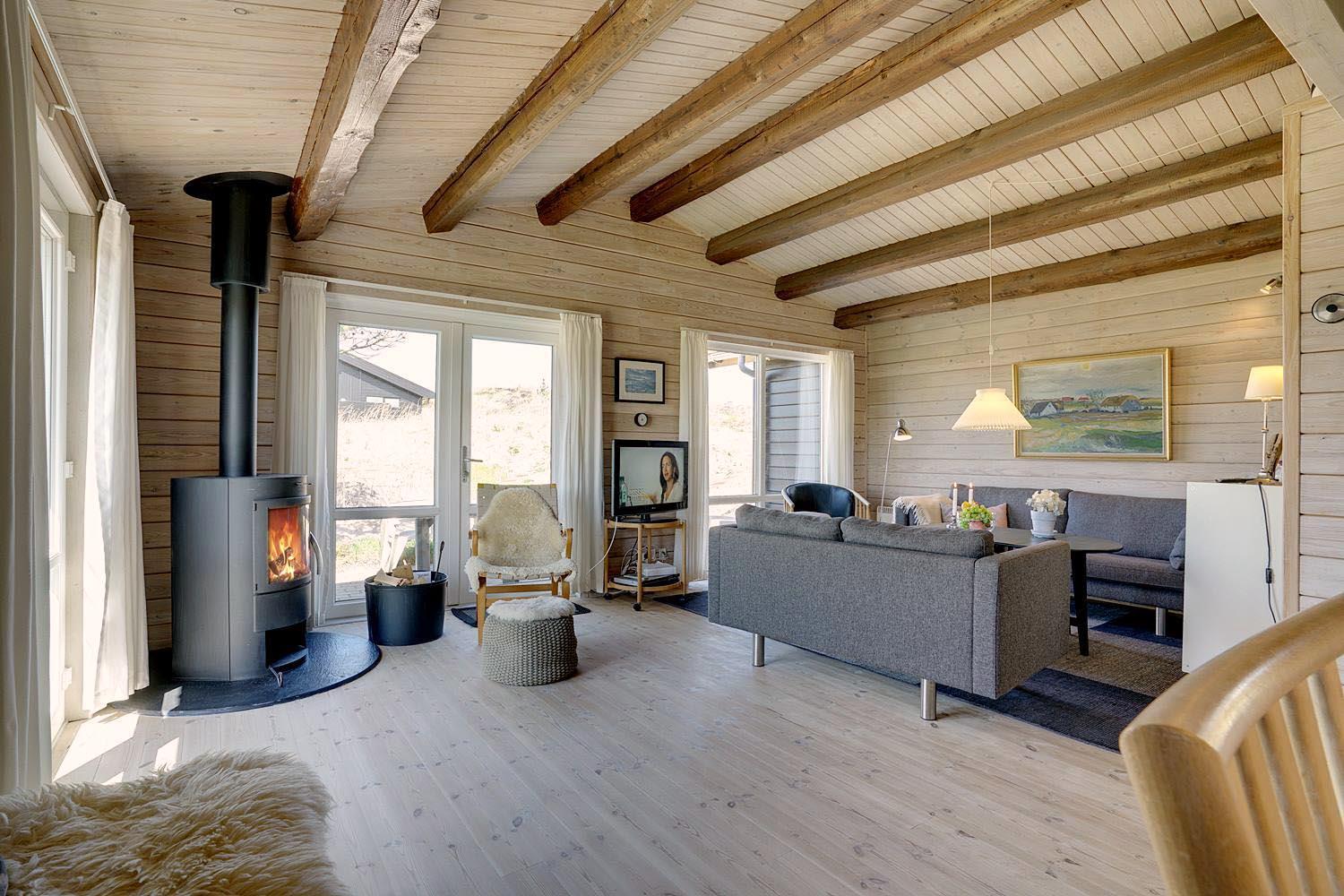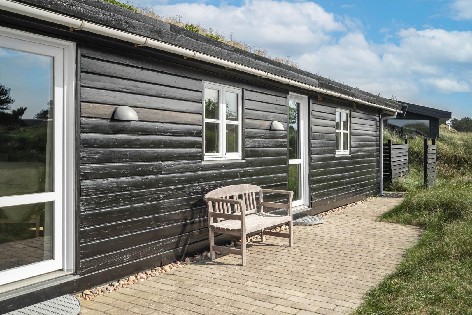 Dette dejlige, lyse, velpassede, total renoveret(2021) bjælkehus ligger på en flot klitgrund i rolige omgivelser. Den hyggelige stue er smagfuld og personlig indrettet og har udgang til dejlige syd og vestvendte terrasser og udsigt over den flotte lyngklædte naturgrund. Køkkenet er i åben forbindelse med stuen, - herfra er der udgang til morgenterrassen og det lyngklædte landskab. De 2 store soveværelser har begge udgang til terrasser. Det ene soveværelse har direkte udgang til overdækket østvendt terrasse. Husets depotrum rummer gode afsætningsmuligheder. I 2021 er huset tilbygget/renoveret - så der fremover er 2 badeværelser og 3 store soverum med dobbeltsenge. Alle senge er dobbeltsenge med boxmadrasser Et rigtigt dejligt feriehus, hvor rammerne er tilstede for en god ferie hele året. IKKE rygerhus.