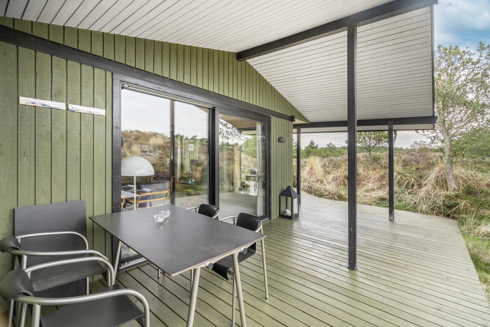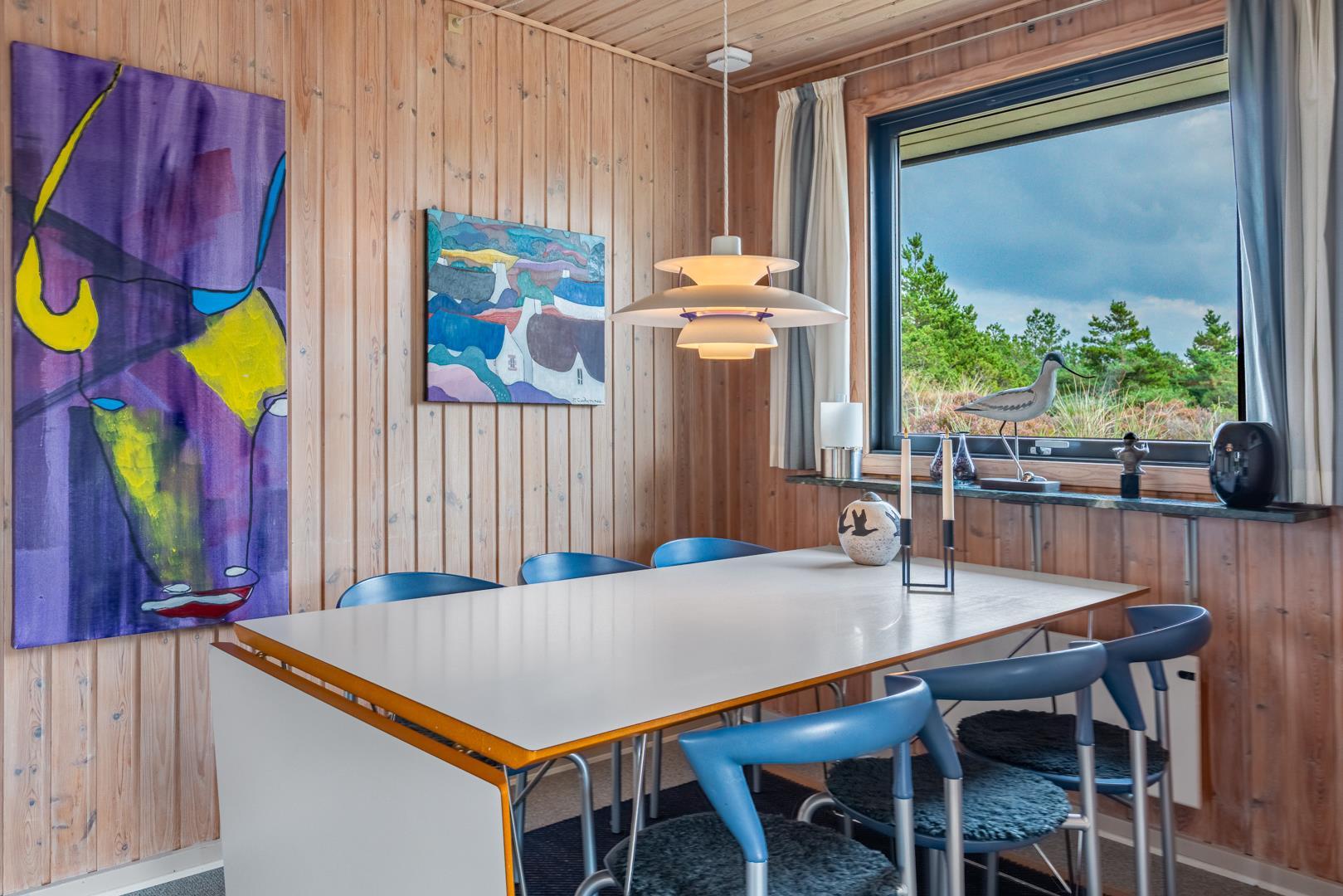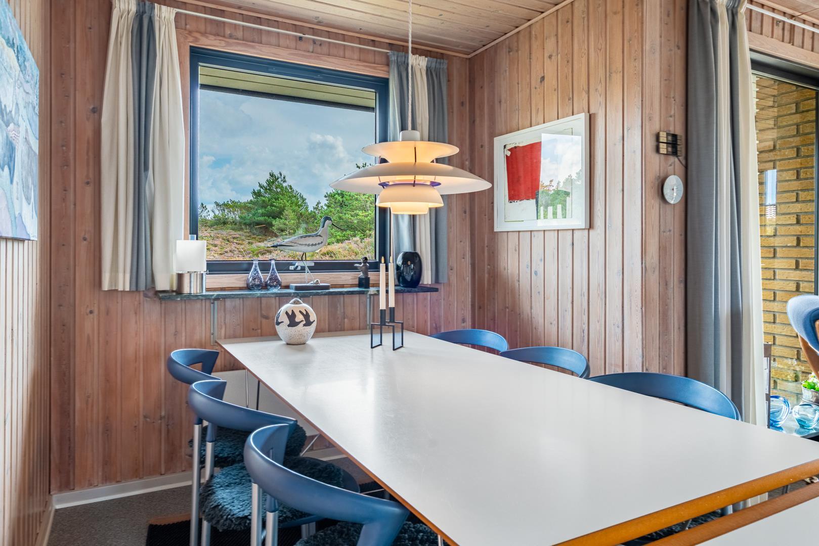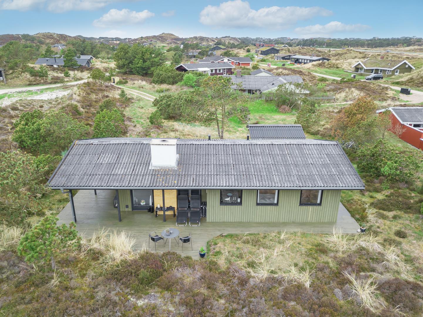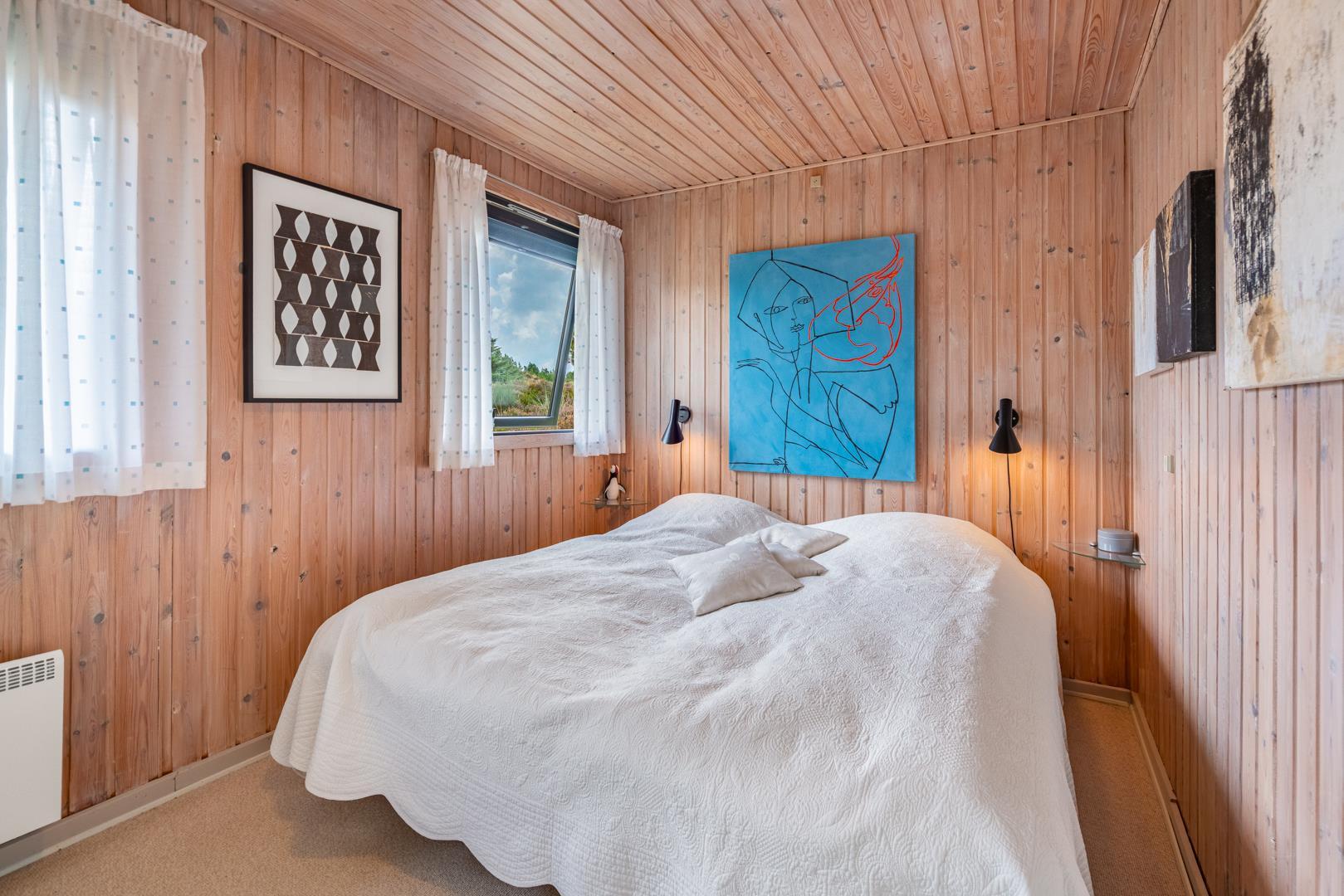 Privat og smagfuldt indrettet feriehus beliggende på en rolig og kuperet naturgrund ud til fredet område, godt tilbage trukket fra vejen. Fra stuen er udgang til feriehusets ugeneret, delvis overdækkede terrasse med panorama udsigt til områdets lyngklædte klitter. Sengestørrelser: dobbeltseng 180x200 cm. (2 madrasser), dobbeltseng 140 x 200 enkeltsenge85x200 cm.,