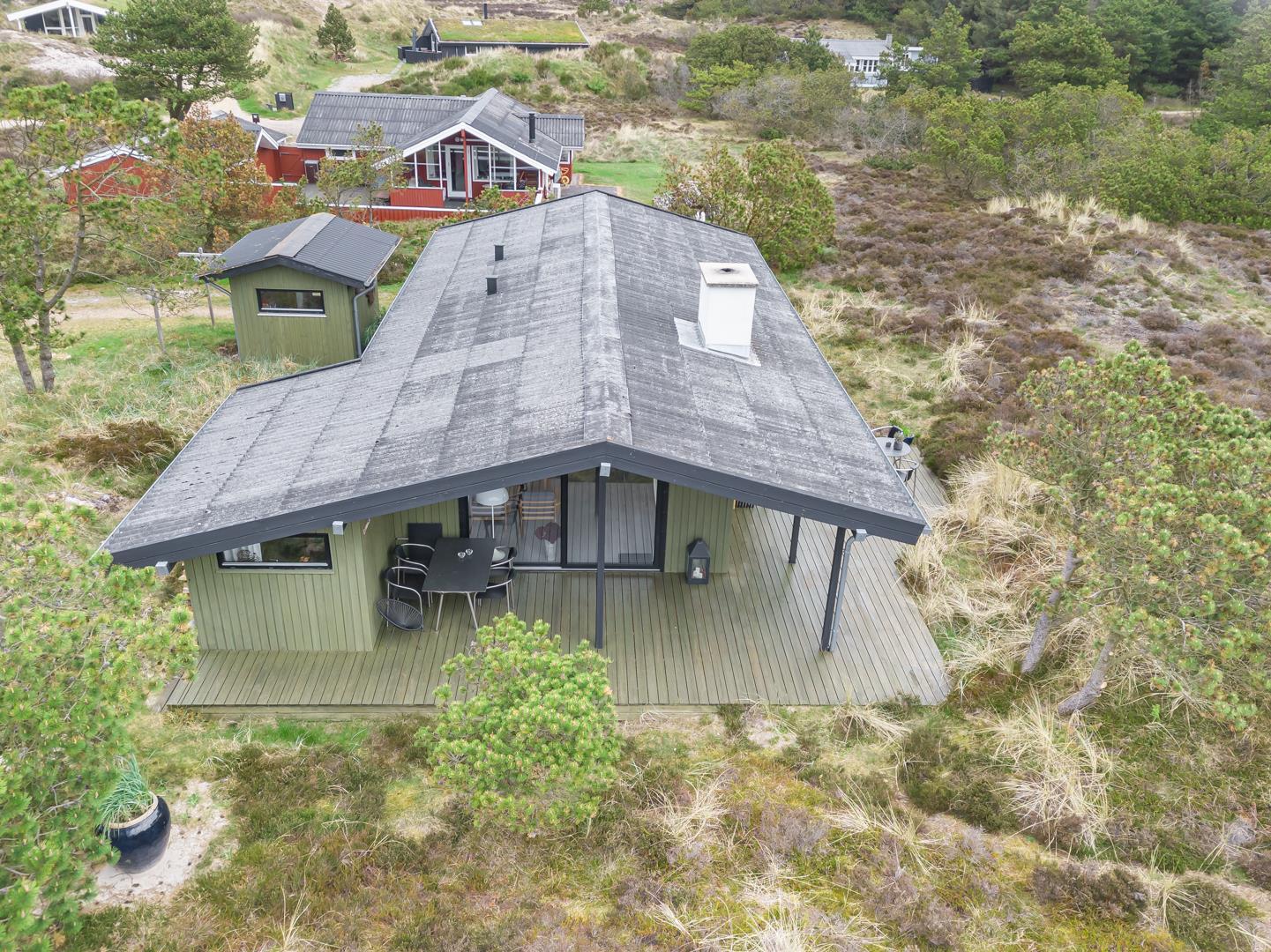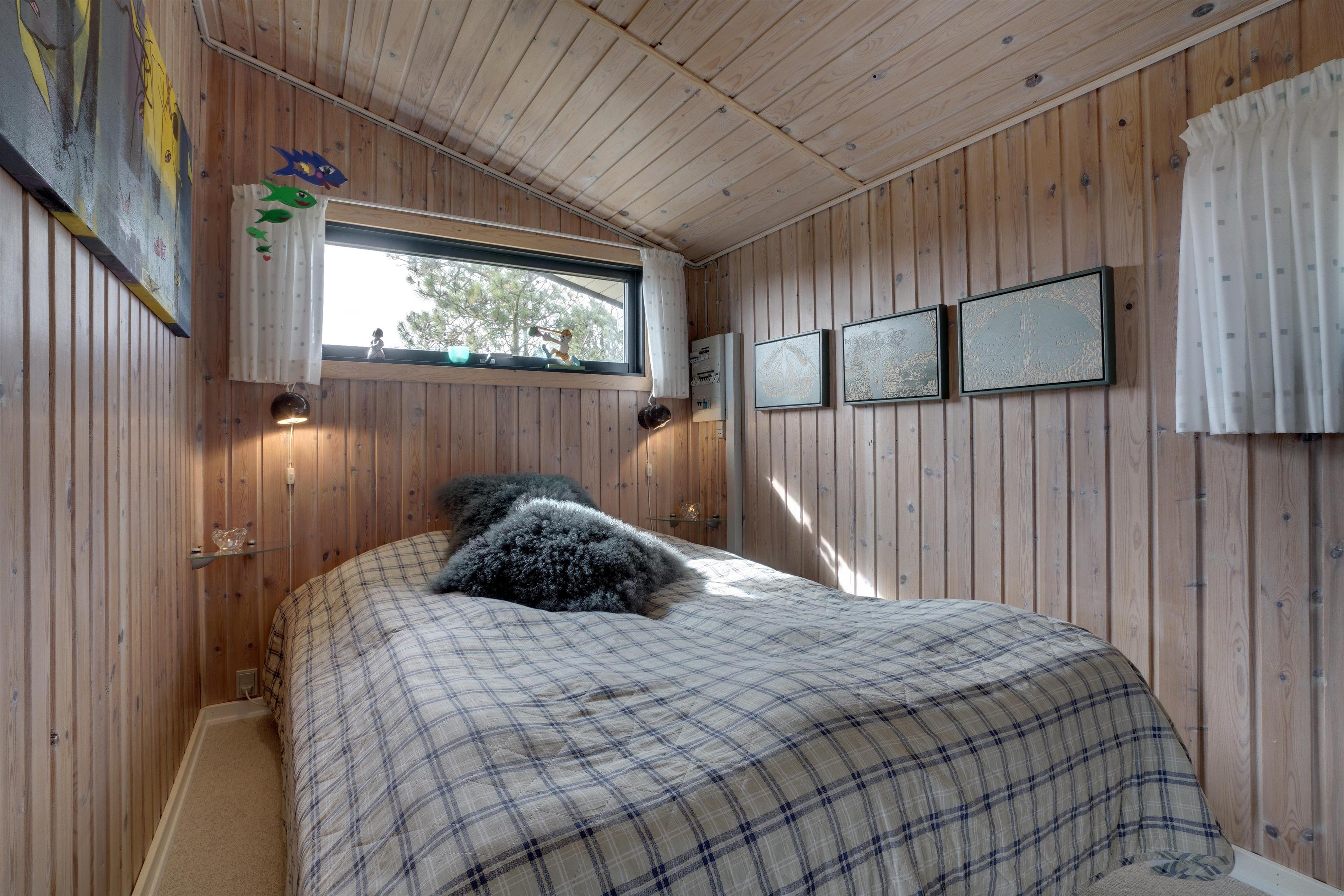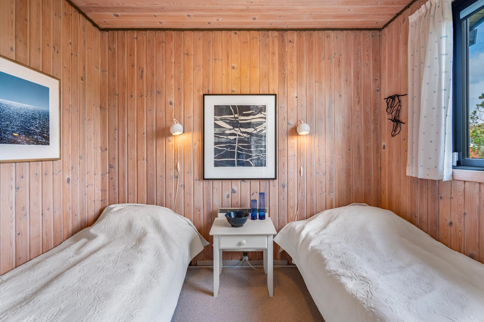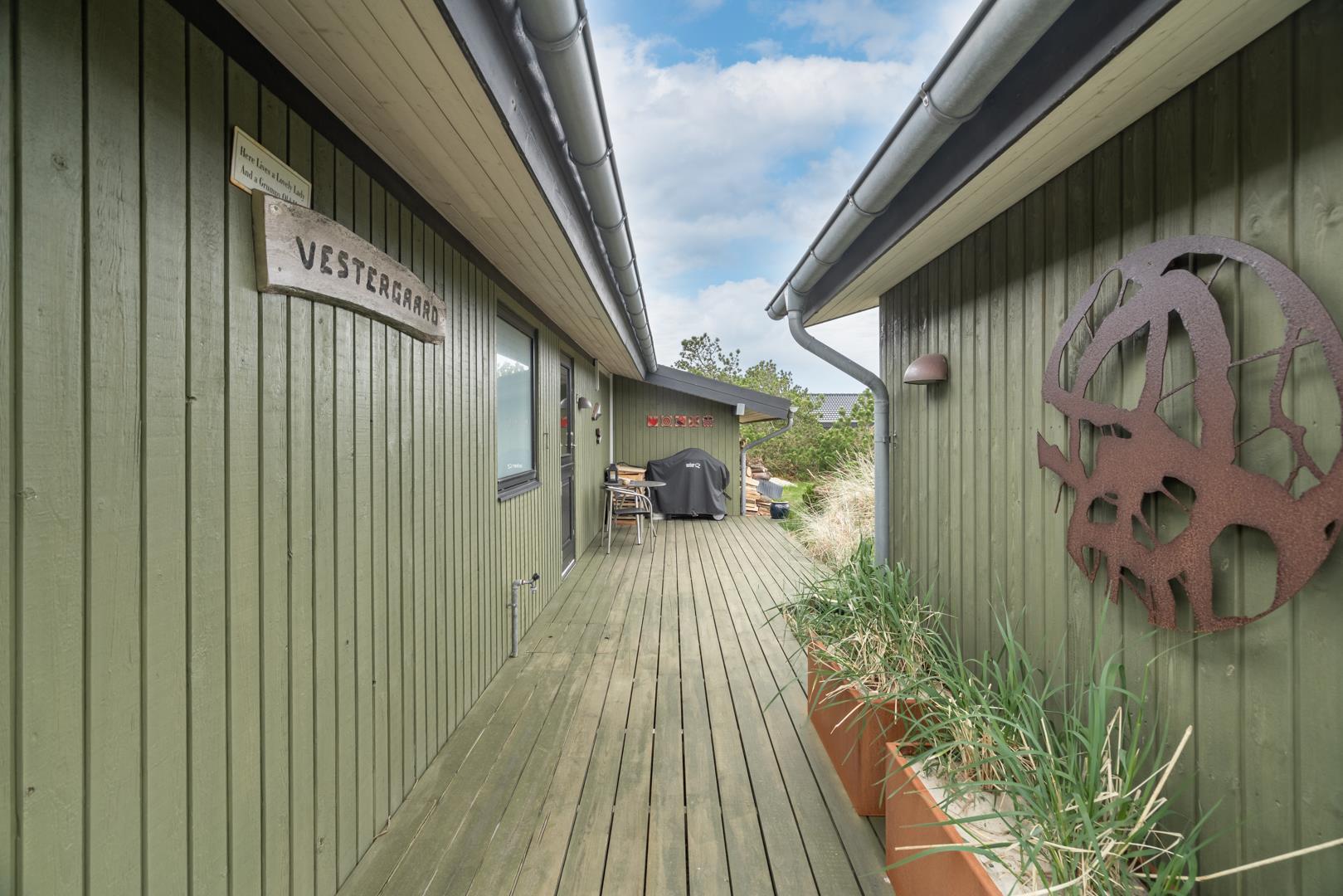 Privat og smagfuldt indrettet feriehus beliggende på en rolig og kuperet naturgrund ud til fredet område, godt tilbage trukket fra vejen. Fra stuen er udgang til feriehusets ugeneret, delvis overdækkede terrasse med panorama udsigt til områdets lyngklædte klitter. Sengestørrelser: dobbeltseng 180x200 cm. (2 madrasser), dobbeltseng 140 x 200 enkeltsenge85x200 cm.,