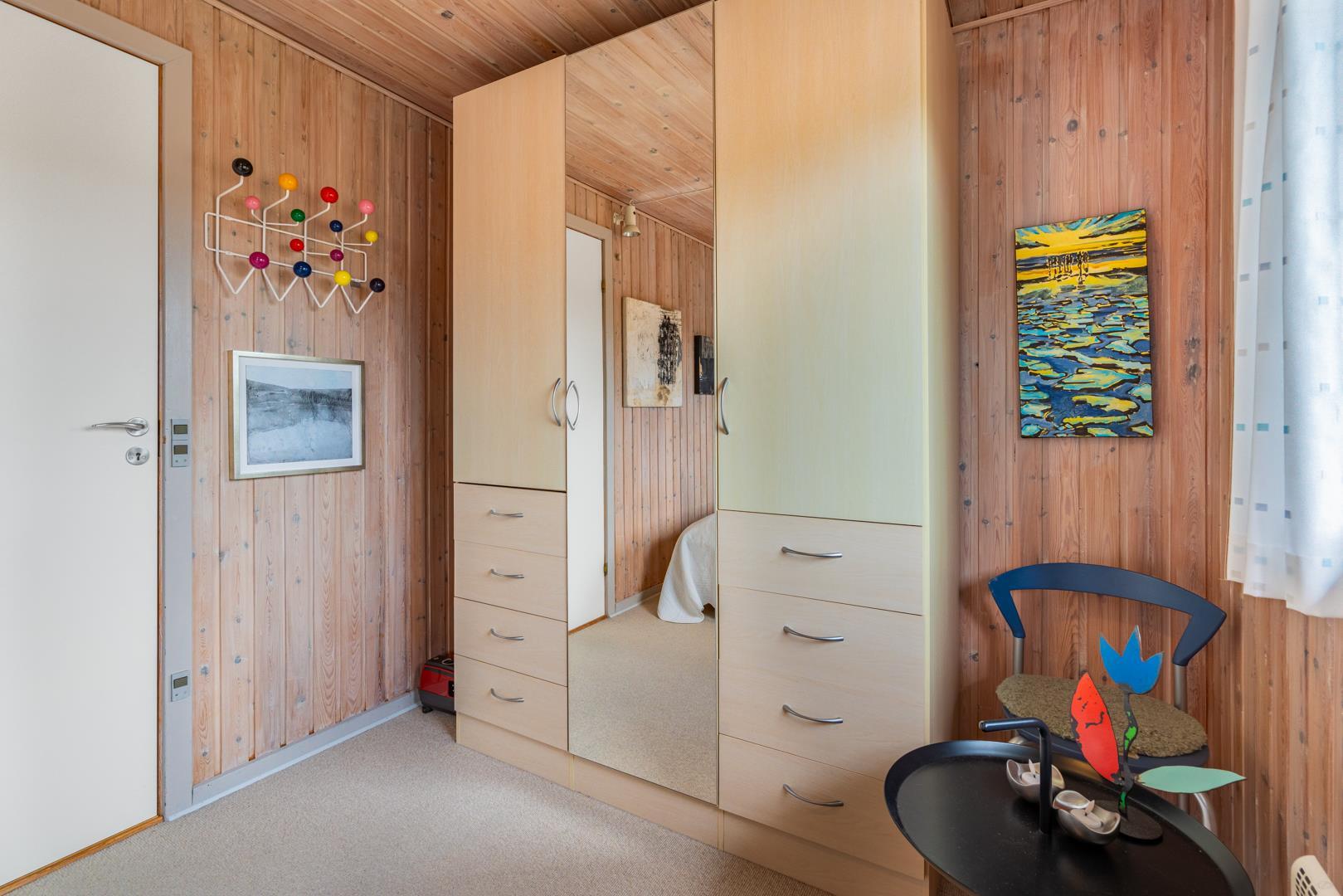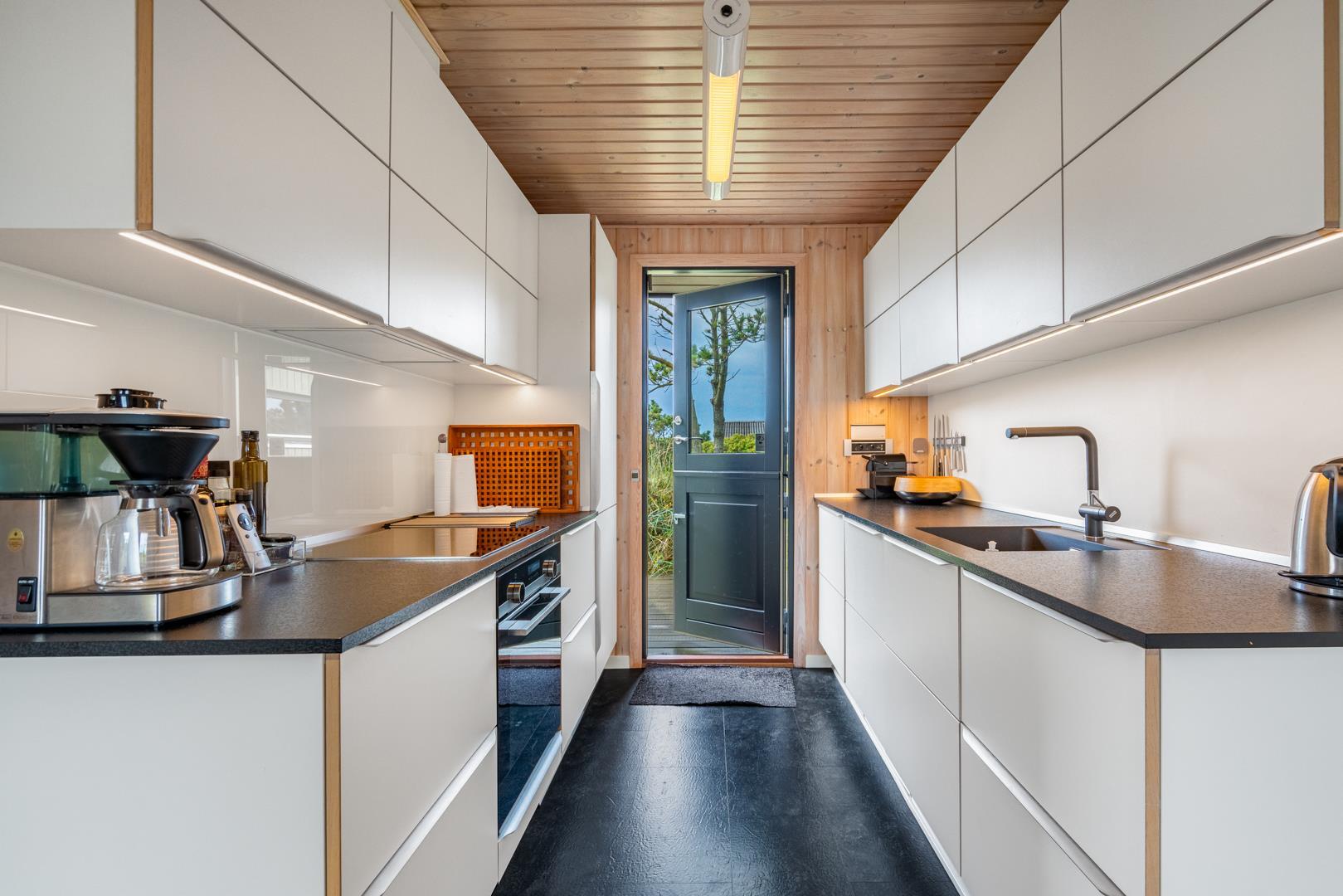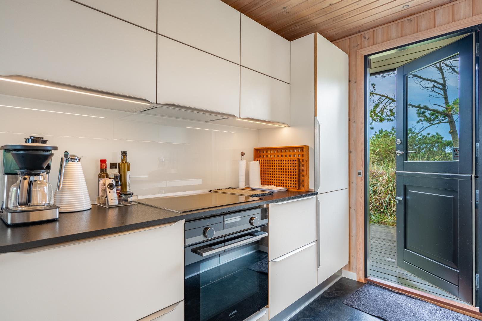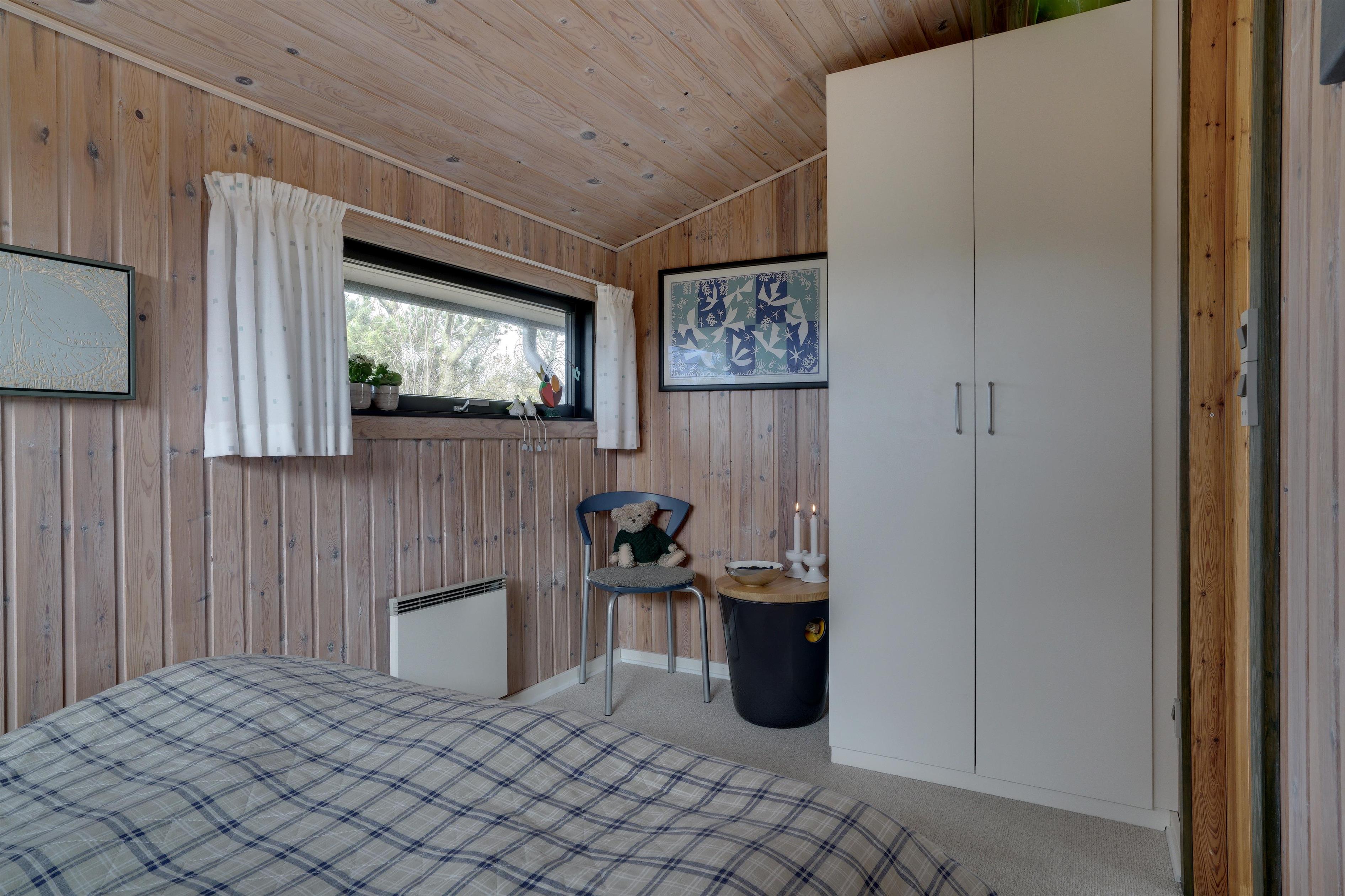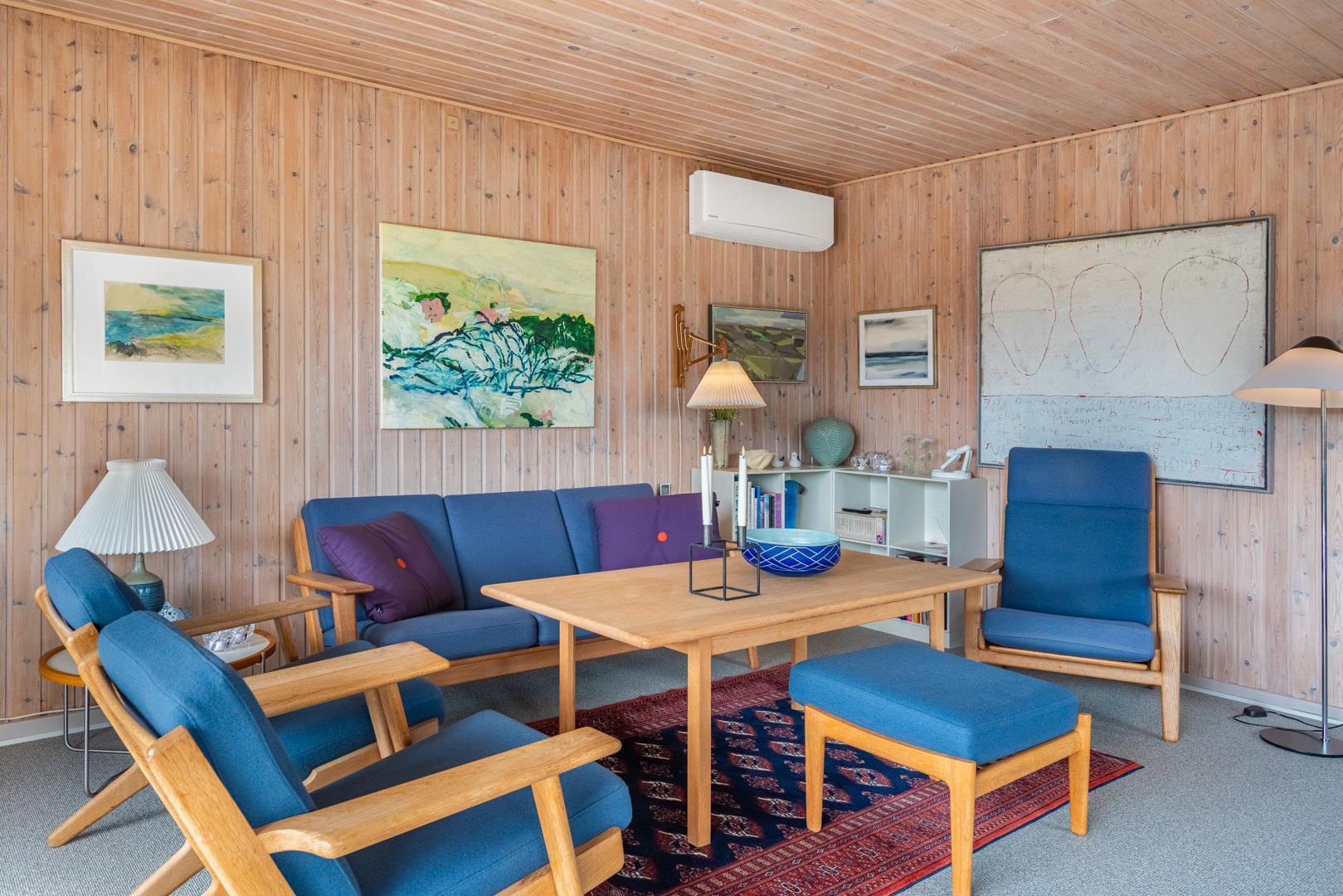 Privat og smagfuldt indrettet feriehus beliggende på en rolig og kuperet naturgrund ud til fredet område, godt tilbage trukket fra vejen. Fra stuen er udgang til feriehusets ugeneret, delvis overdækkede terrasse med panorama udsigt til områdets lyngklædte klitter. Sengestørrelser: dobbeltseng 180x200 cm. (2 madrasser), dobbeltseng 140 x 200 enkeltsenge85x200 cm.,