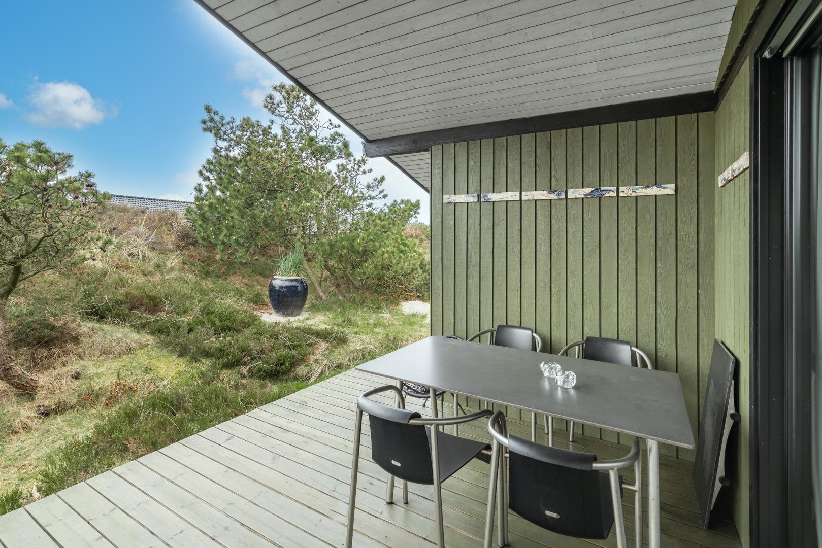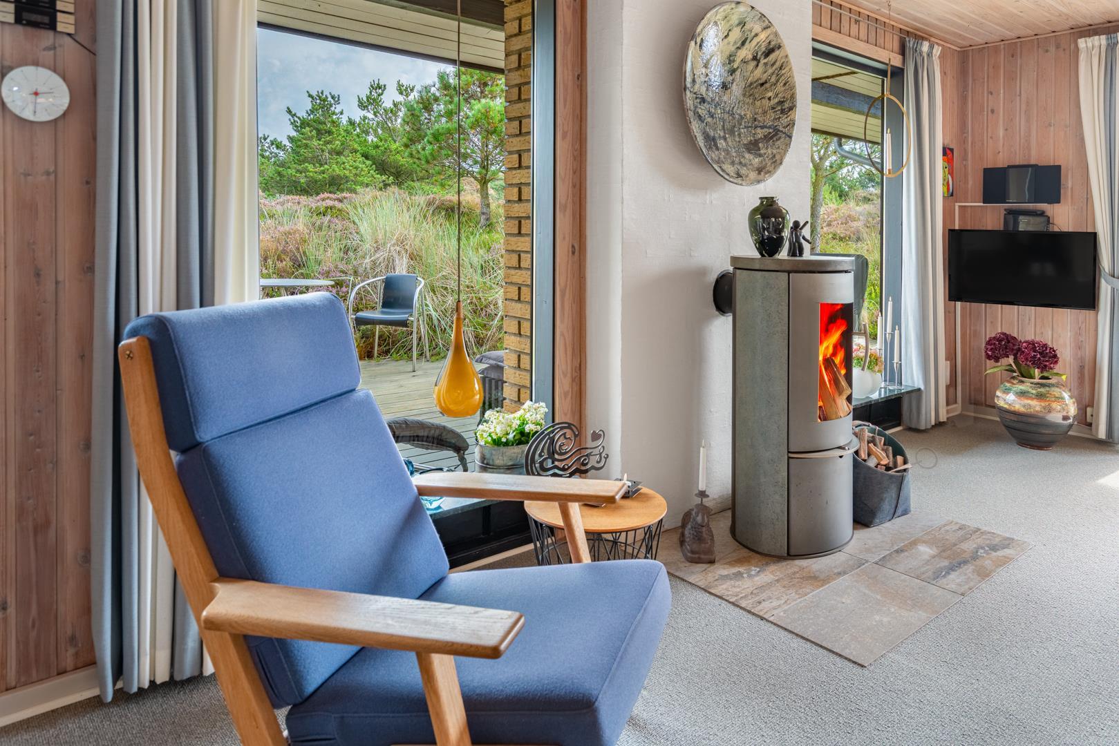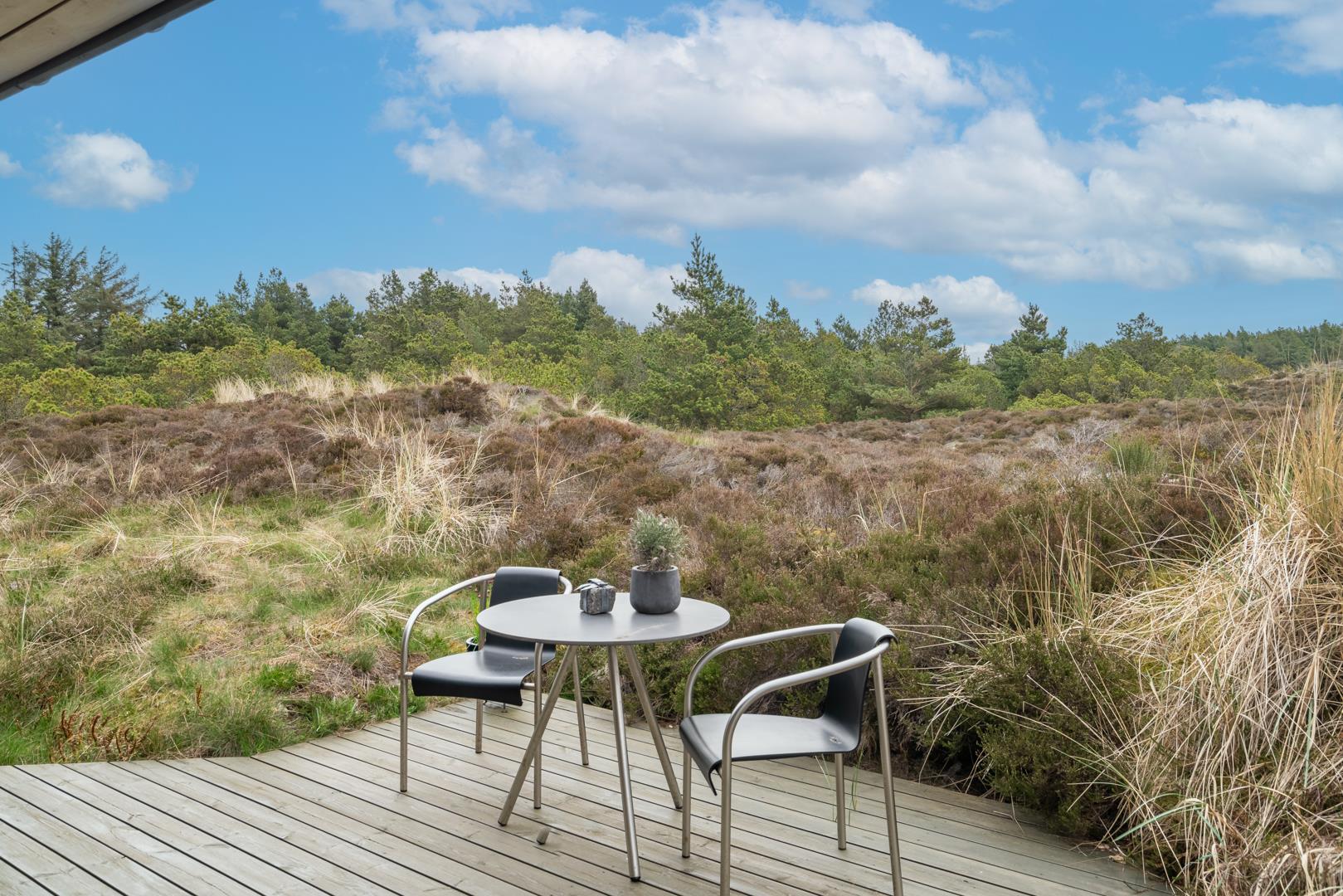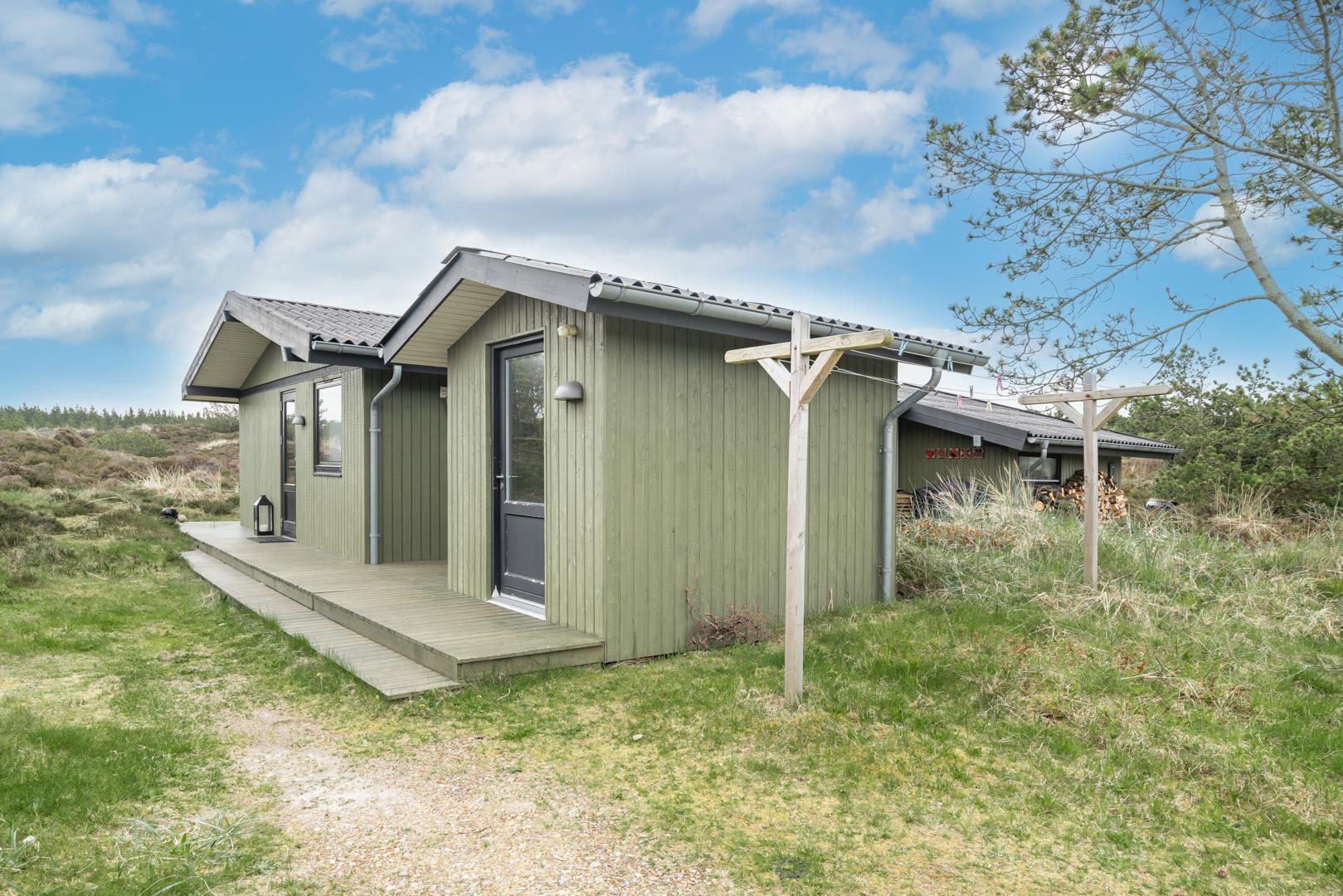 Privat og smagfuldt feriehus på en rolig naturgrund med panoramaudsigt til lyngklædte klitter i Henne Strand.