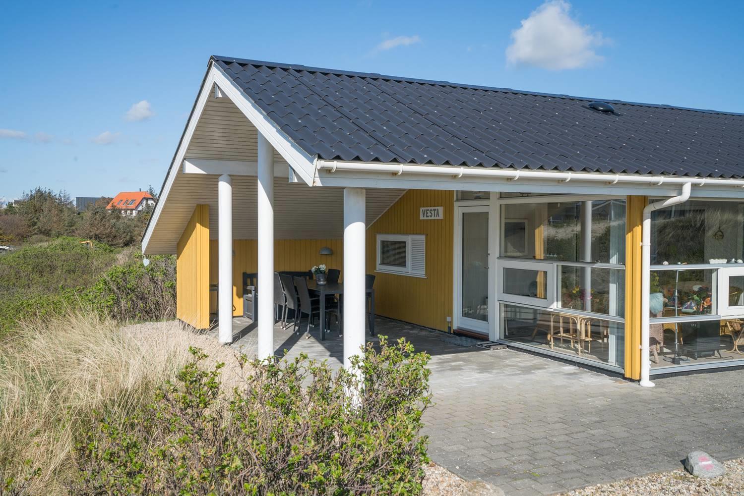Skønt feriehus i Henne Strand med sauna, klitudsigt og flere læfulde terrasser tæt på vandet.