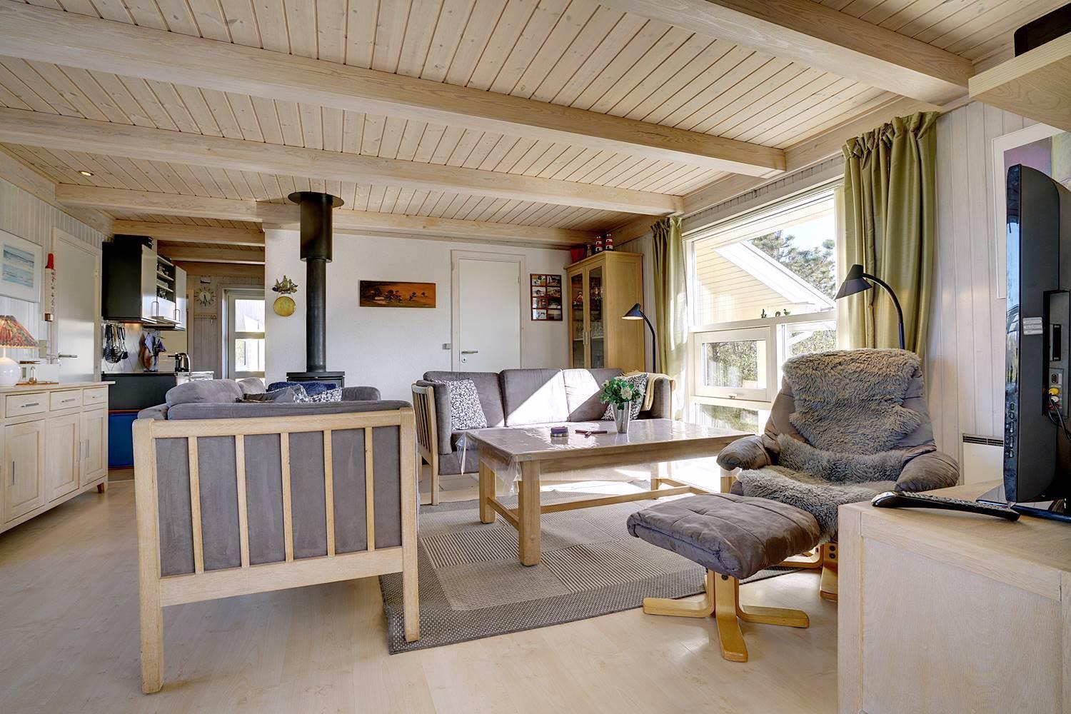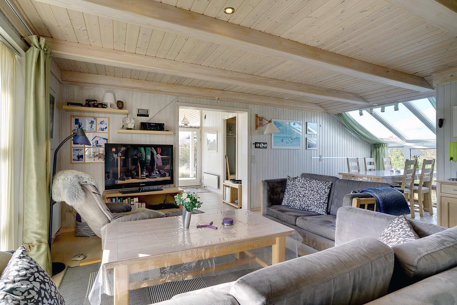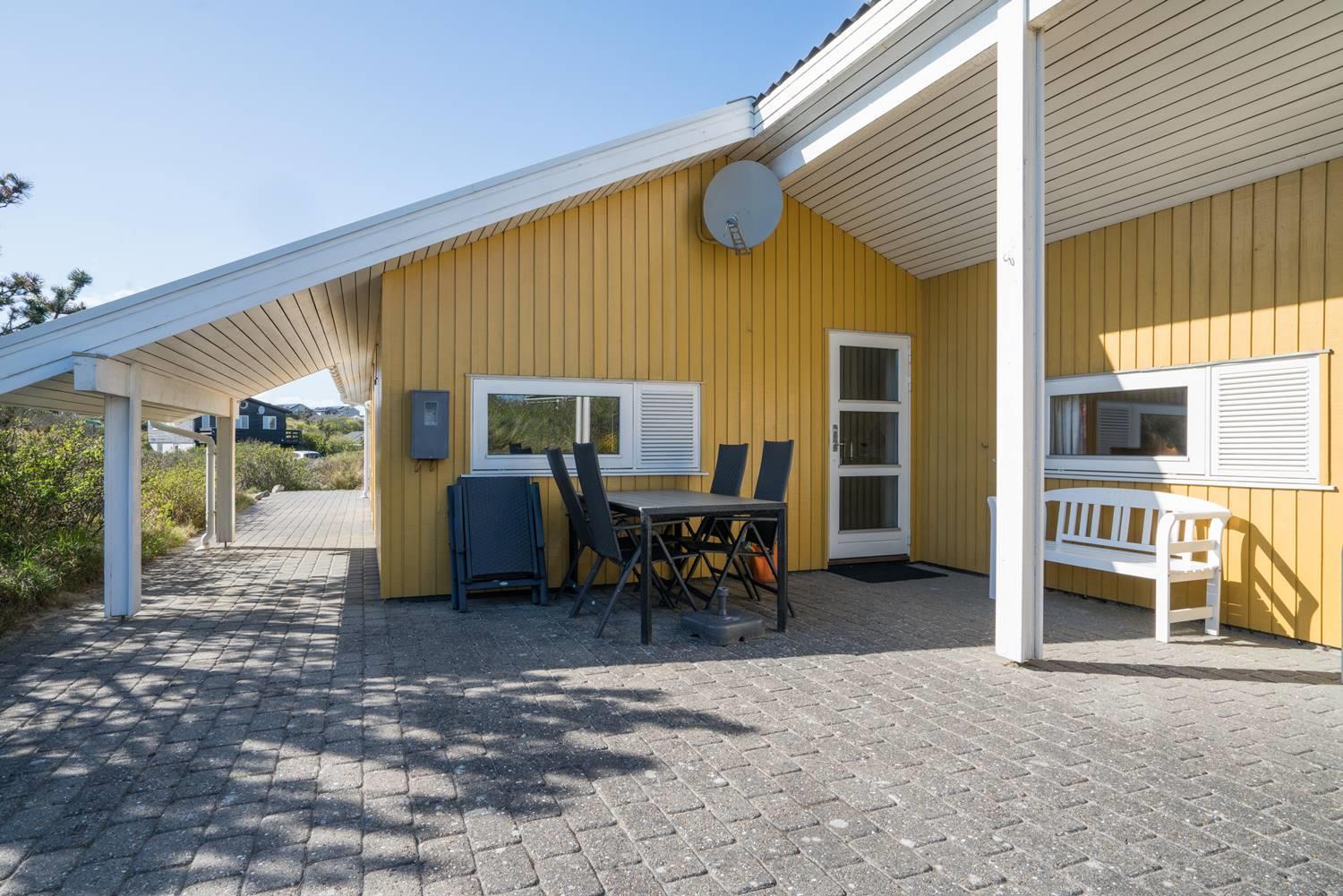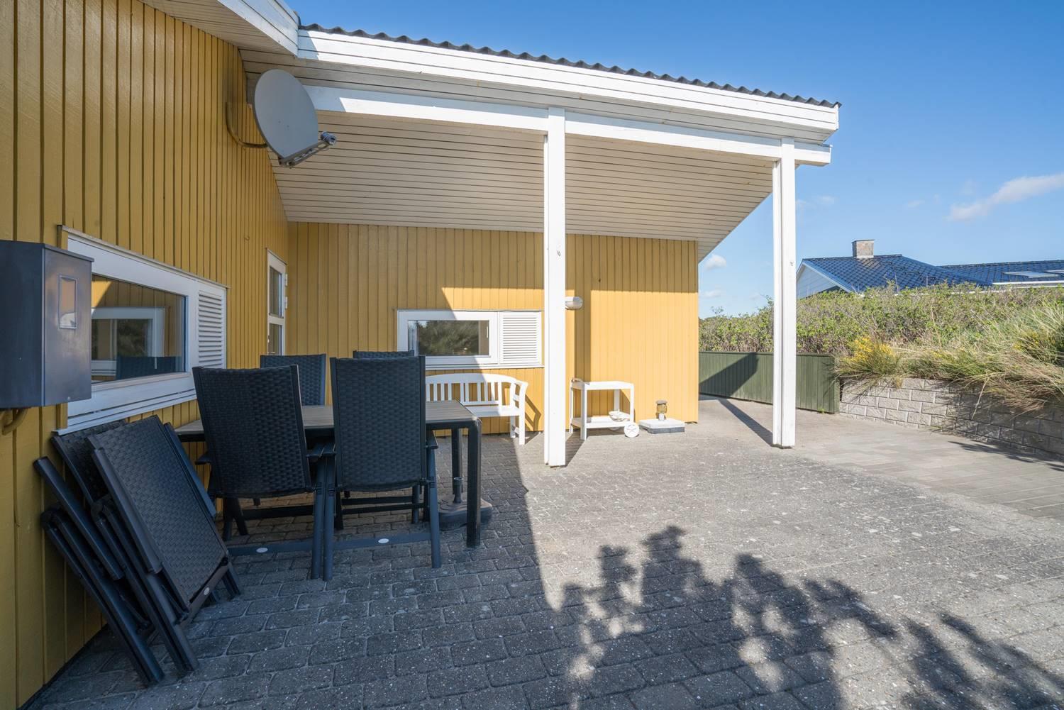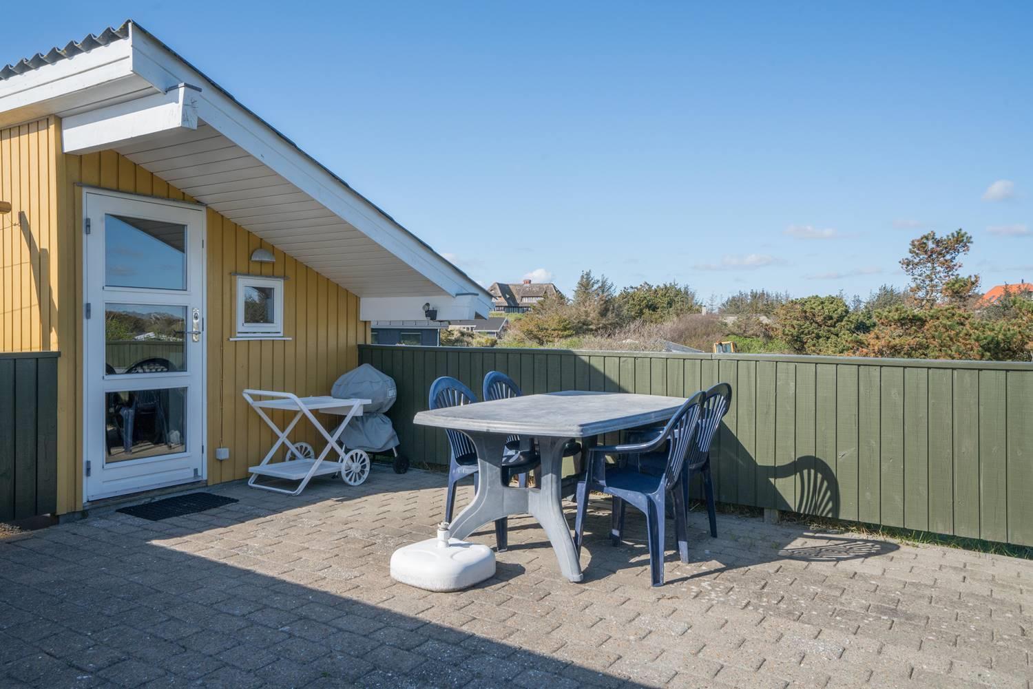 Dette skønne og velholdte feriehus med 2 badeværelser med bruser, er beliggende på en pragtfuld klitgrund tæt på vandet. Indvendigt er huset lyst, venlig og indrettet med flot møblement. Huset råder også over en dejlig udestuen. Der er omkring huset flere dejlig, ugenerede og læfulde terrasser.