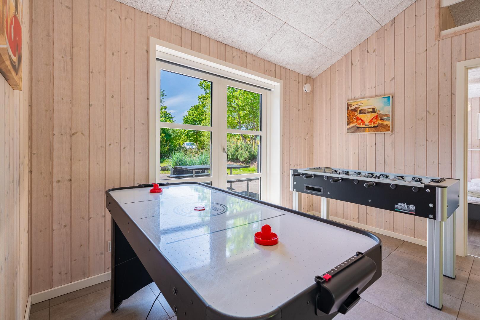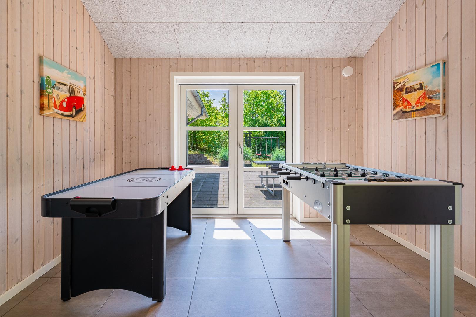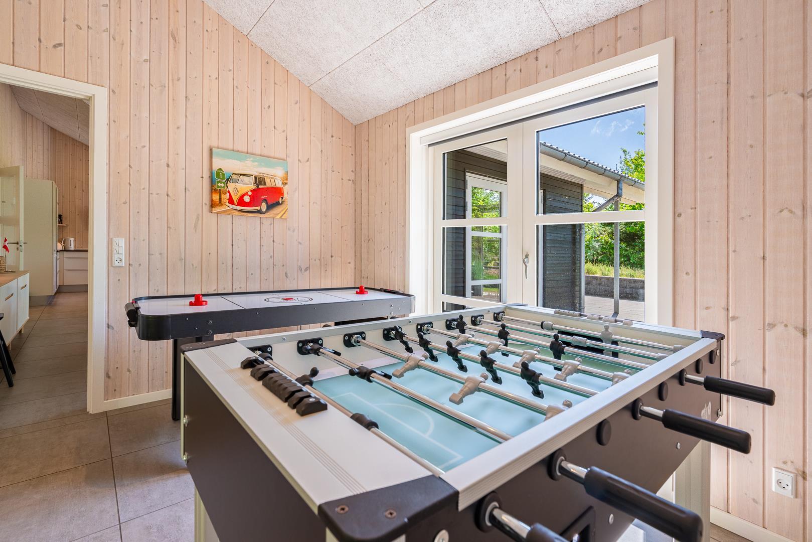 Thomas Jensens Vej 10 er mere end blot et sommerhus - det er nemlig yderst anvendeligt hele året rundt takket være det skønne aktivitetsrum, hvor I kan øve jer i bordfodbold og tæske hinanden i airhockey - her er endvidere en gamerstation med en blød sofa, fladskærm og PlayStation 4.