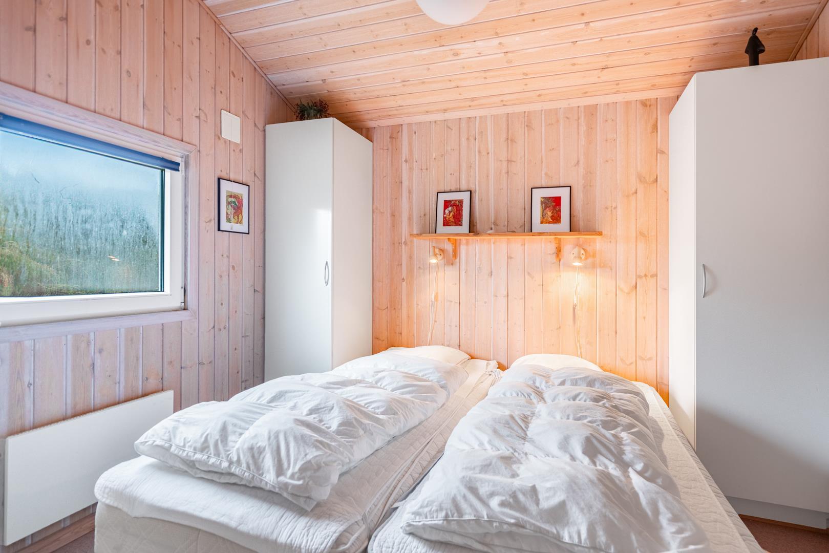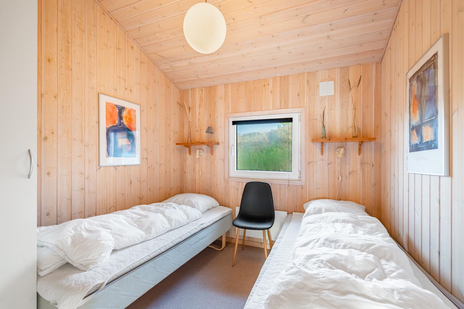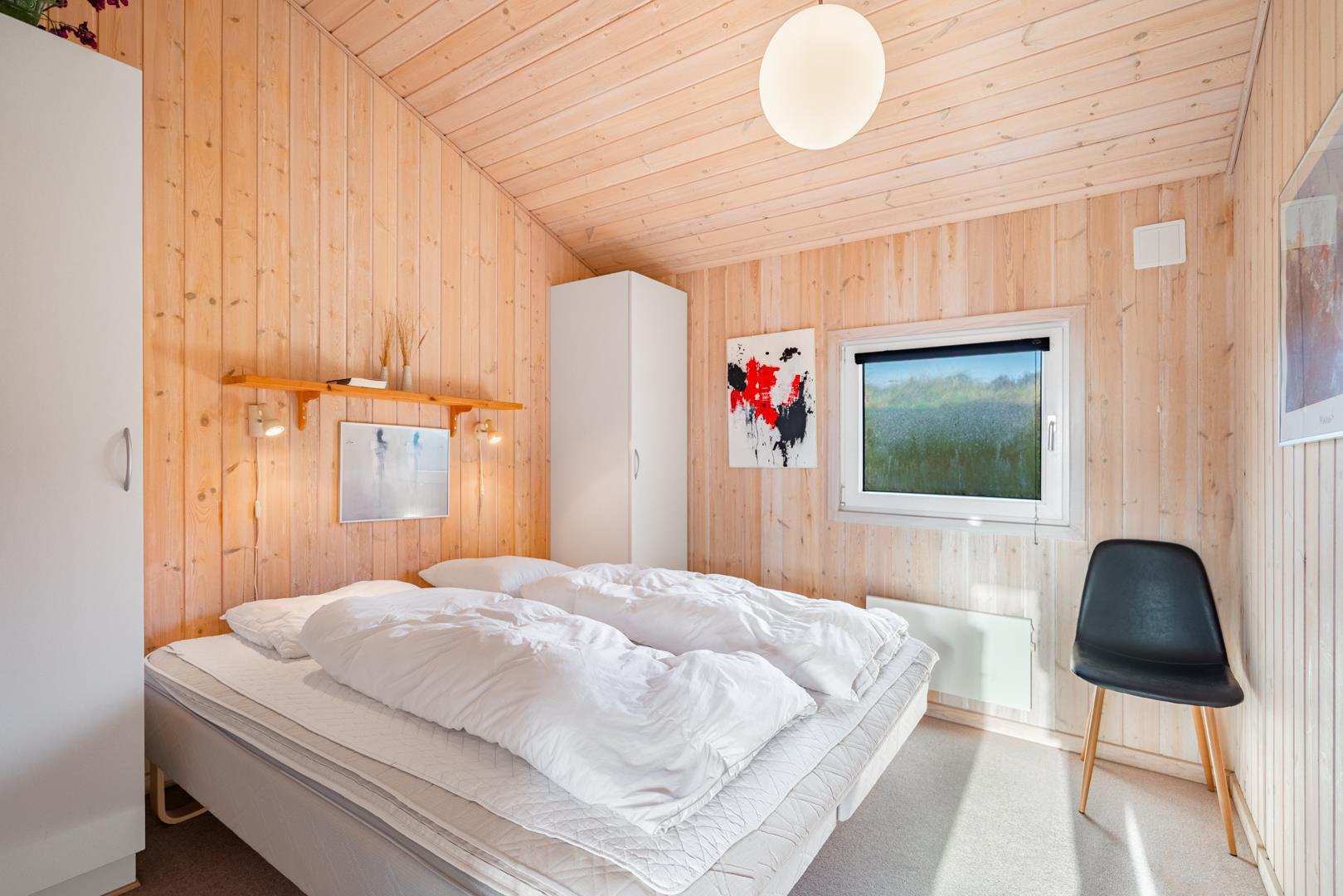 Her finder du et dejligt klassisk og charmerende sommerhus i Henne Strand. Et dejligt velholdt sommerhus beliggende på en ugeneret og let kuperet naturgrund. Dette feriehus er det ideelle valg, hvis du søger den autentiske sommerhusstemning under din ferie. Her finder du god plads til 6 personer med 3 soveværelser: 2 værelser med dobbeltsenge og 1 værelse med 2 enkeltsenge.