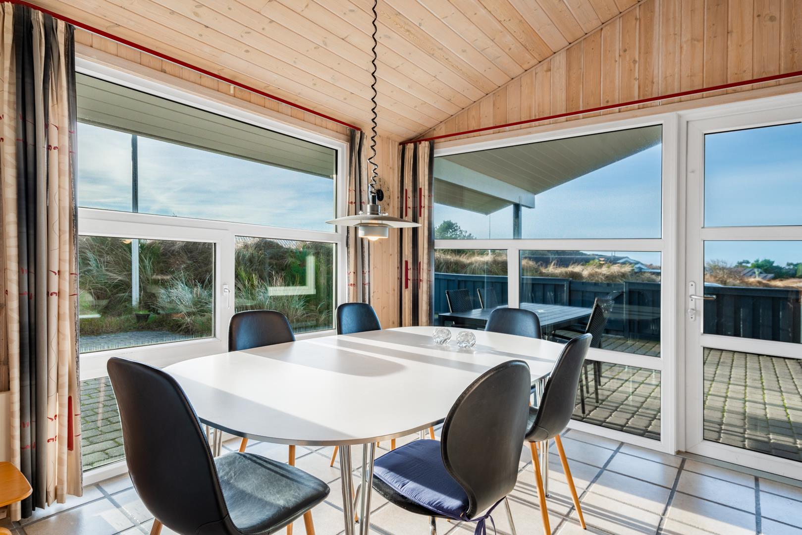 På terrassen kan du nyde de solrige timer - start dagen med morgenkaffen i de første solstråler og afslut aftenen med et glas vin, mens du beundrer den varierende himmel ved solnedgang. Et skønt feriehus, hvor du er i gåafstand til byens livlige handelsliv og har adgang til Danmarks naturskønne områder.