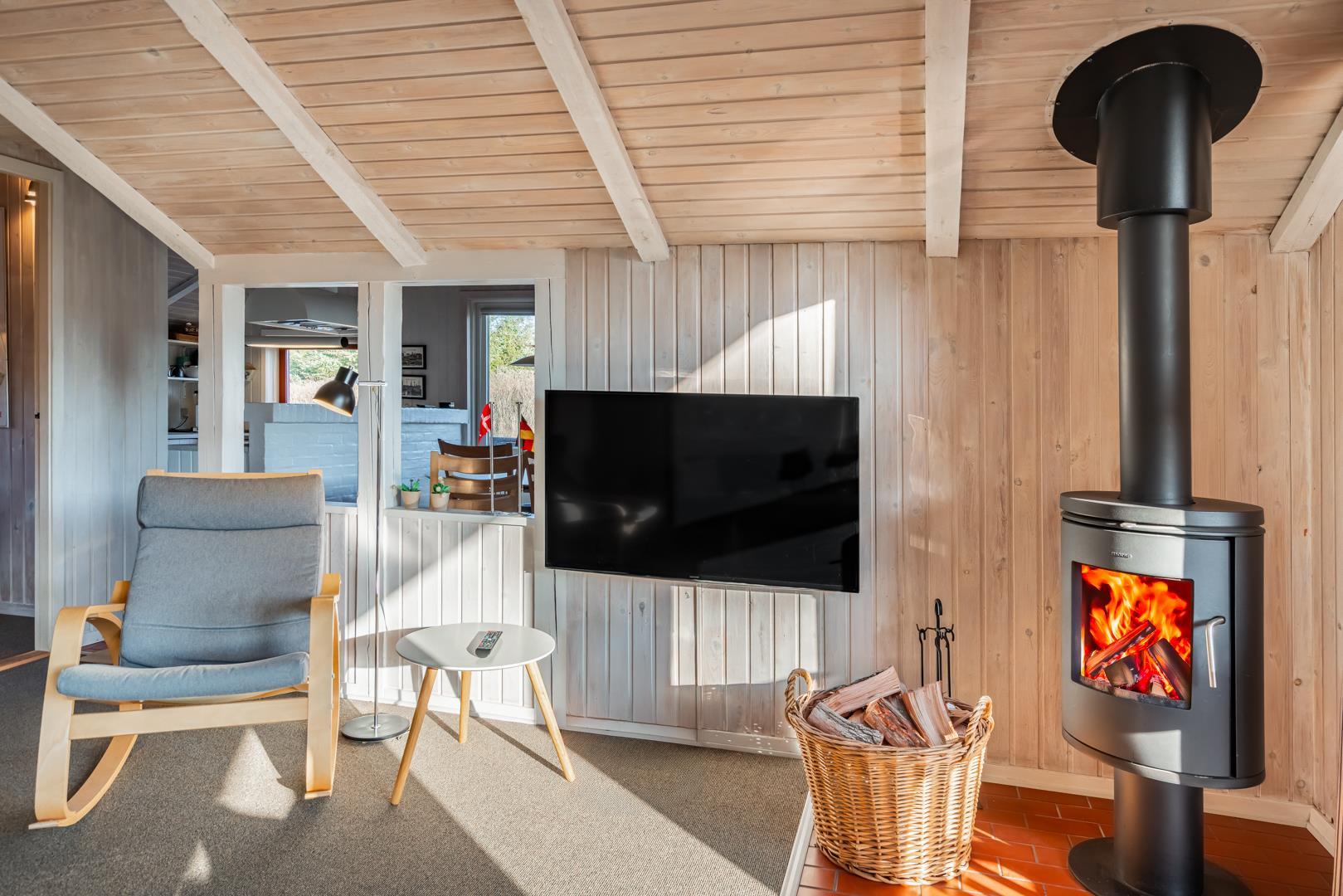 Det åbne køkken er veludstyret og ligger i forbindelse med en hyggelig spiseplads – det perfekte samlingspunkt for måltider og hyggelige stunder. Børnene kan lege frit på den sikre terrasse, mens de voksne slapper af.
