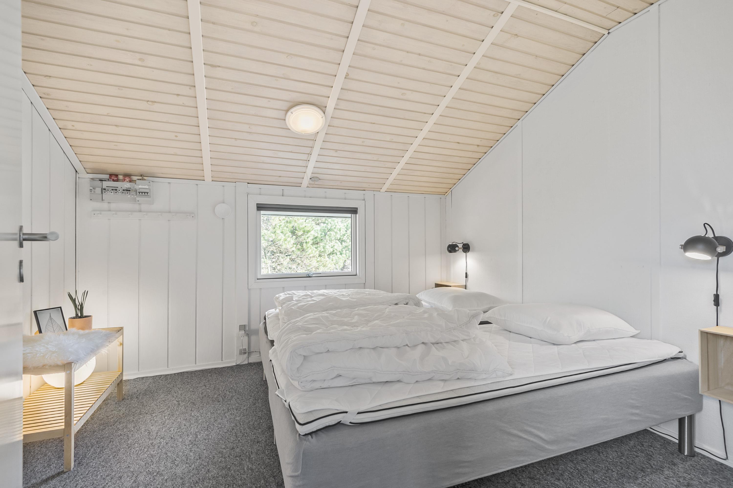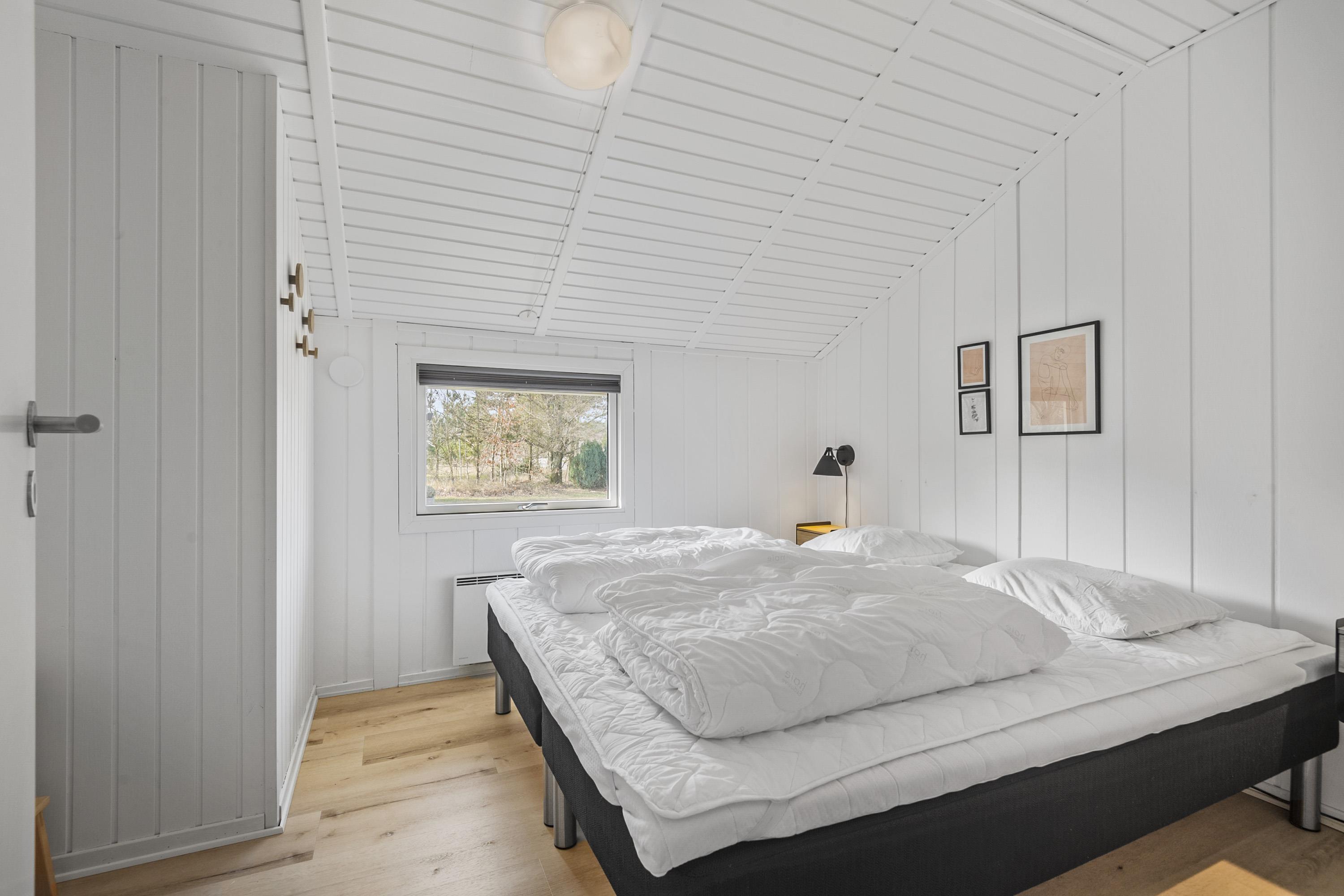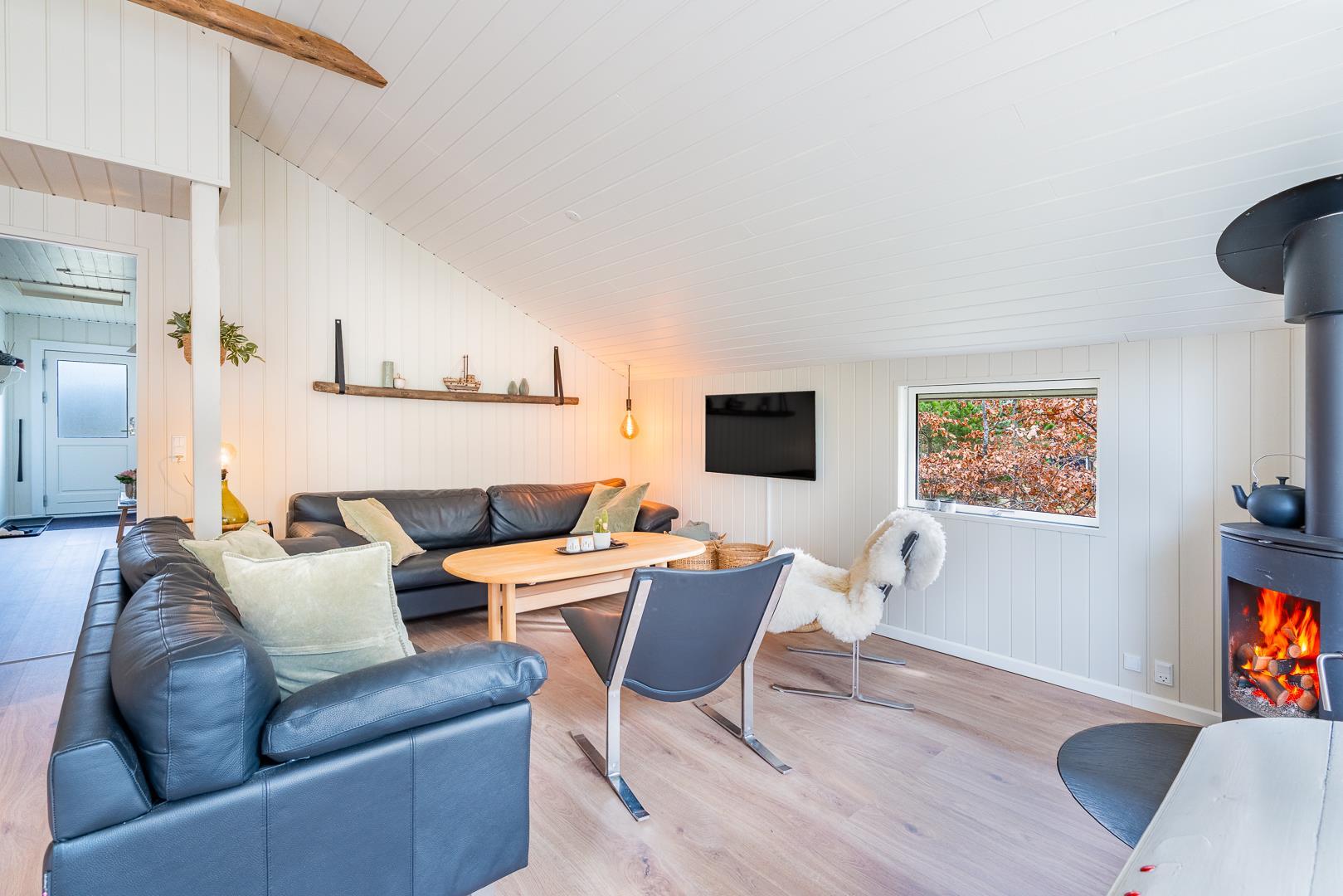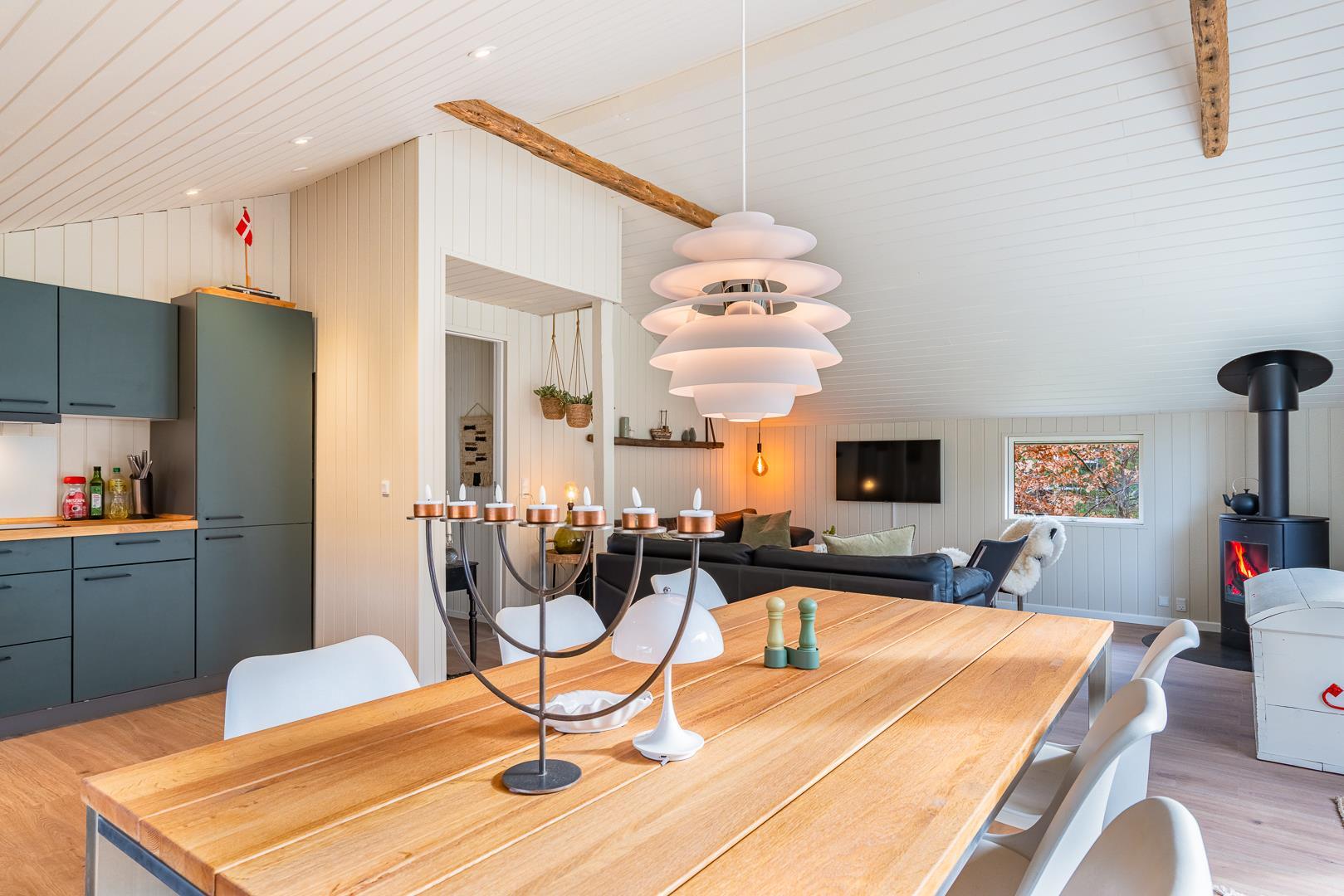 Huset der er til 6 personer, har 3 gode soverum ( to med dobbeltsenge og et med 2 enkeltsenge) er nyrenoveret i 2025 og har fået ny loft-vægbeklædning og et stort moderne køkken alrum. Stuen er hyggeligt indrettet med loft til kip og brændeovn. Der er direkte udgang til en overdækket terrasse fra køkken alrummet. I 2020 er der lavet et dejligt moderne badeværelse med bl.a.. vaskemaskine og tørretumbler.