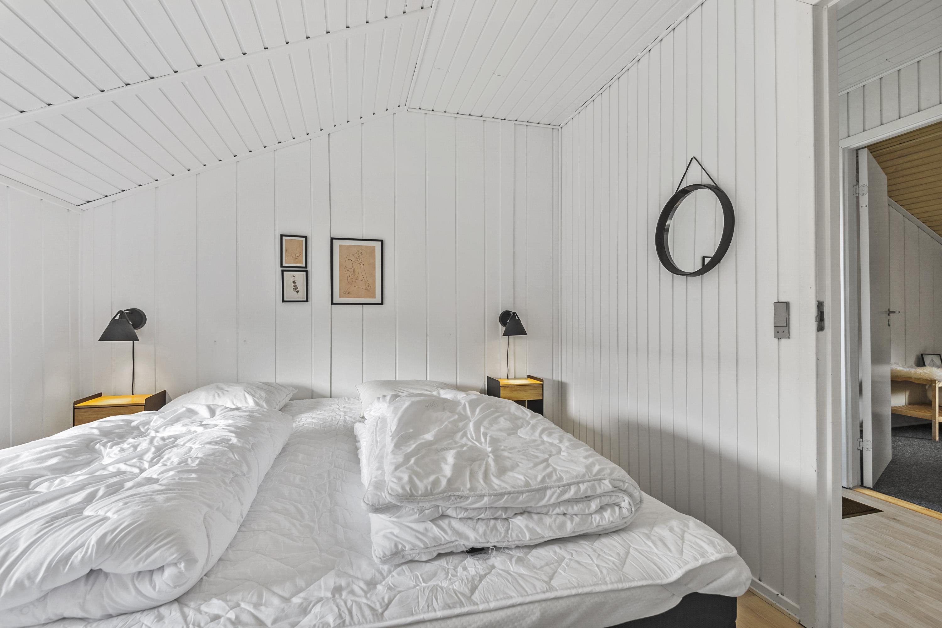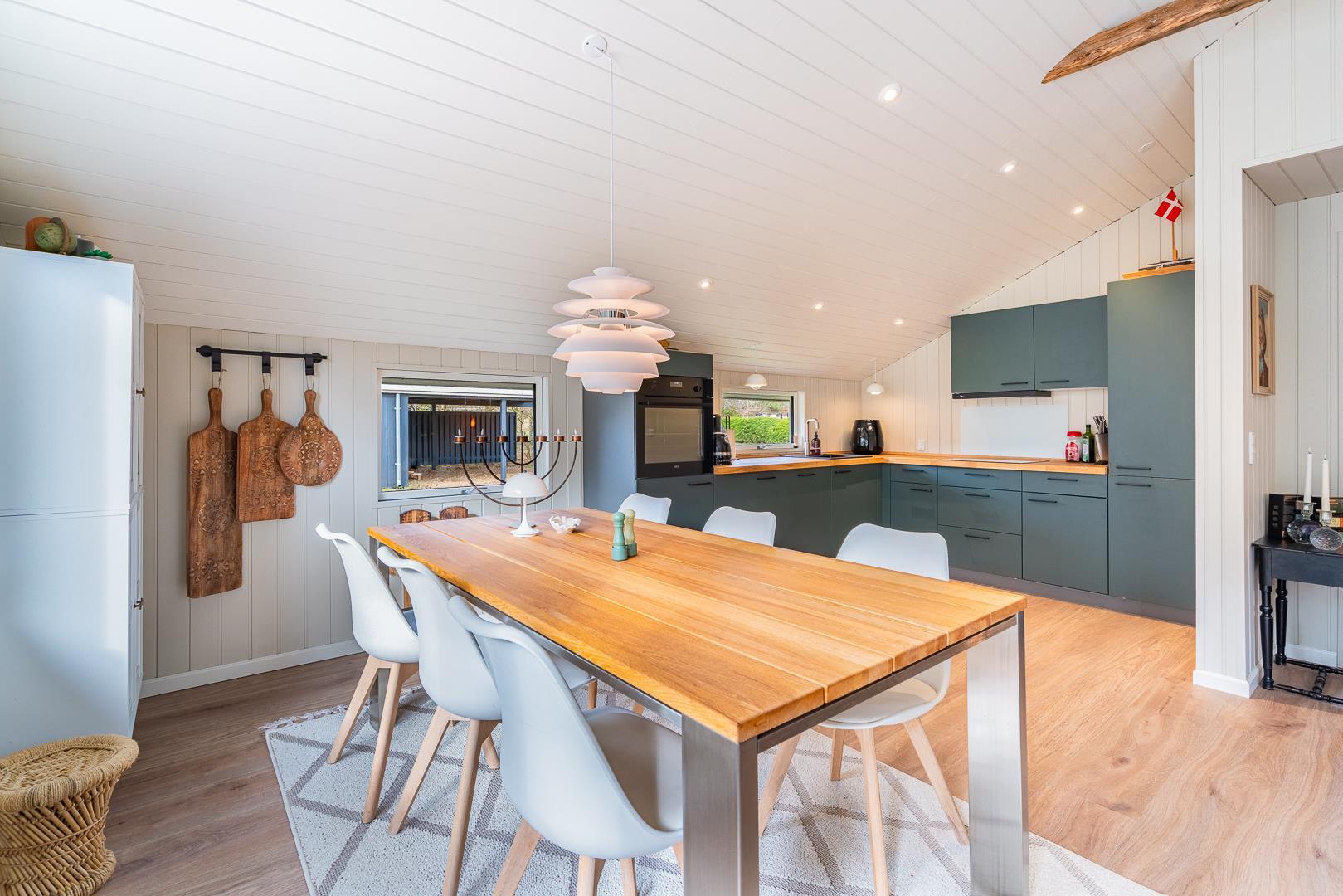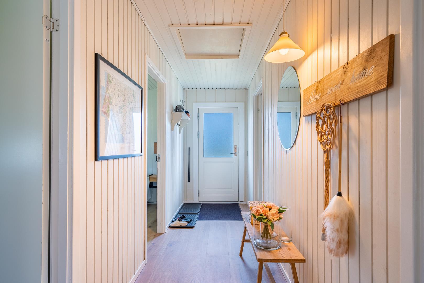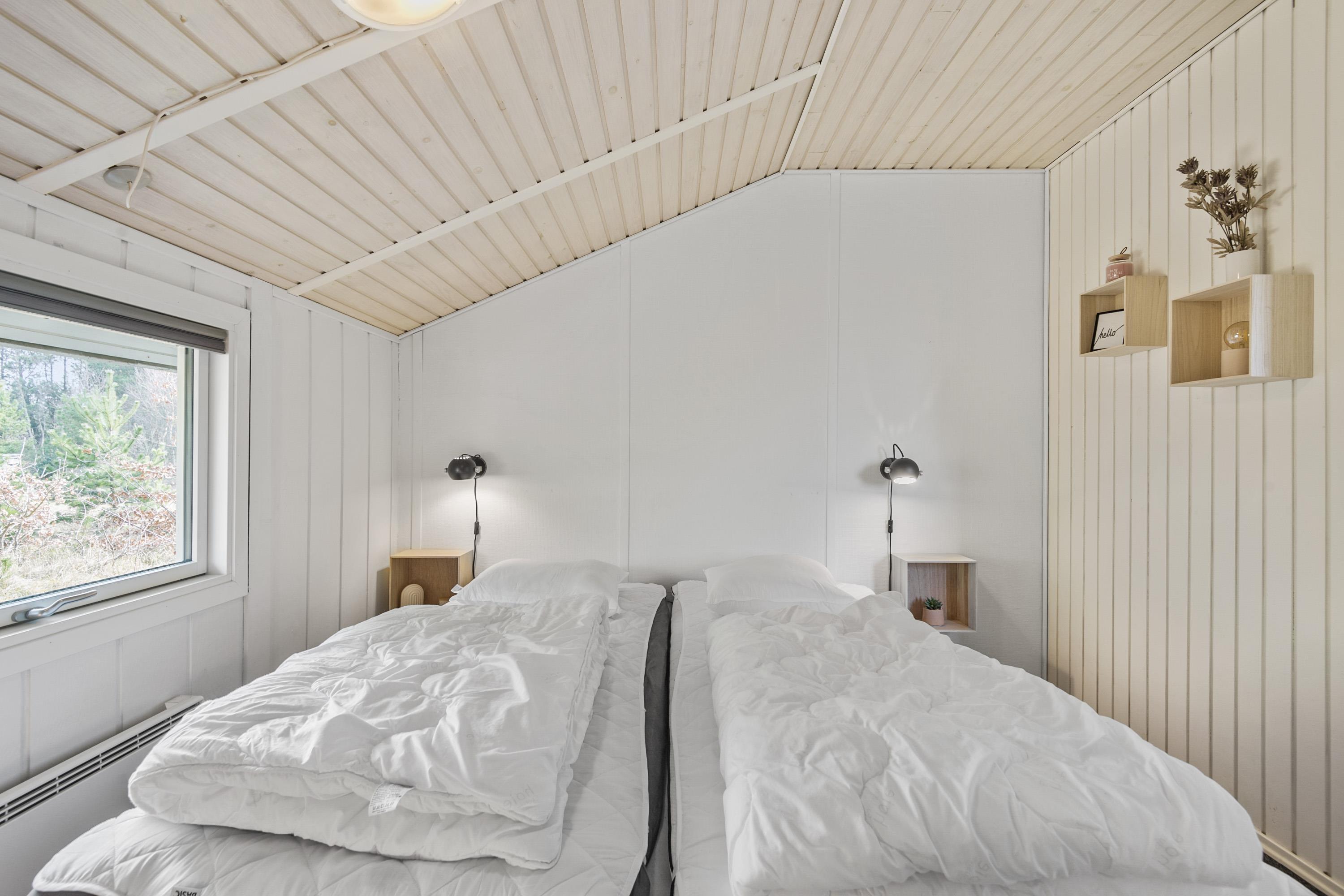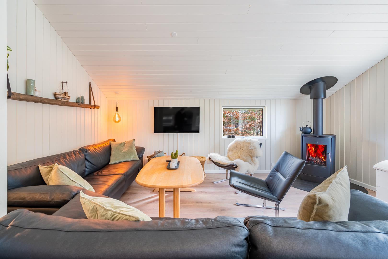 Huset der er til 6 personer, har 3 gode soverum ( to med dobbeltsenge og et med 2 enkeltsenge) er nyrenoveret i 2025 og har fået ny loft-vægbeklædning og et stort moderne køkken alrum. Stuen er hyggeligt indrettet med loft til kip og brændeovn. Der er direkte udgang til en overdækket terrasse fra køkken alrummet. I 2020 er der lavet et dejligt moderne badeværelse med bl.a.. vaskemaskine og tørretumbler.