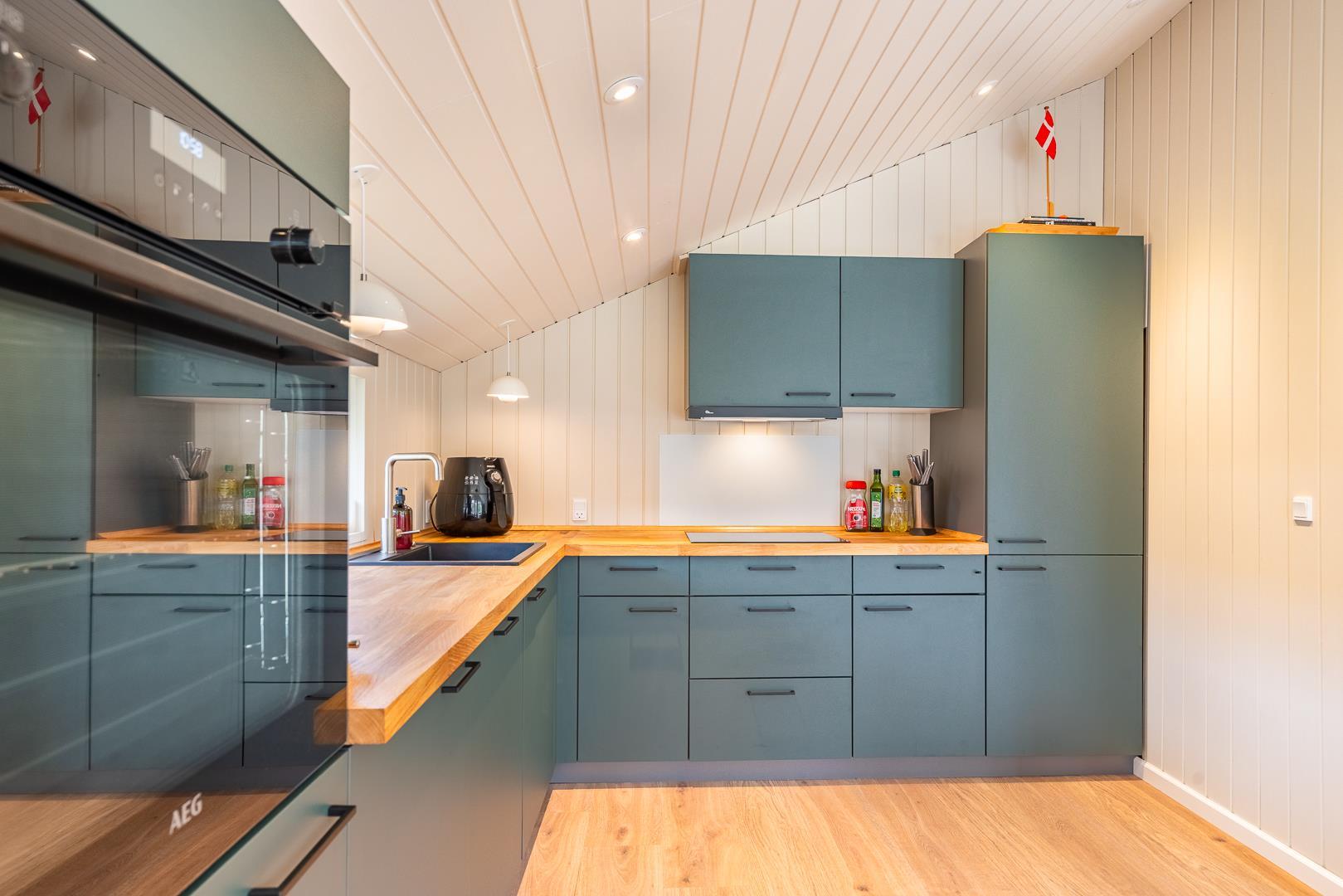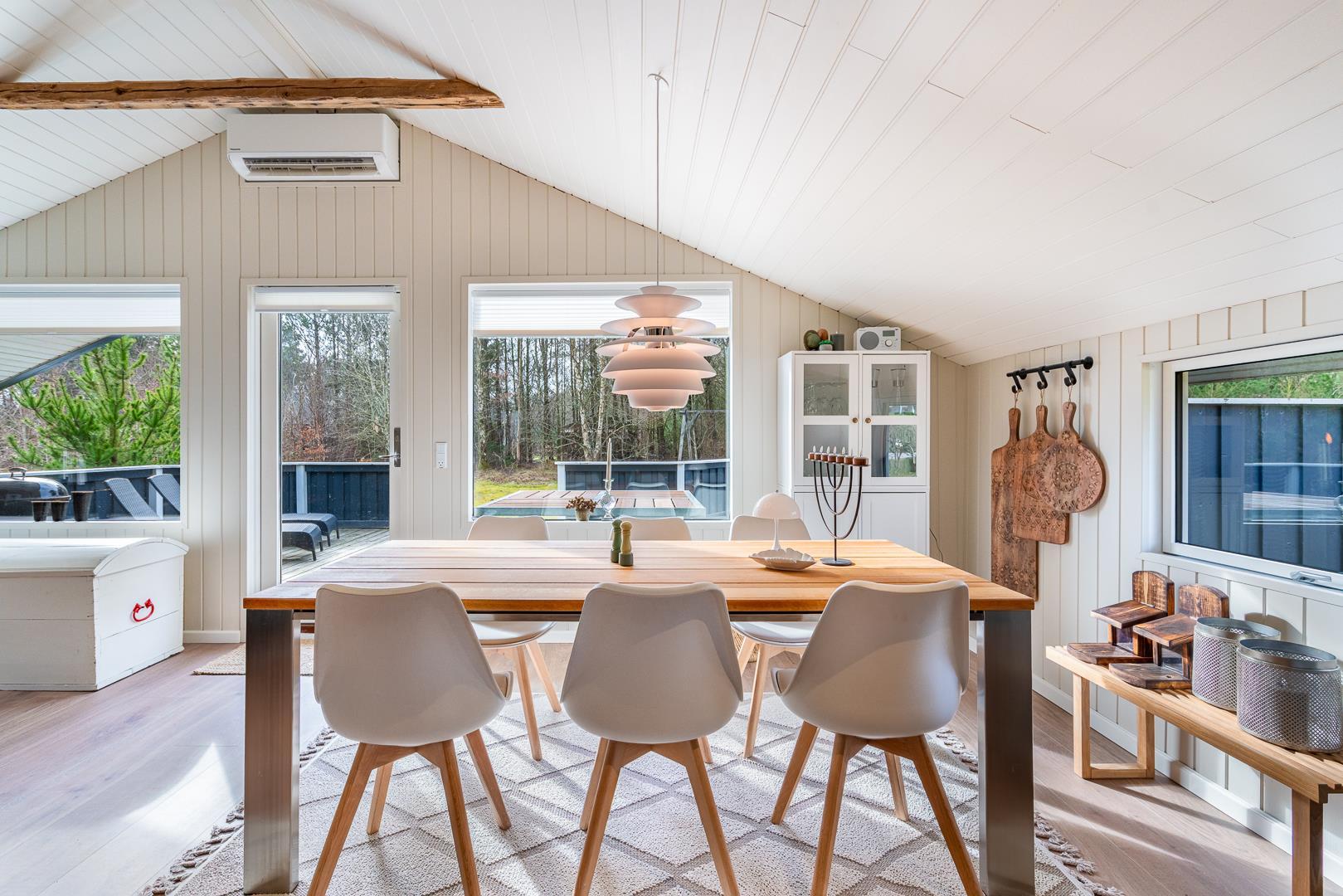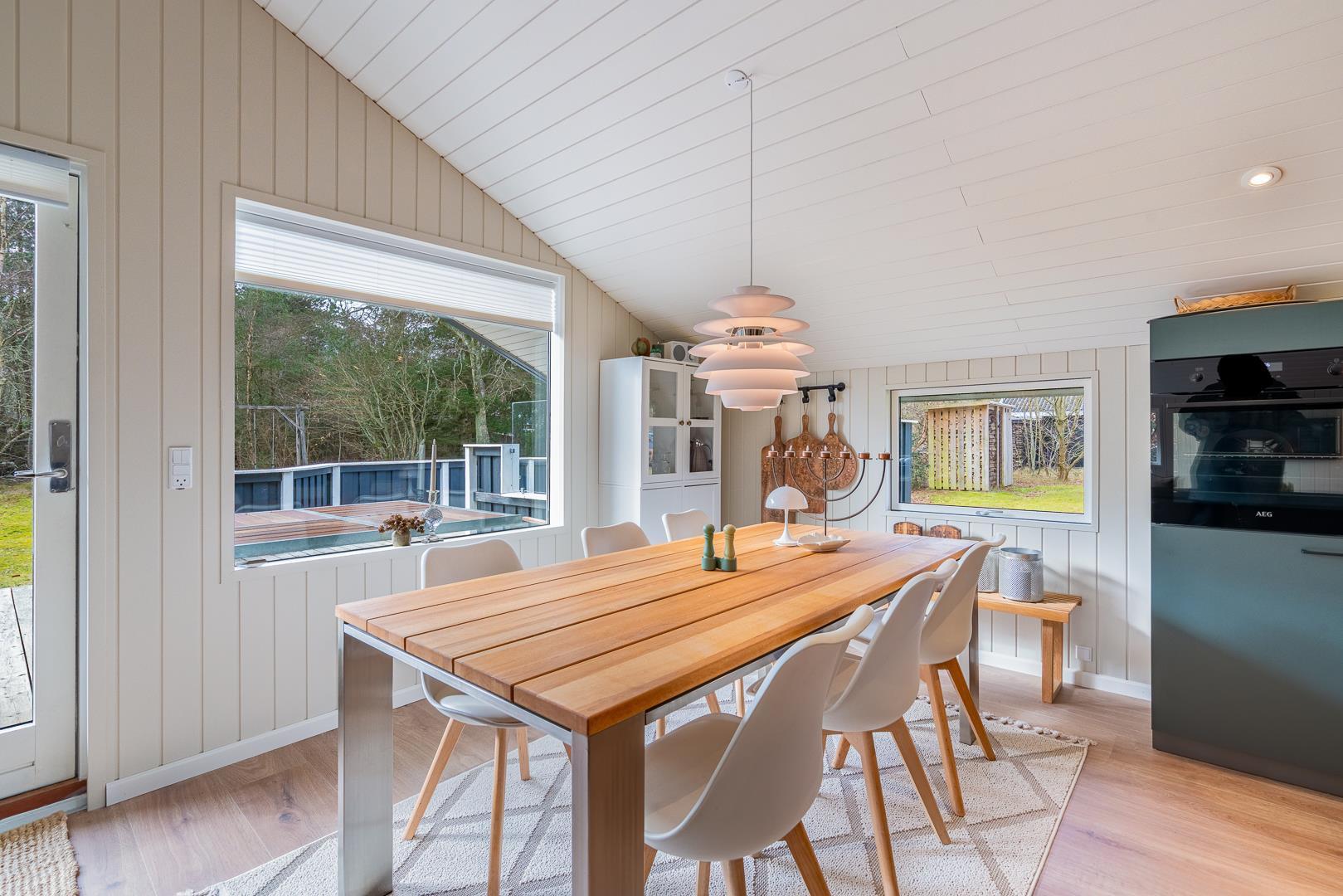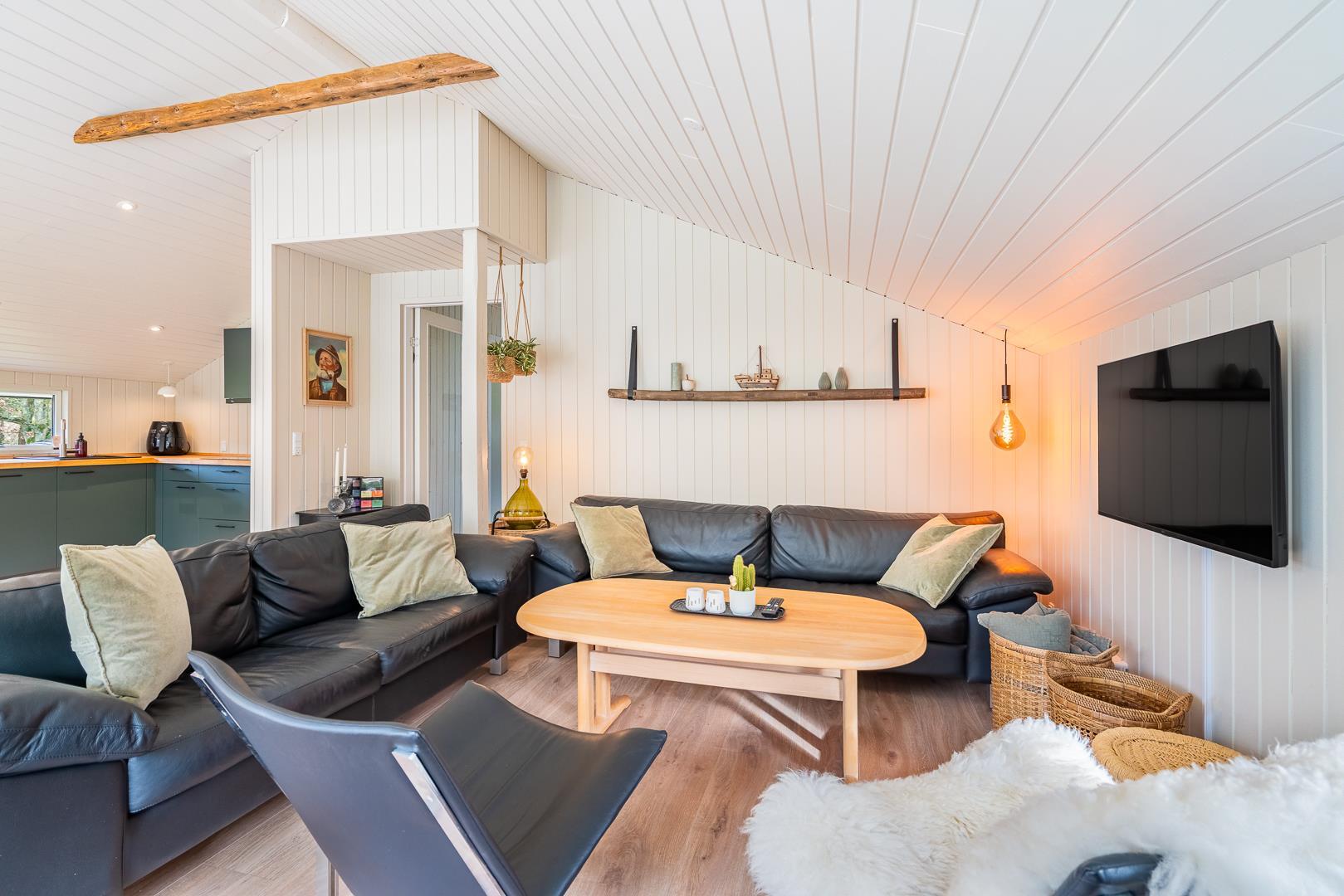 Huset der er til 6 personer, har 3 gode soverum ( to med dobbeltsenge og et med 2 enkeltsenge) er nyrenoveret i 2025 og har fået ny loft-vægbeklædning og et stort moderne køkken alrum. Stuen er hyggeligt indrettet med loft til kip og brændeovn. Der er direkte udgang til en overdækket terrasse fra køkken alrummet. I 2020 er der lavet et dejligt moderne badeværelse med bl.a.. vaskemaskine og tørretumbler.