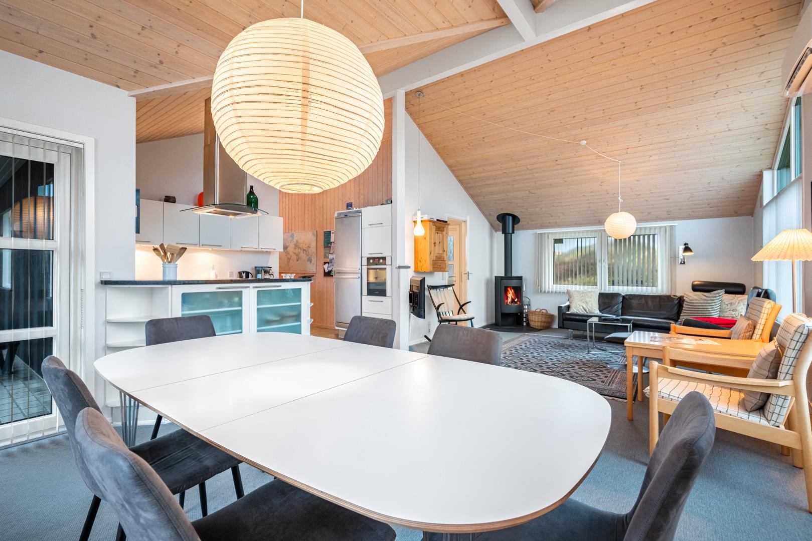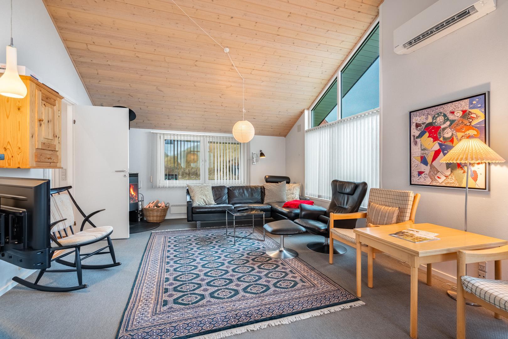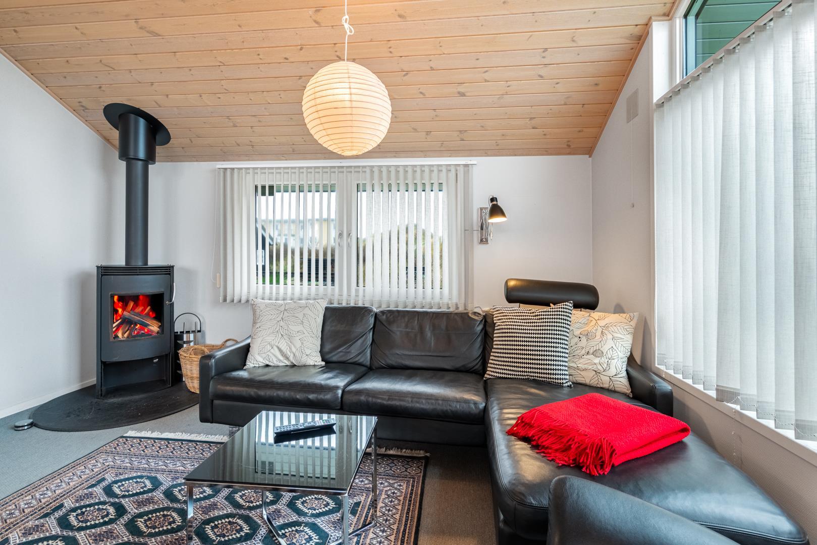 På 97 m² finder du alt, hvad du behøver til en afslappende ferie ved Vesterhavet. Sommerhuset er løbende moderniseret og fremstår lyst og indbydende, så du hurtigt vil føle dig hjemme. Det hyggelige opholdsrum med brændeovn er husets naturlige samlingspunkt – perfekt til afslappede aftener efter en dag ved Vesterhavet.