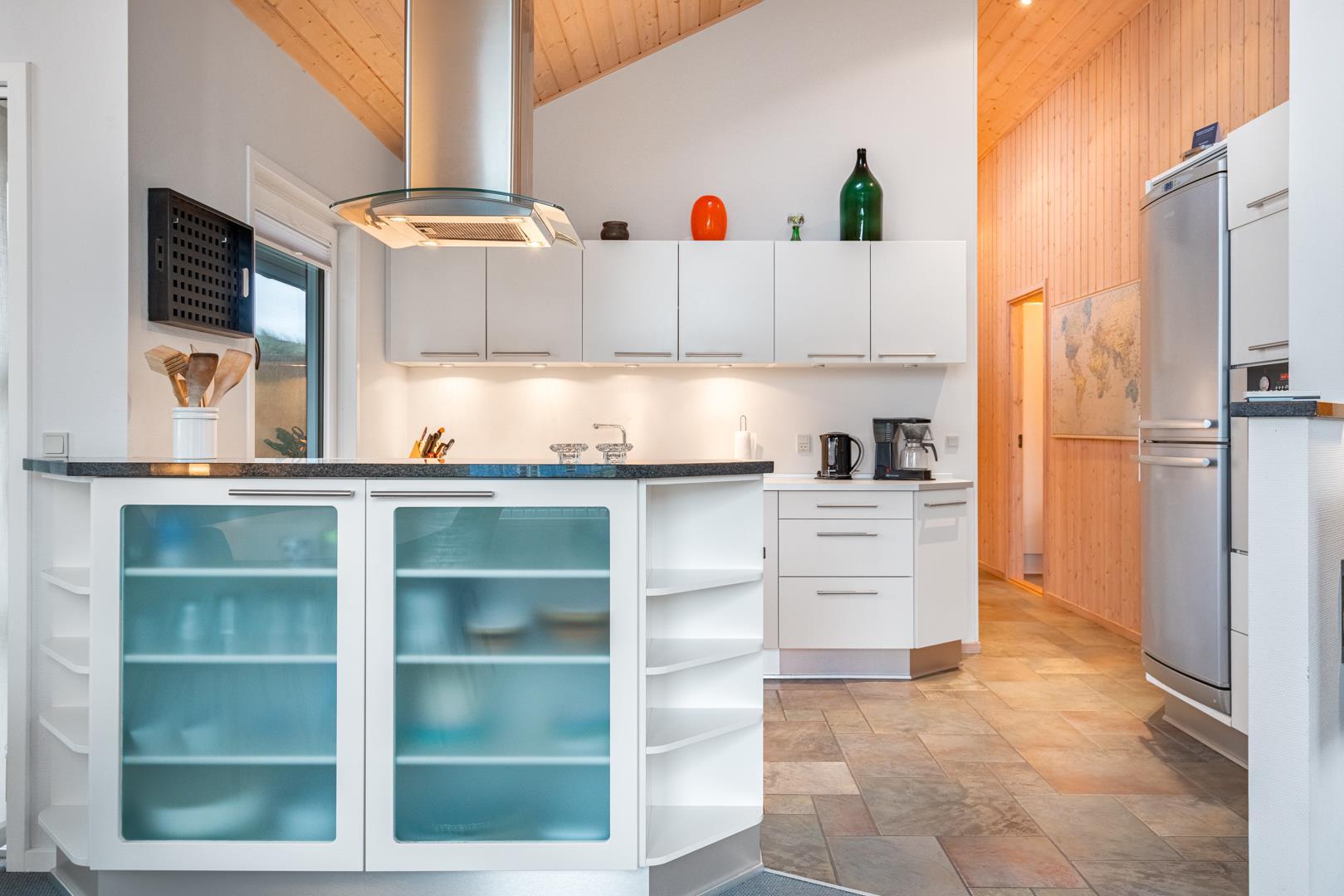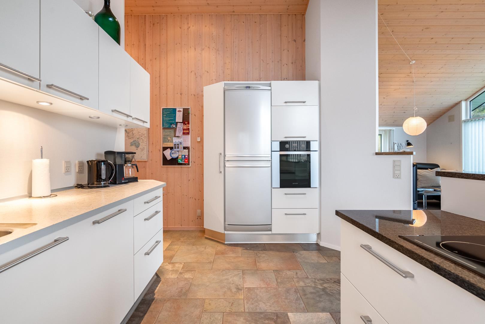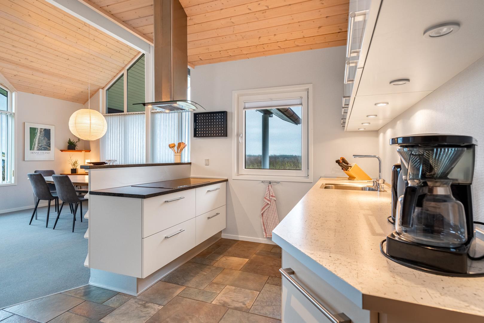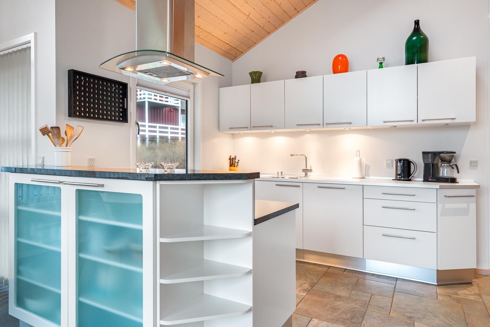 Det åbne køkken er integreret i stuen og har en moderne indretning. Med opvaskemaskine og gulvvarme får du både komfort og funktionalitet. Huset rummer i alt 3 soveværelser, så der er god plads til op til 6 personer.