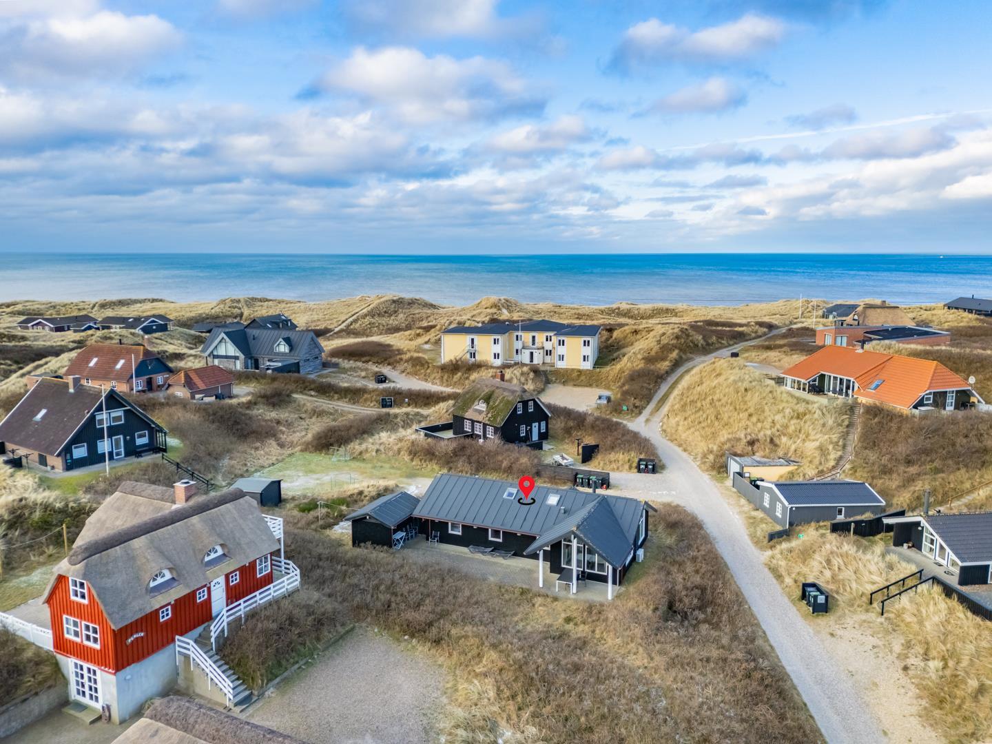 Kun ca. 200 meter fra sommerhuset ligger den brede sandstrand i Henne Strand. Her kan du bade, gå lange ture eller bare nyde Vesterhavet.