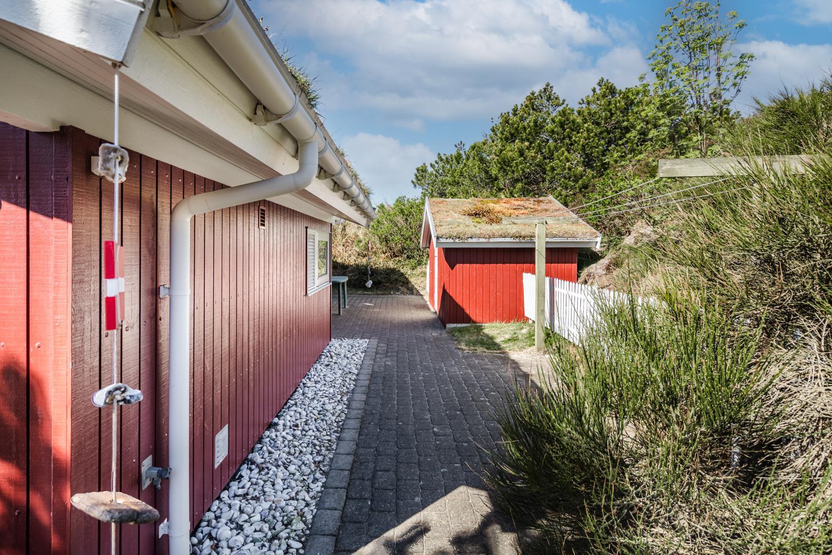 Til huset hører også et praktisk skur, perfekt til opbevaring af cykler eller andet udstyr.