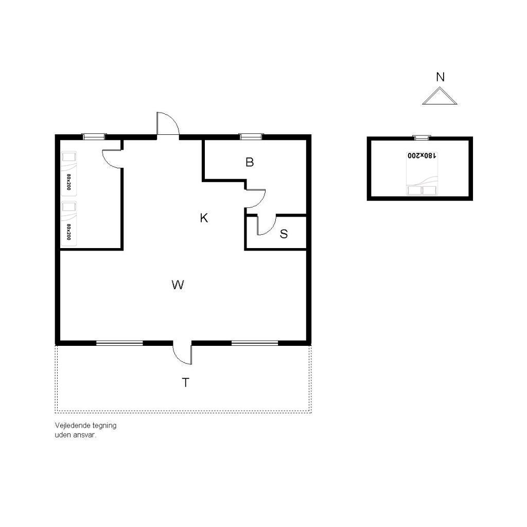 Sengestørrelser: 1 dobbeltseng 180 x 200 cm + 2 enkeltsenge 80 x 200 cm.