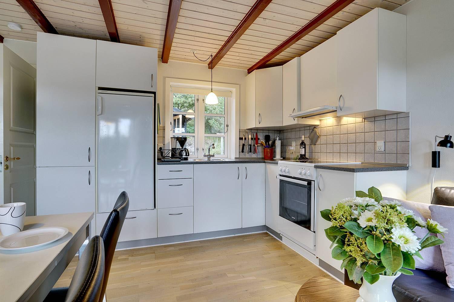 Et lille hyggeligt feriehus der er egnet for 2 personer eller den lille familie. Huset fremstår lyst og venligt og den høje beliggenhed give mulighed for en flot udsigt over området. Ferien kan også nydes på den ugenerede terrasse bag huset. Pga. af trapper op til huset er det ikke egnet for gangbesværede.