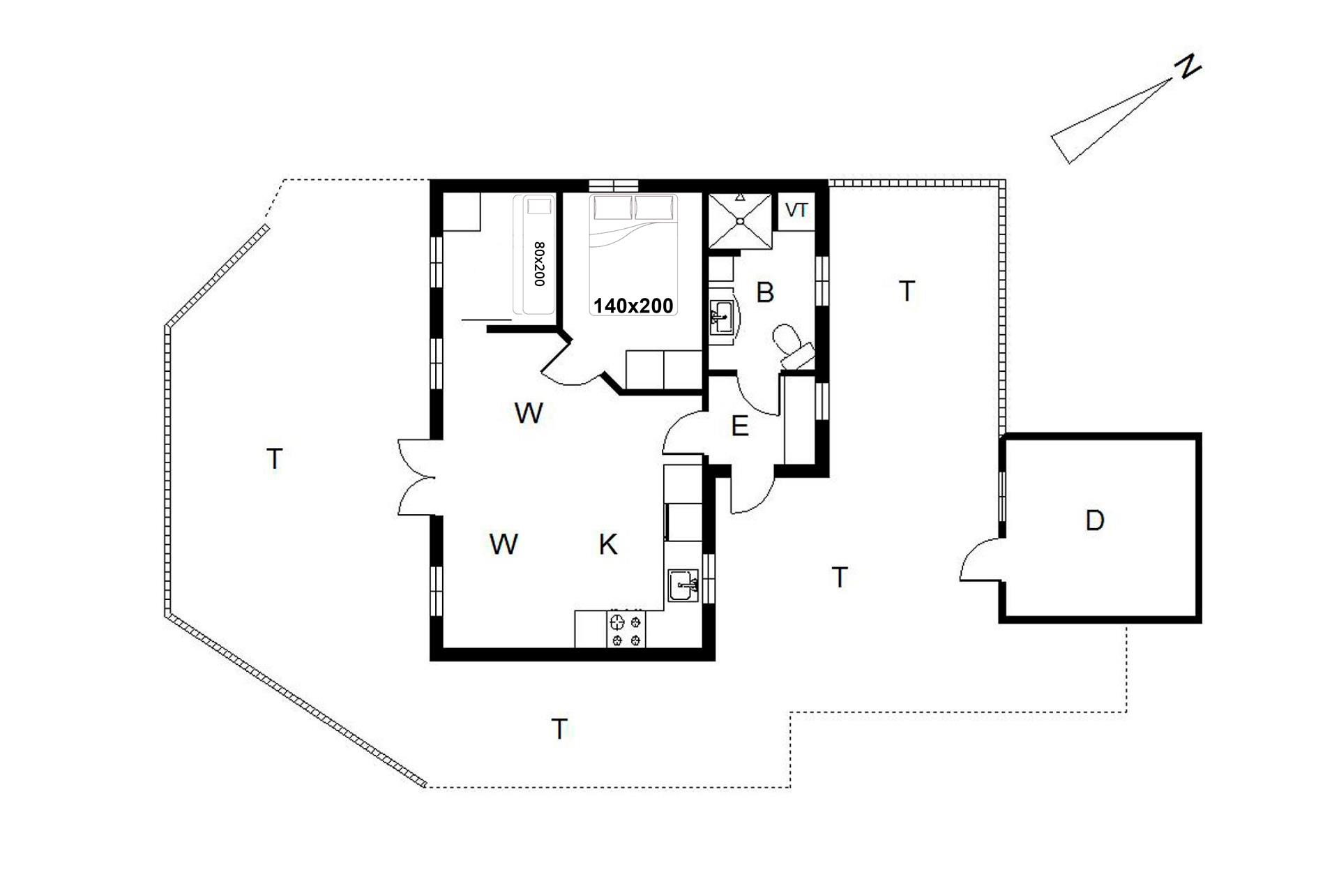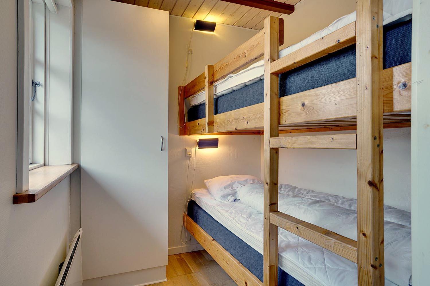 Sengestørrelse: 1 dobbeltseng 140 x 200 cm + 1 køjeseng 80 x 200 cm.