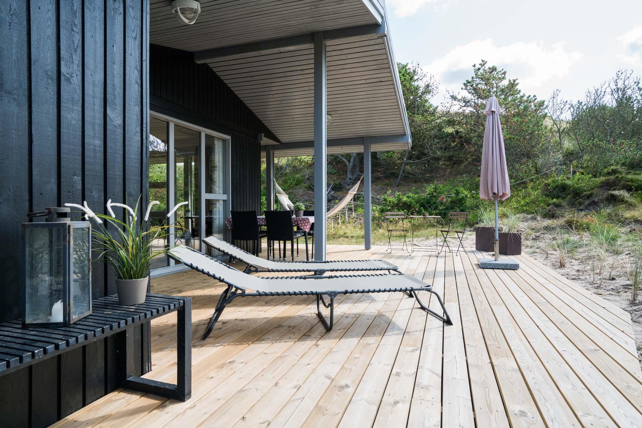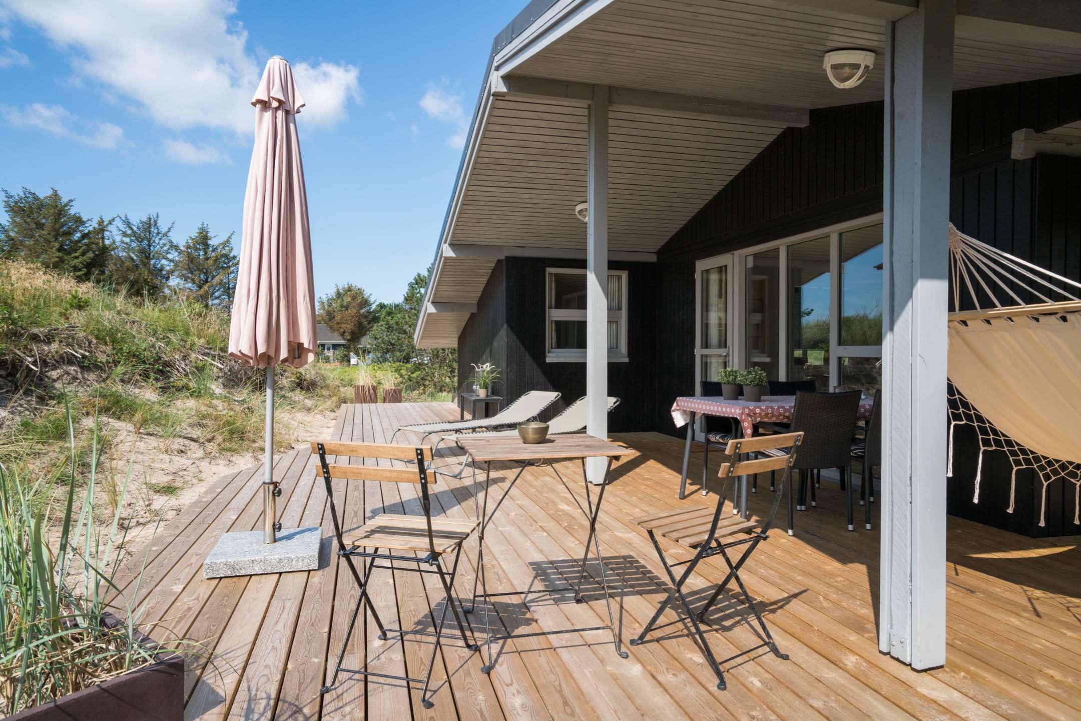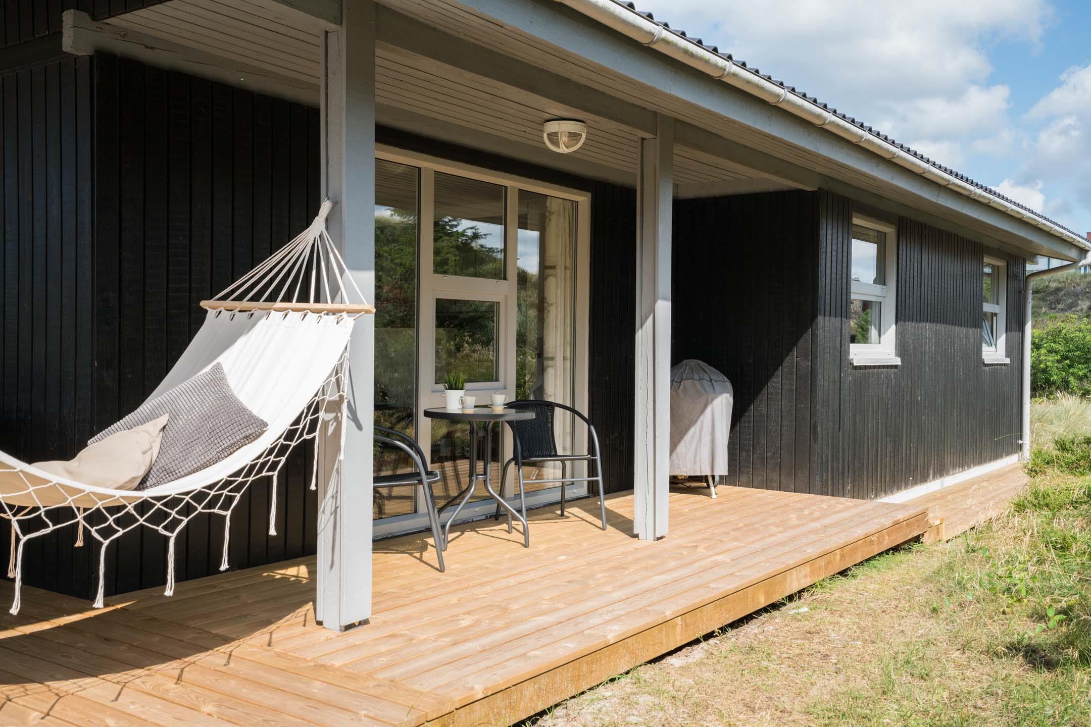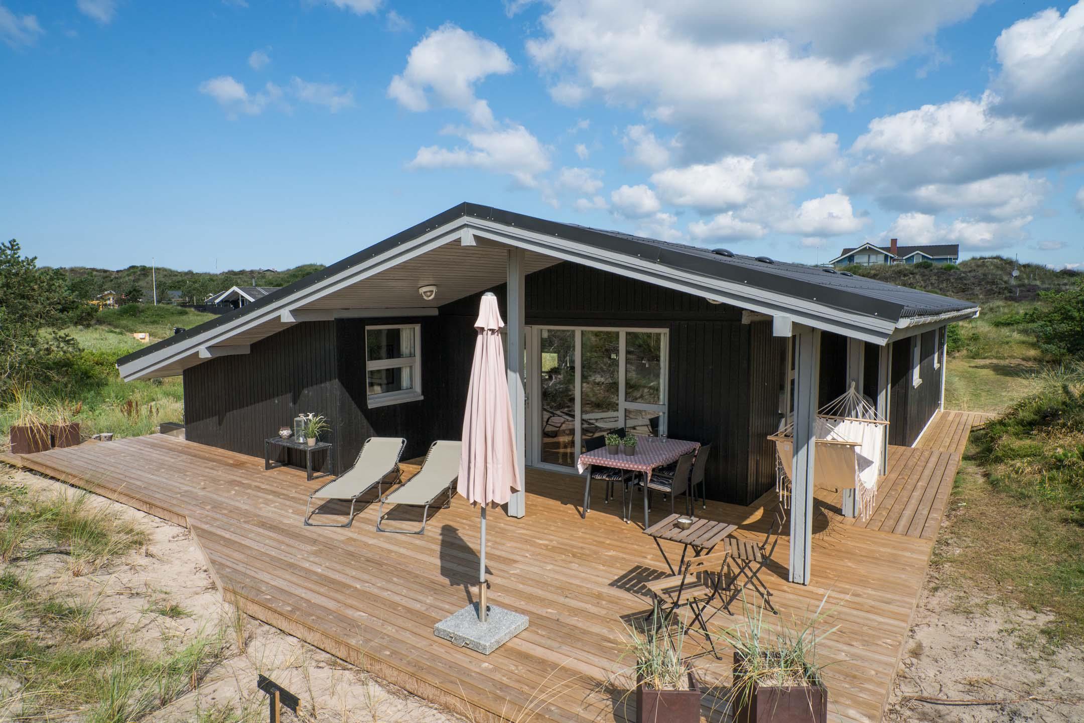 Velholdt feriehus tæt på Henne Strand med sauna, lukket terrasse og moderne faciliteter for en dejlig ferie ved Vesterhavet.
