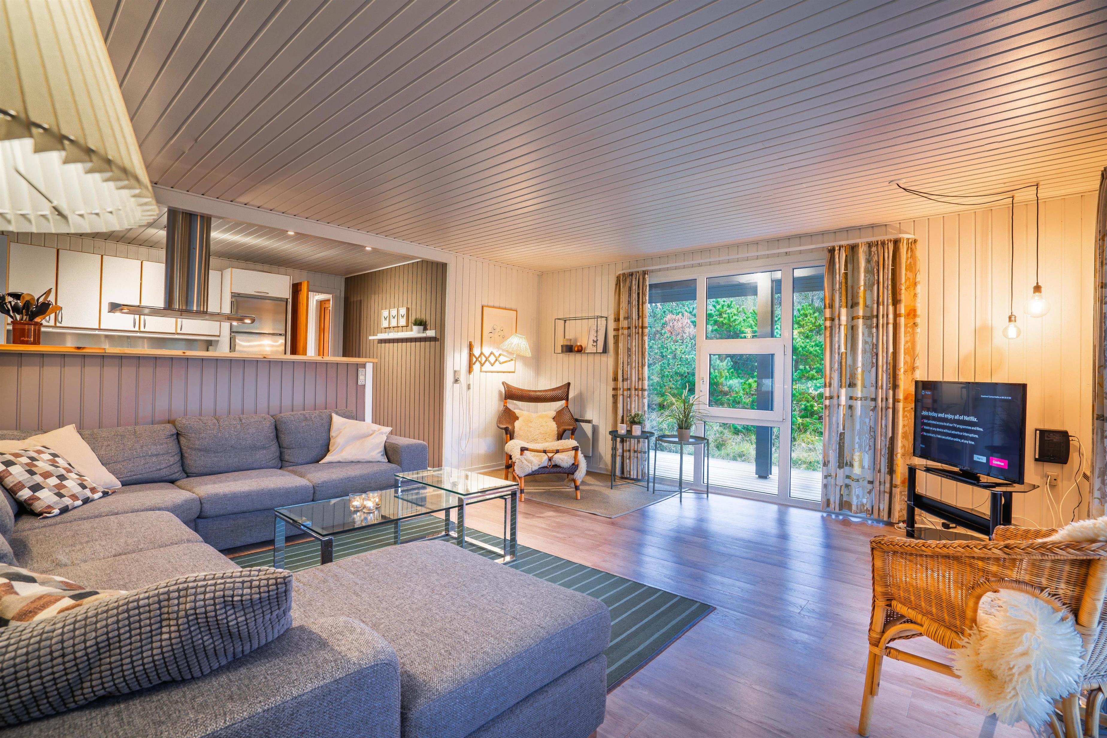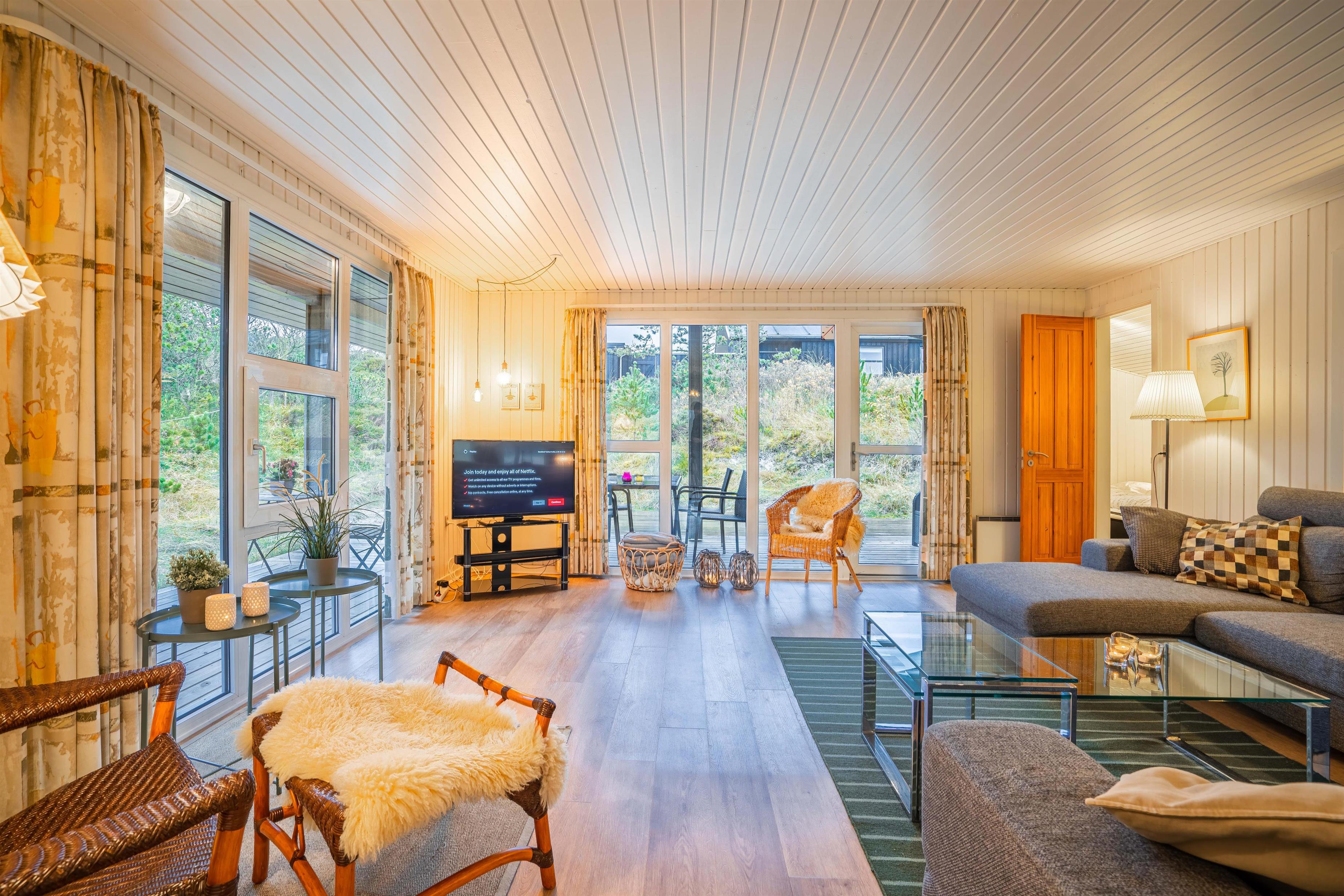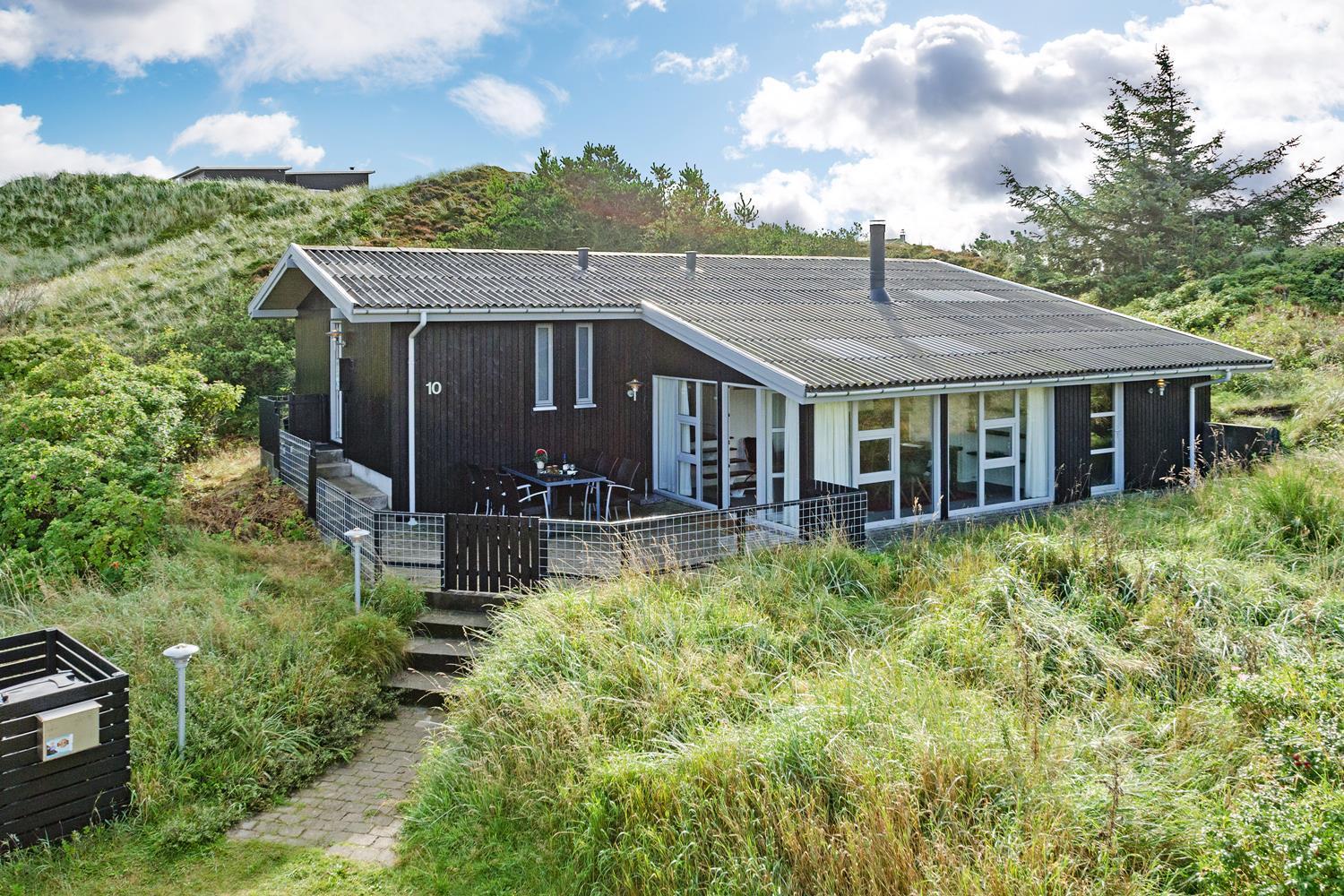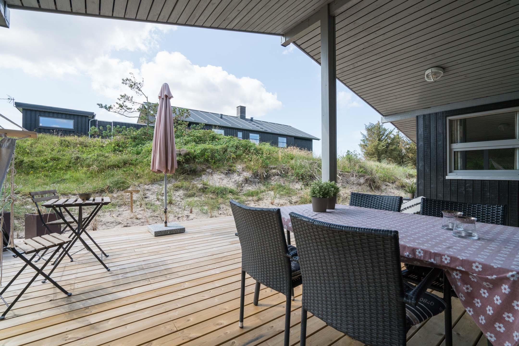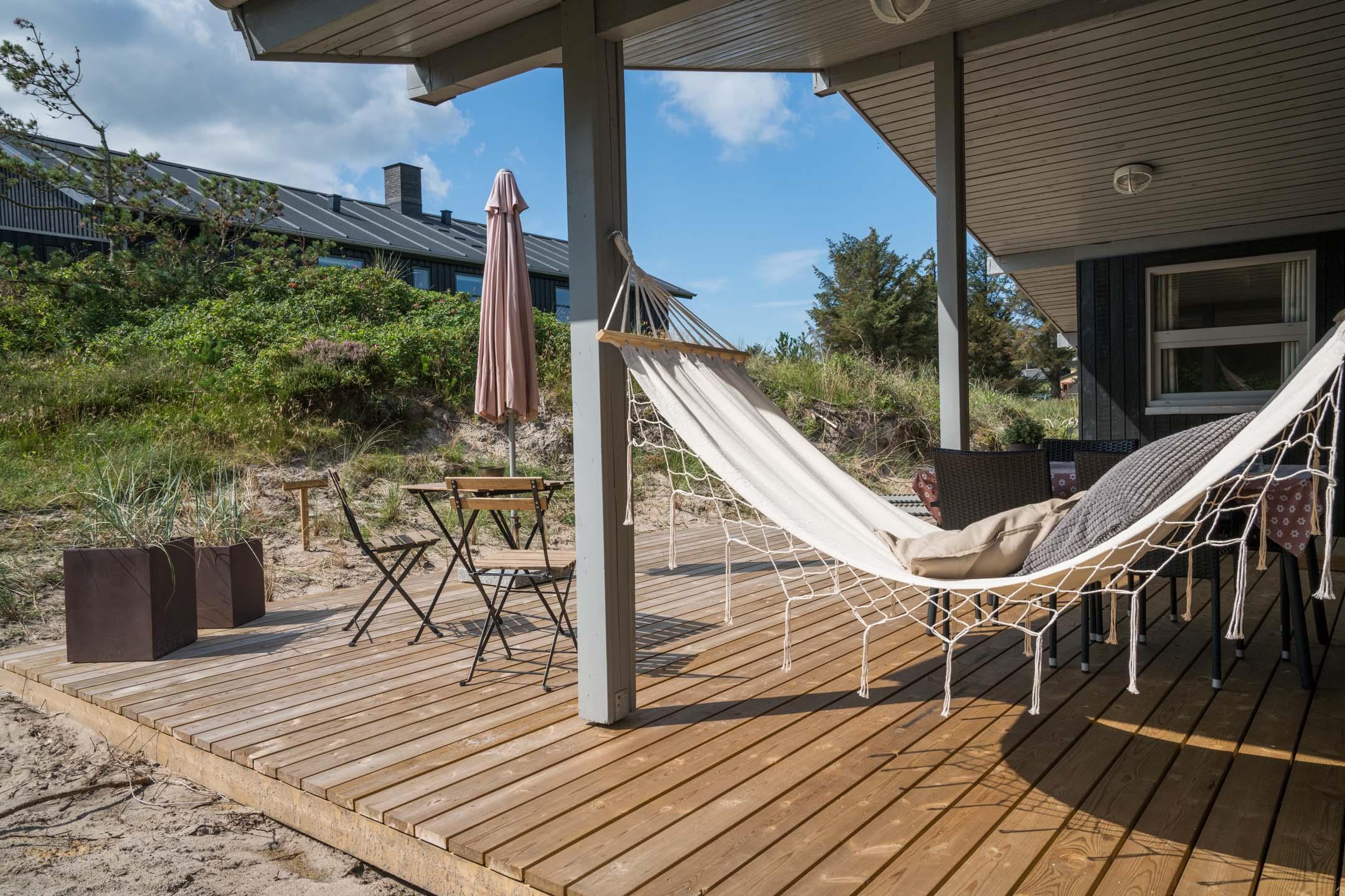 Velholdt feriehus tæt på Henne Strand med sauna, lukket terrasse og moderne faciliteter for en dejlig ferie ved Vesterhavet.