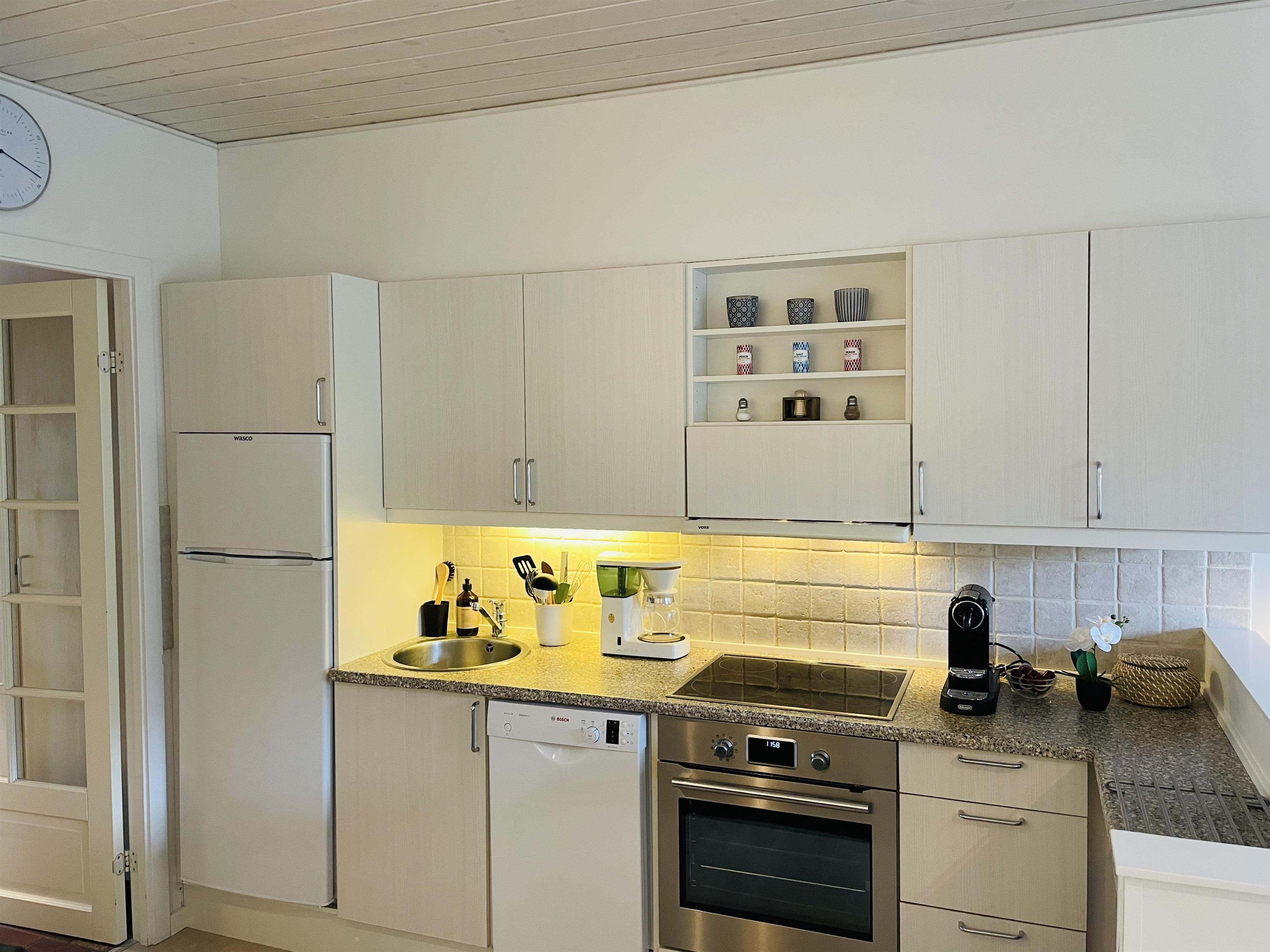 Nyd afslappende dage i vores hyggeligt indrettede ferielejlighed i stueetagen. Denne smukt indrettede ferielejlighed har plads til op til 4 personer og imponerer med en lys og venlig atmosfære. I den kombinerede stue med laminatgulv og fuldt udstyret køkken findes både læder- og polstermøbler. Sovesofaen kan slås ud, så der er plads til 2 personer. Kabel-tv med danske og tyske kanaler.