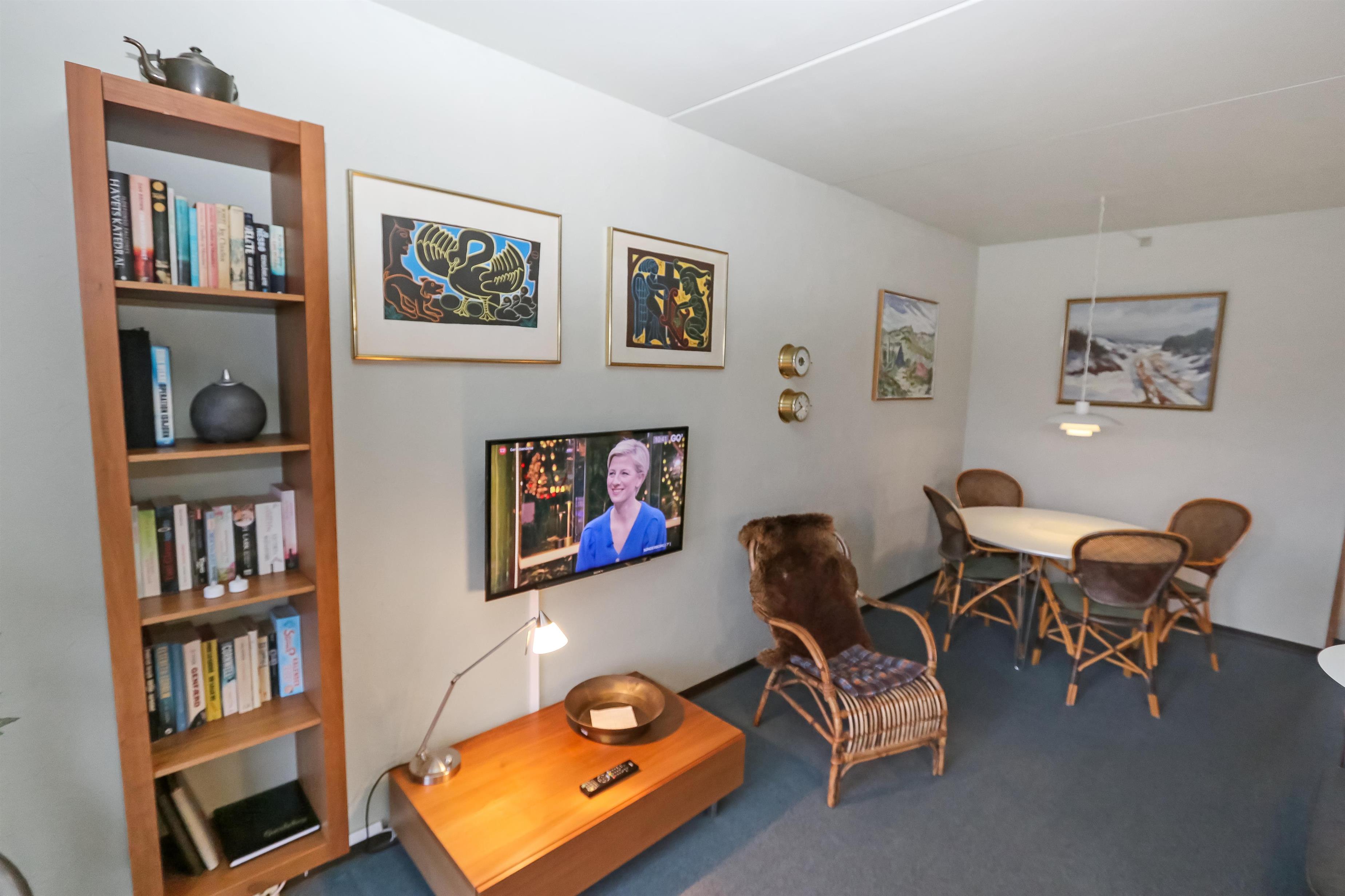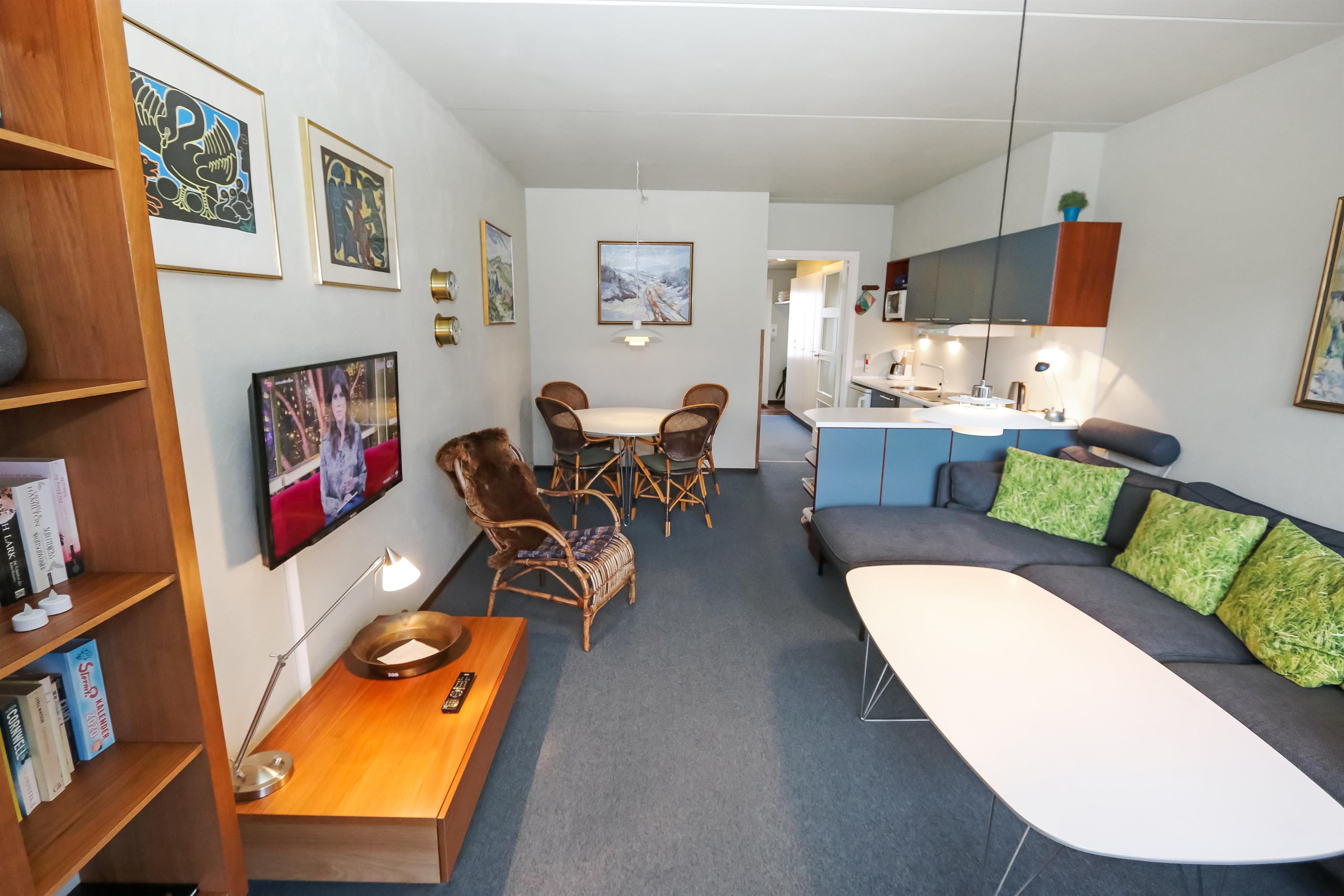 Pæn ferielejlighed til 2 personer beliggende på 1. sal med kombineret køkken og stue. Stuen er indrettet med polstermøbler, kabel-TV og gulvtæppe. Køkken med el-keramisk plade, lille opvaskemaskine, lille miniovn, køleskab med 10 l frostboks, emhætte. 1 soverum: 1DS + 1S og gulvtæppe. Badeværelse med toilet, håndvask og bruser. Fra stuen er der udgang til en lille delvis overdækket balkon med havemøbler. Trappen til 1. sal består af 21 trappetrin.