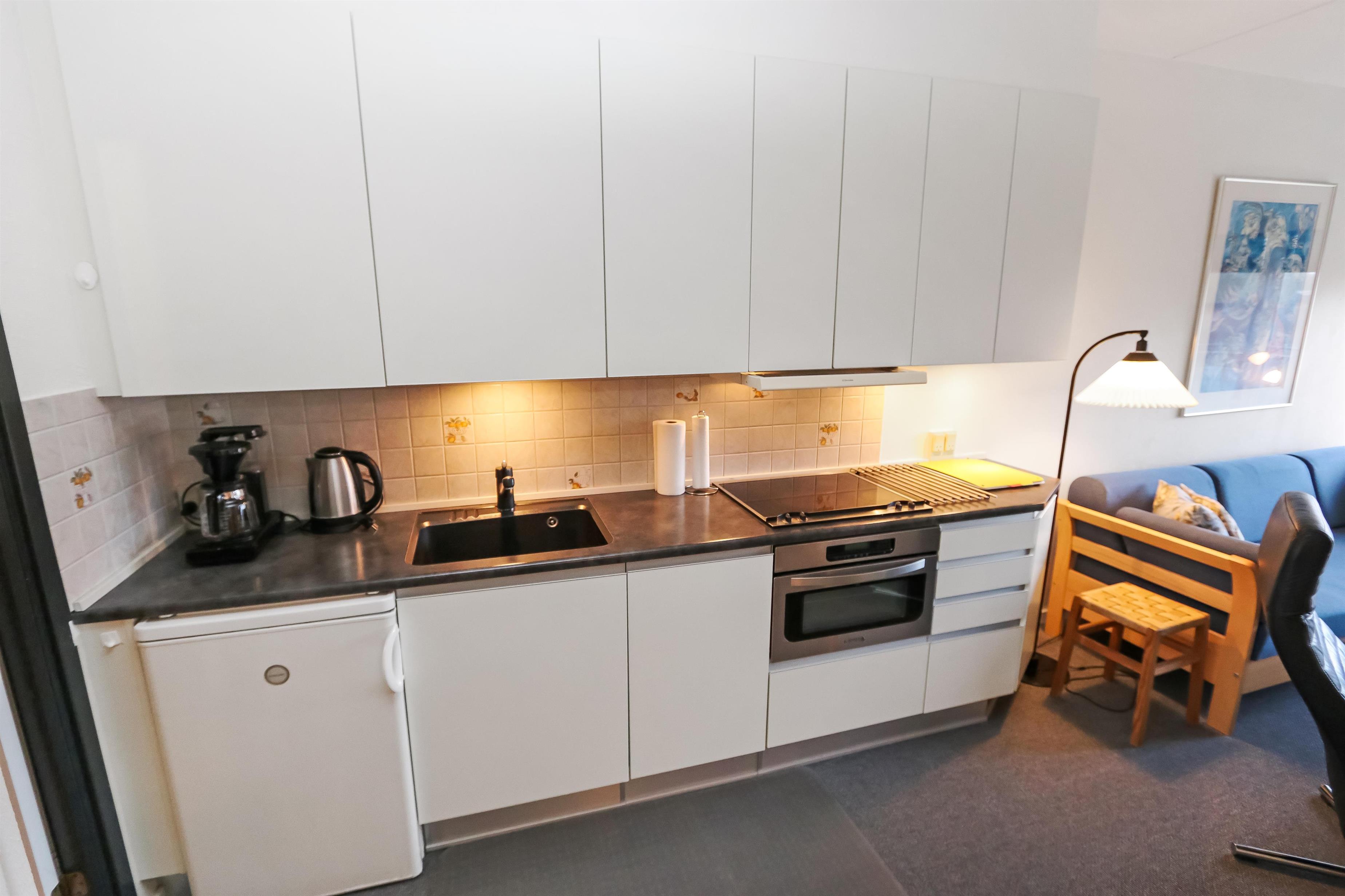 Ferielejlighed til 2 personer på 1. sal. Kombineret køkken og stue med gulvtæppe. Stuen er indrettet med polster og lædermøbler samt kabel-TV. Køkken med køleskab med 10 l frostboks, opvaskemaskine, el-keramisk komfur, emhætte. 1 soverum: 2S og trægulv. Badeværelse med toilet, håndvask og bruser. Fra stuen er der udgang til lille delvis overdækket balkon med havemøbler. Trappen til 1. sal består af 21 trappetrin.