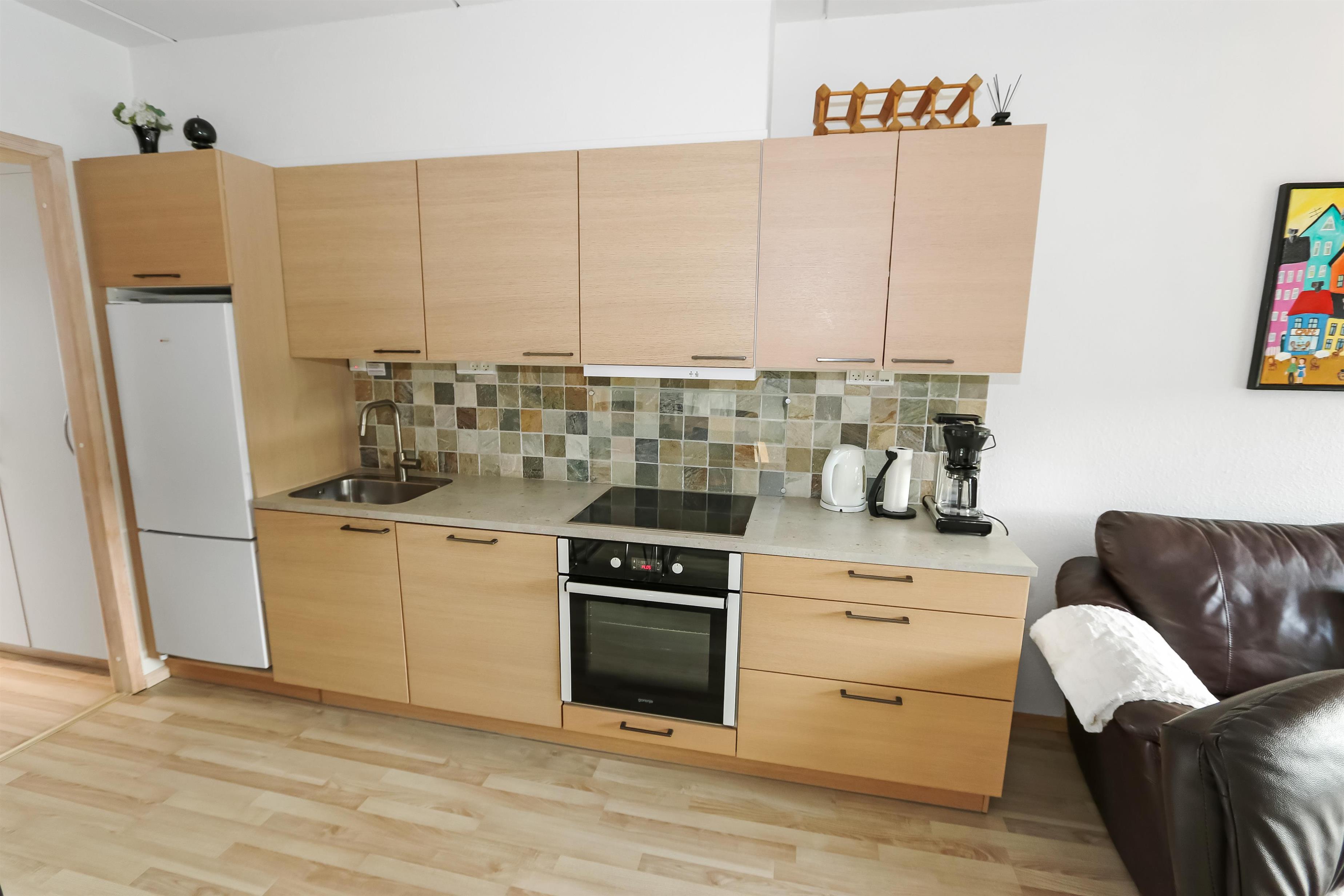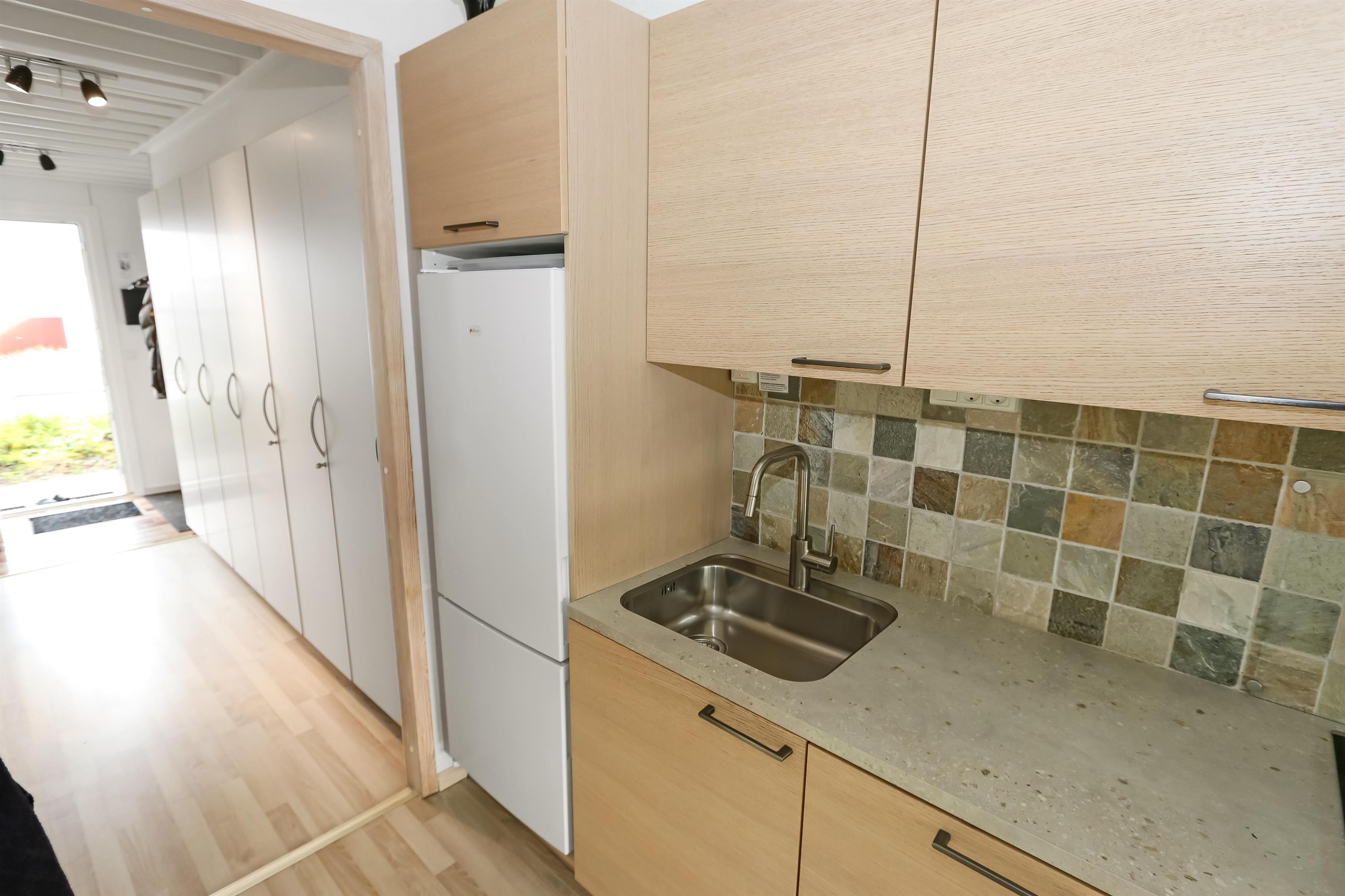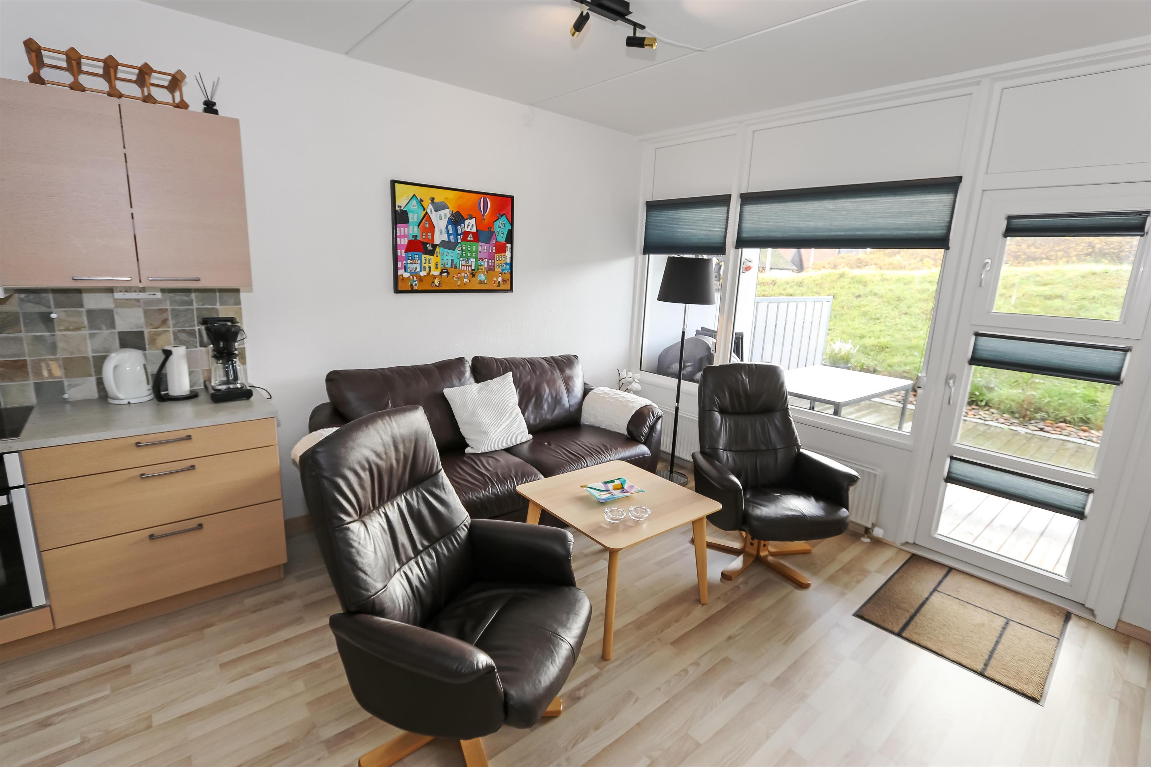 Pæn og moderne indrettet ferielejlighed til 2 voksne personer. Stue med lædermøbler, kabel-TV, trægulv. Køkkenafdeling med glaskeramisk komfur, køle/fryseskab, opvaskemaskine og trægulv. Badeværelse med toilet, håndvask og bruser. 1 soverum: 2S med trægulv. Fra stuen er der udgang til delvis overdækket terrasse med havemøbler.