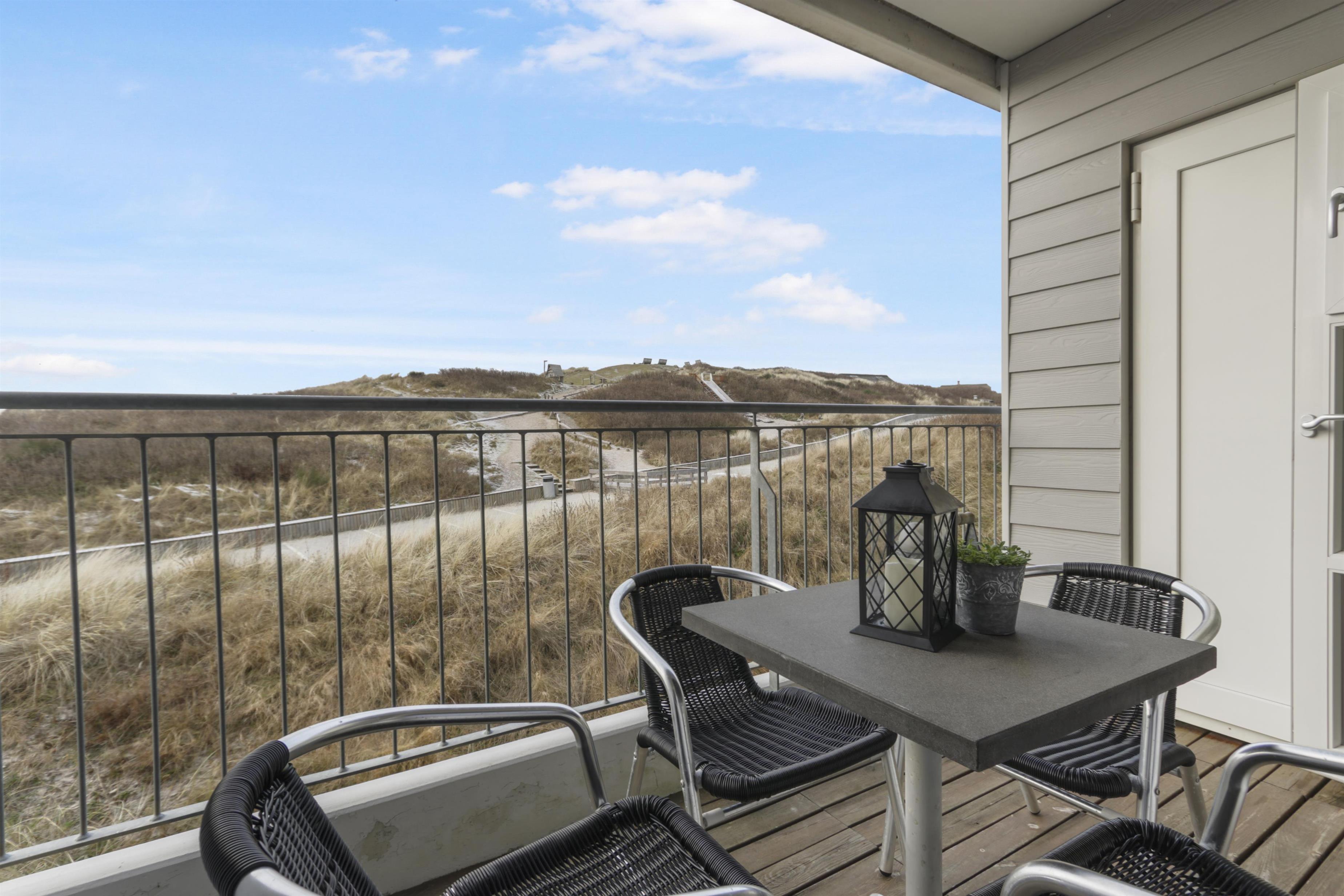 Fra stuen er der udgang til overdækket balkon med havemøbler og fin udsigt over klitterrænet. Trappen til 1. sal består af 16 trappetrin.