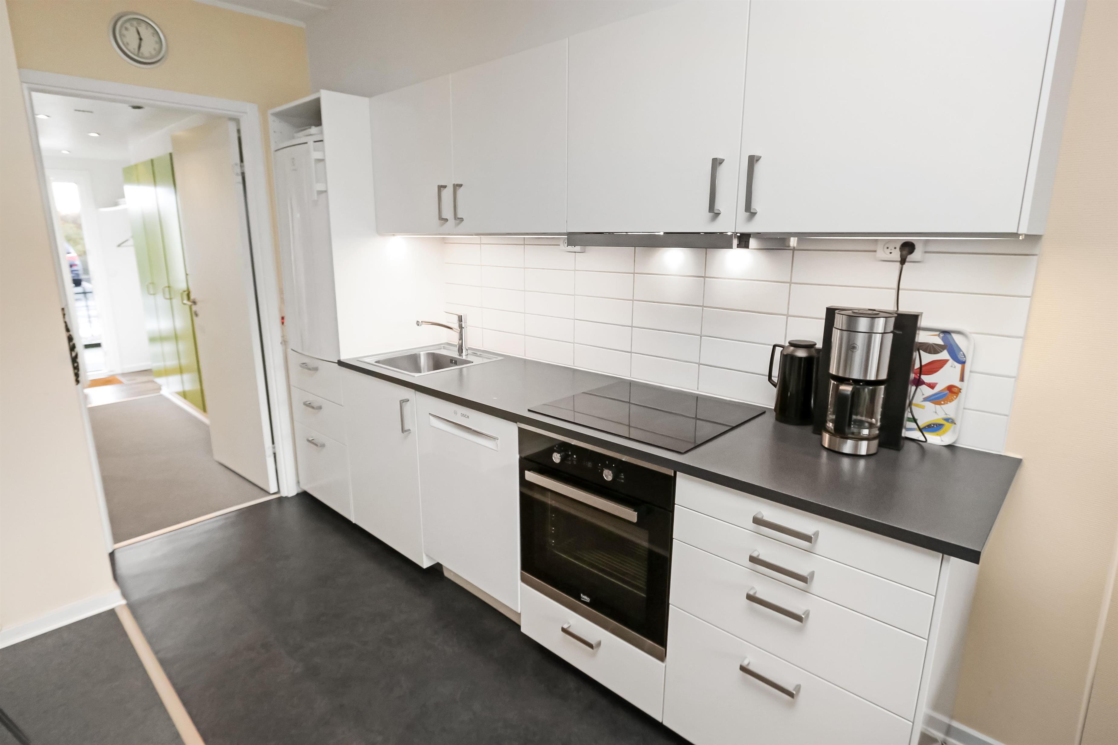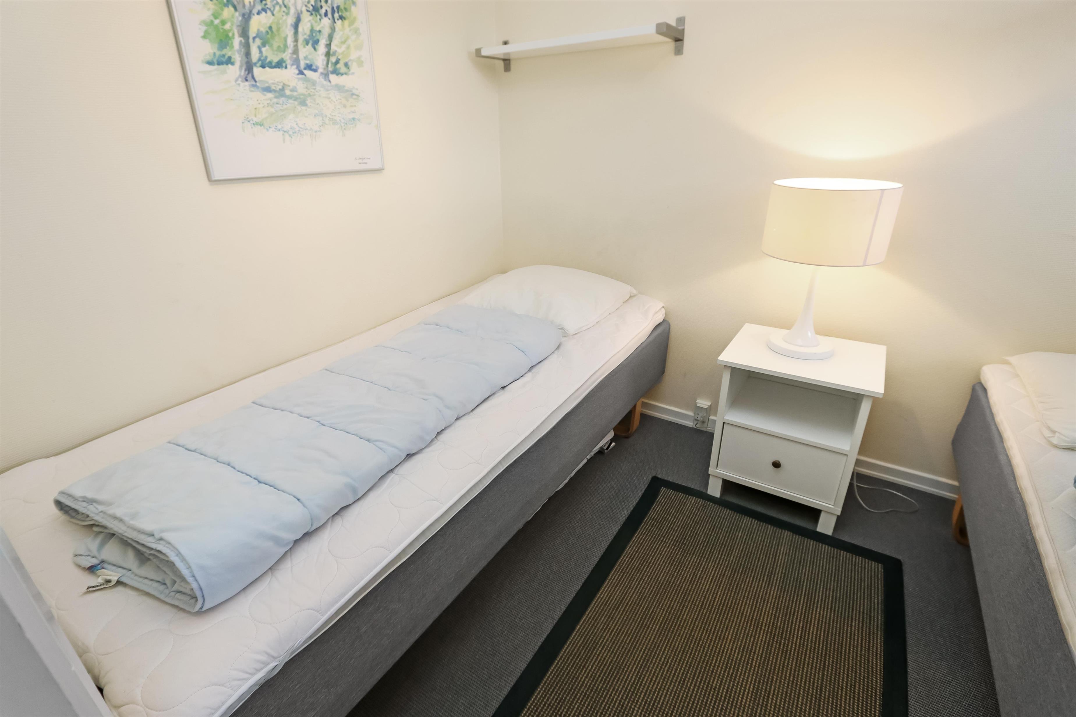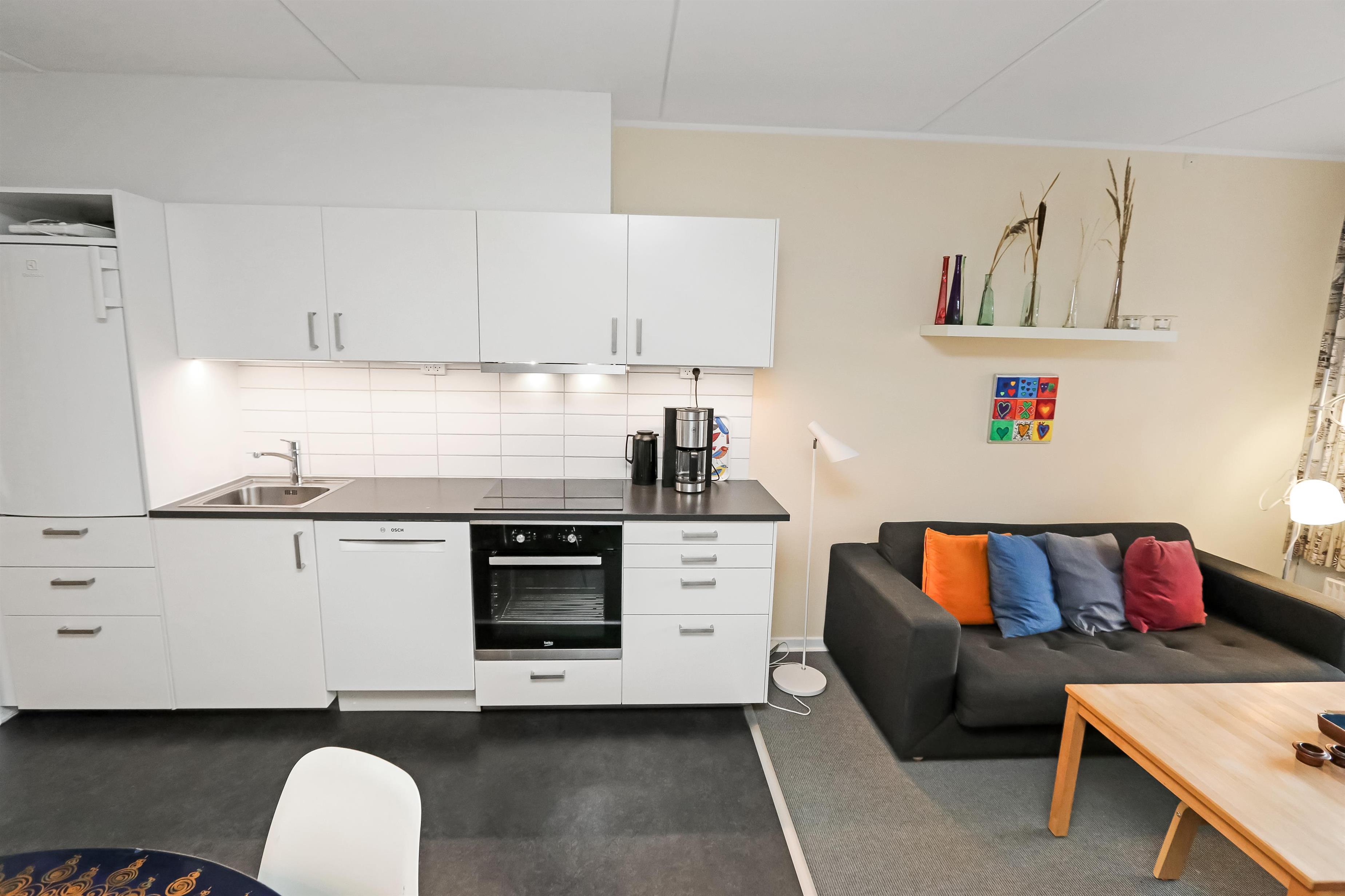 Pænt og hyggelig indrettet ferielejlighed med lille delvis overdækket og indhegnet terrasse med havemøbler. Kombineret køkken og opholdsstue. Køkkenet er indrettet med glaskeramisk komfur, emhætte, køleskab med lille frostbox og opvaskemaskine, der er linolium på gulvet. Hyggelig stue med læder og polstermøbler, kabel-TV, gulvtæppe. Sofaen i stuen kan slåes ud så der bliver 2 sovepladser. Badeværelse med toilet, håndvask og bruser. 1 Soverum: 1DS og 1S samt gulvtæppe.