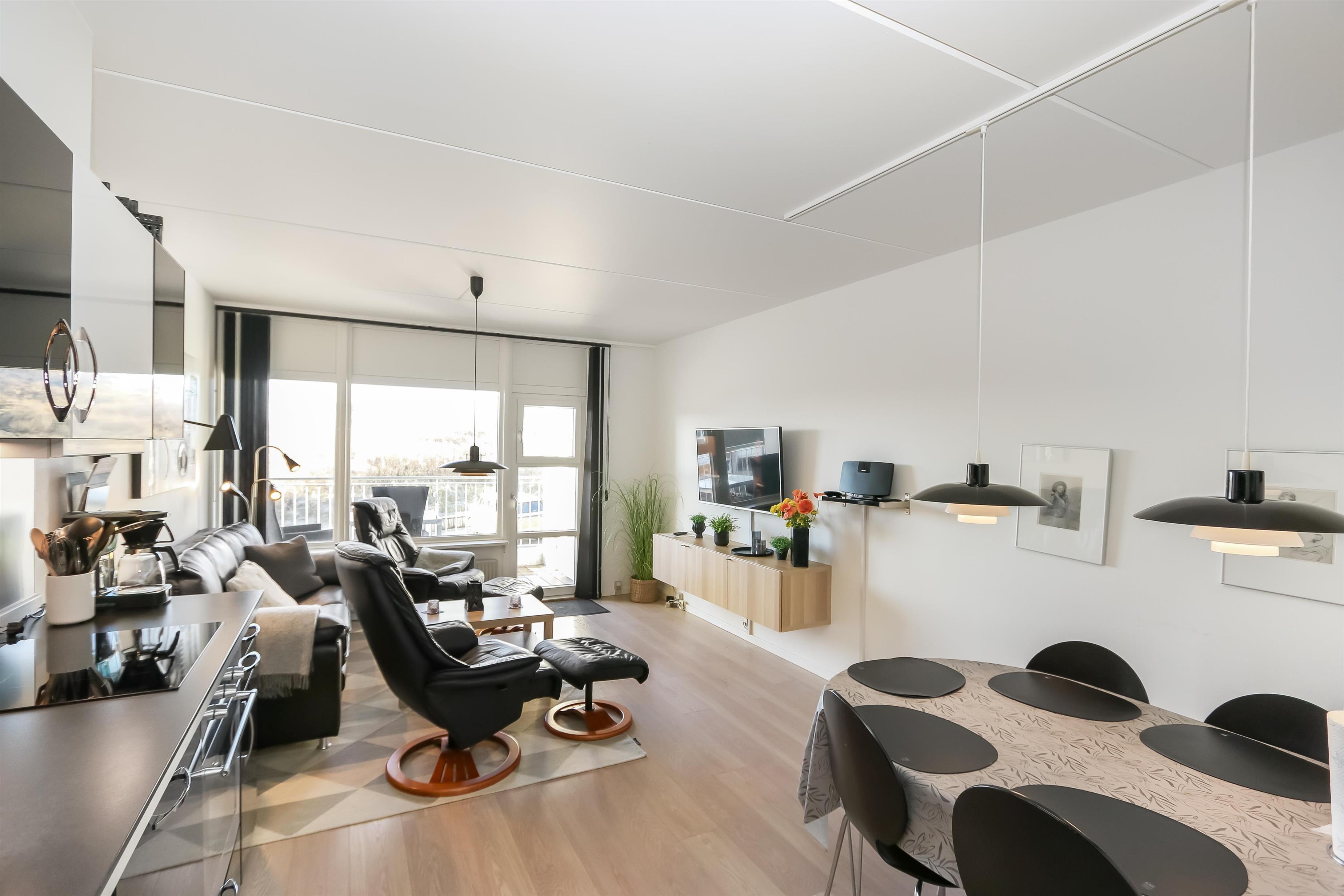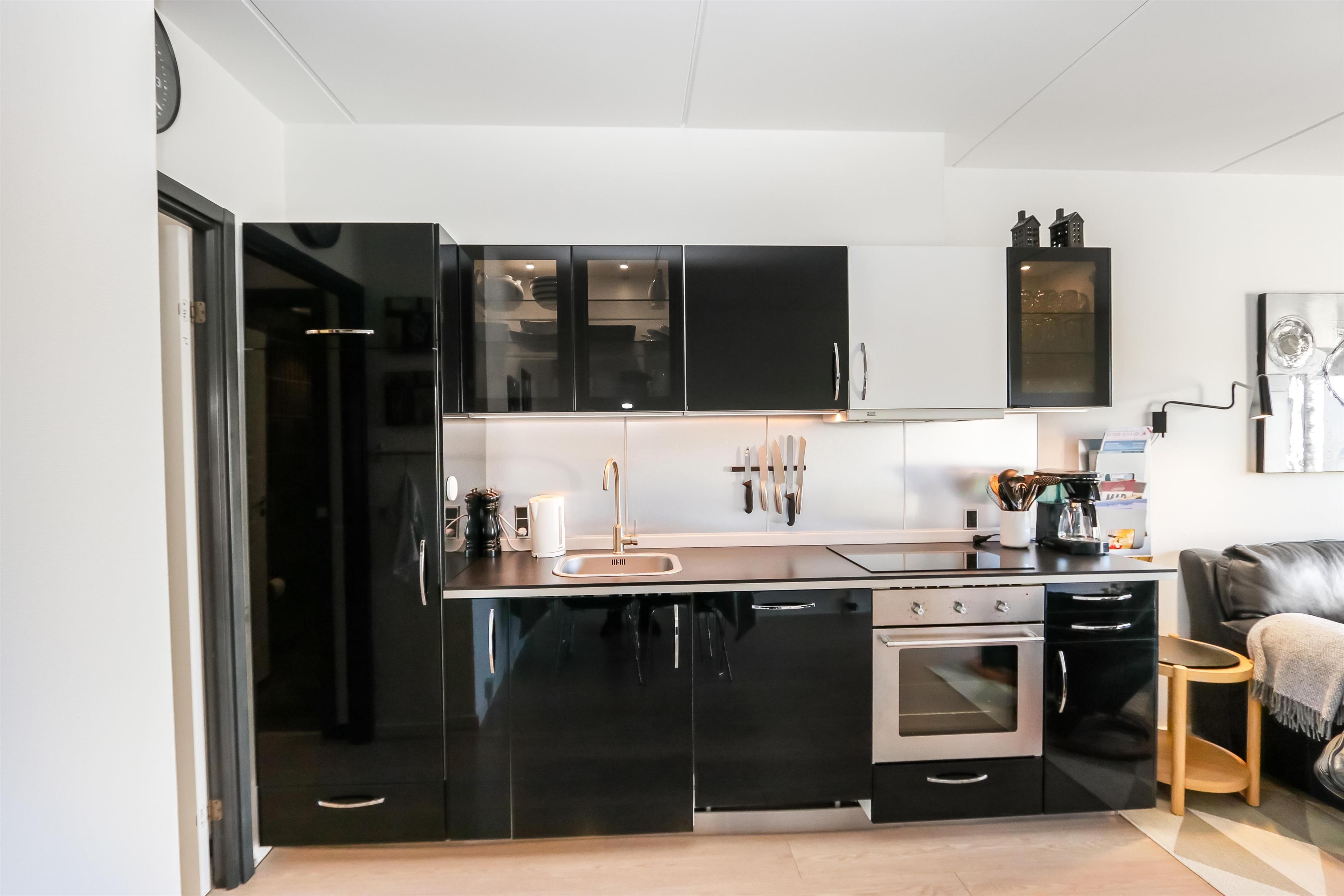 Meget pæn og moderne indrettet ferielejlighed til 2 personer, beliggende på 1. sal. Kombineret køkken og stue. Stuen er indrettet med lædermøbler, kabel-TV, og pergogulv. Køkkenet er indrettet med glaskeramisk kogeplade, indbygningsovn, køleskab med 10 l frostboks, opvaskemaskine, emhætte og pergogulv. Badeværelse med toilet, håndvask og bruser. 1 soverum: 2S og pergogulv. Fra stuen er der udgang til overdækket balkon med havemøbler. Trappen til 1. sal består af 14 trappetrin.