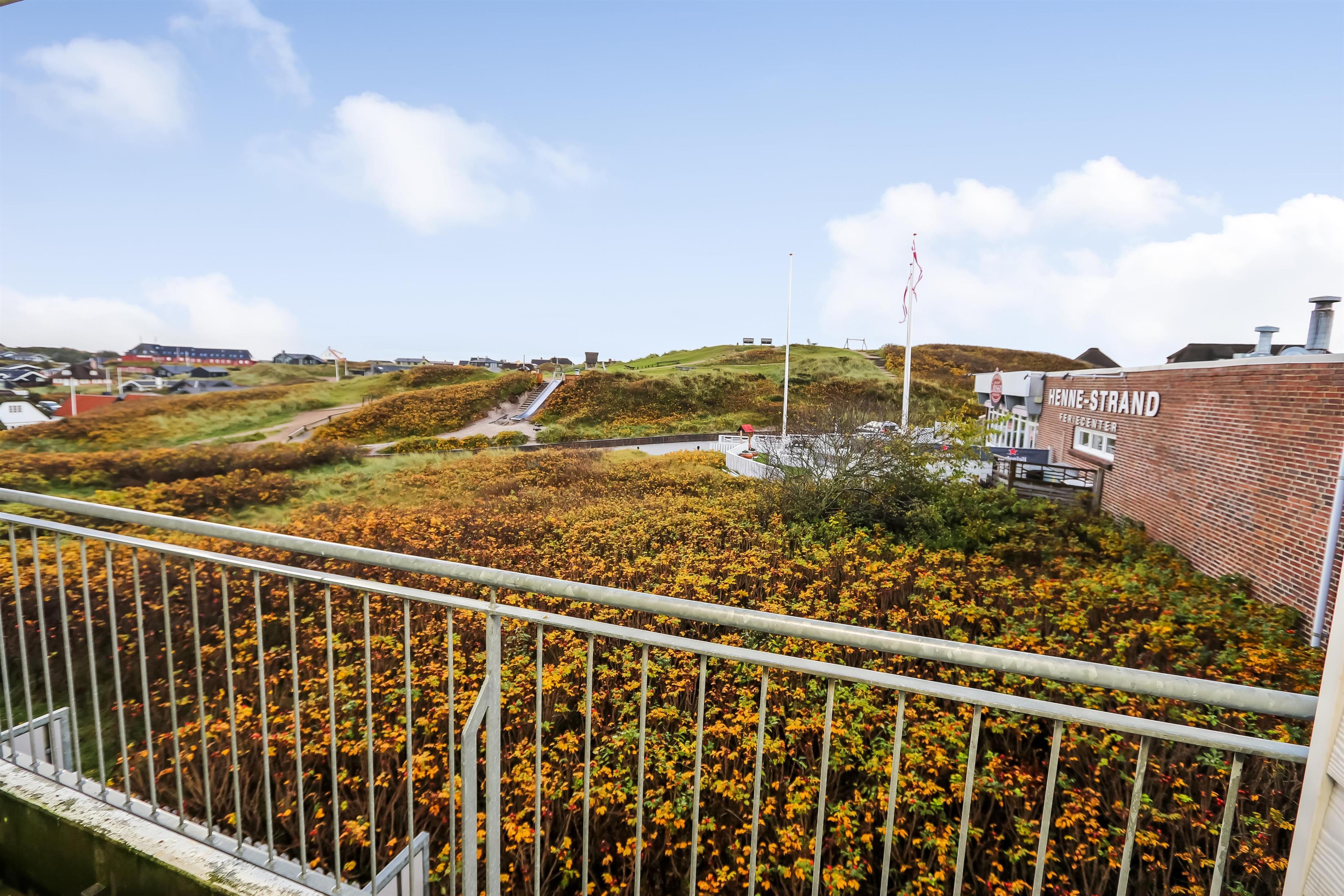 Henne Strand Feriecenter er en dejlig oase med mange muligheder og masser af spisesteder. Om du er til en ægte Strandby med masser af indkøbsmuligheder, aktiv ferie eller blot ønsker at bo tæt ved Vesterhavet så er der alle muligheder i Henne Strand. På selve feriecenteret er der mange faciliteter. Spiller du golf ligger der en 18 hullers golfbane i Henne By - kun 3 km meter fra lejligheden. Her der også findes en butik med rav, ridecenter og Henne Kirkeby Kro som er en enestående Michelin gourmetoplevelse. I Blåbjerg Plantage er der en fantastisk mountainbikerute og dejlige afmærkede stier – som kan benyttes i alt slags vejr både til fods og på cykel. Den genoprettede Filsø ligger sydøst fra Henne Strand og tilbyder en unik natur oplevelse i særklasse. Hertil kommer at Vesterhavet ligger 150-200 m fra lejlighederne. En oplevelse som hver dag året rundt byder på nye maleriske indtryk.